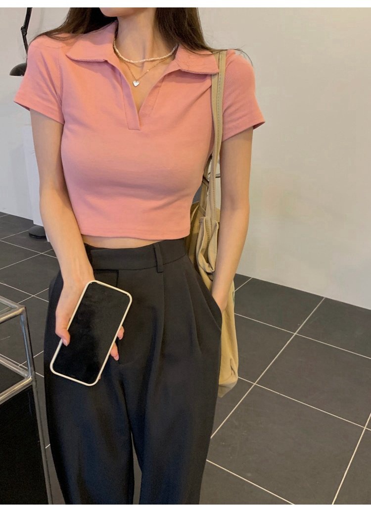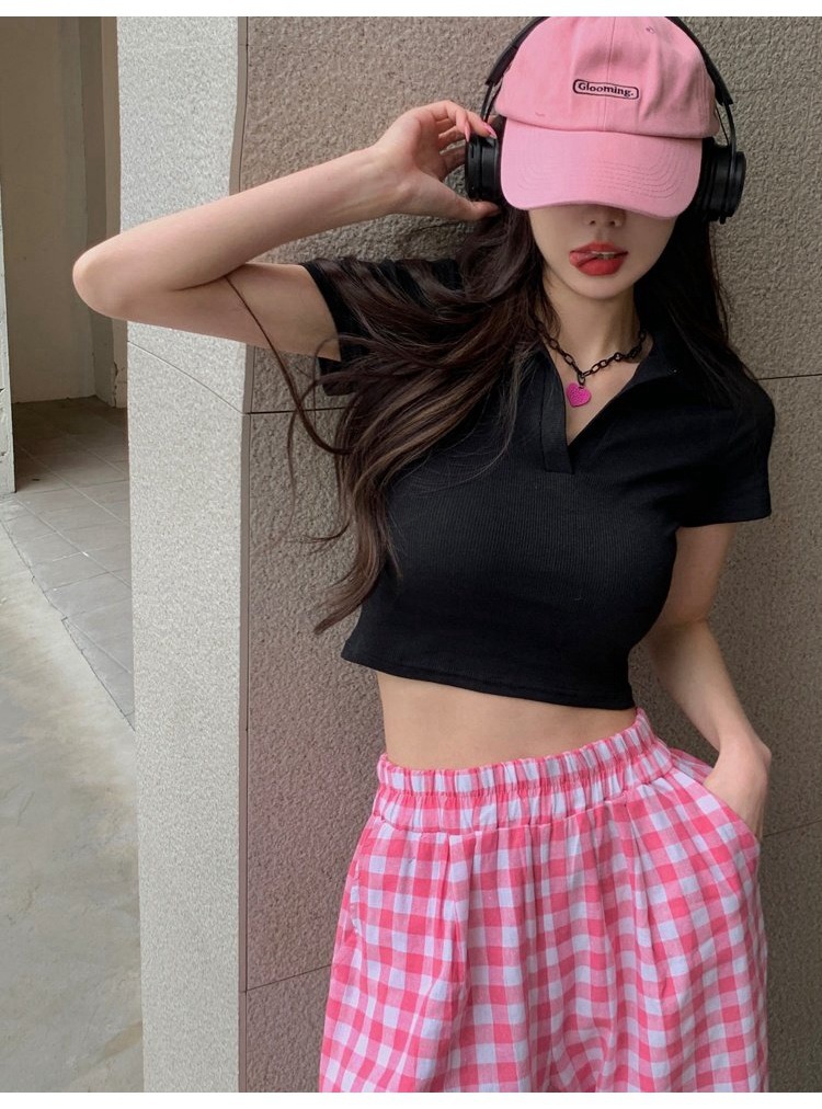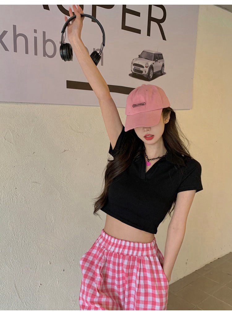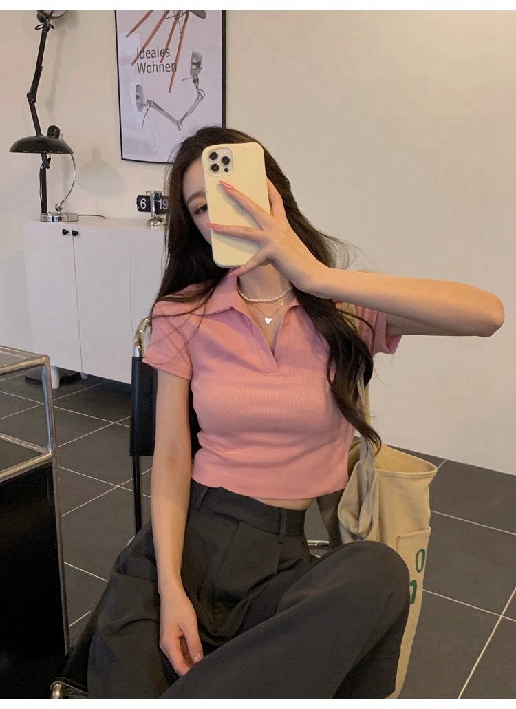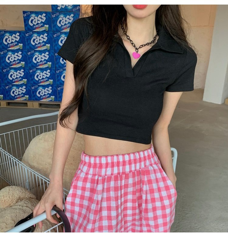 纯欲甜辣妹短款设计感学生罗纹上衣2022夏季修身Polo短袖T恤女潮