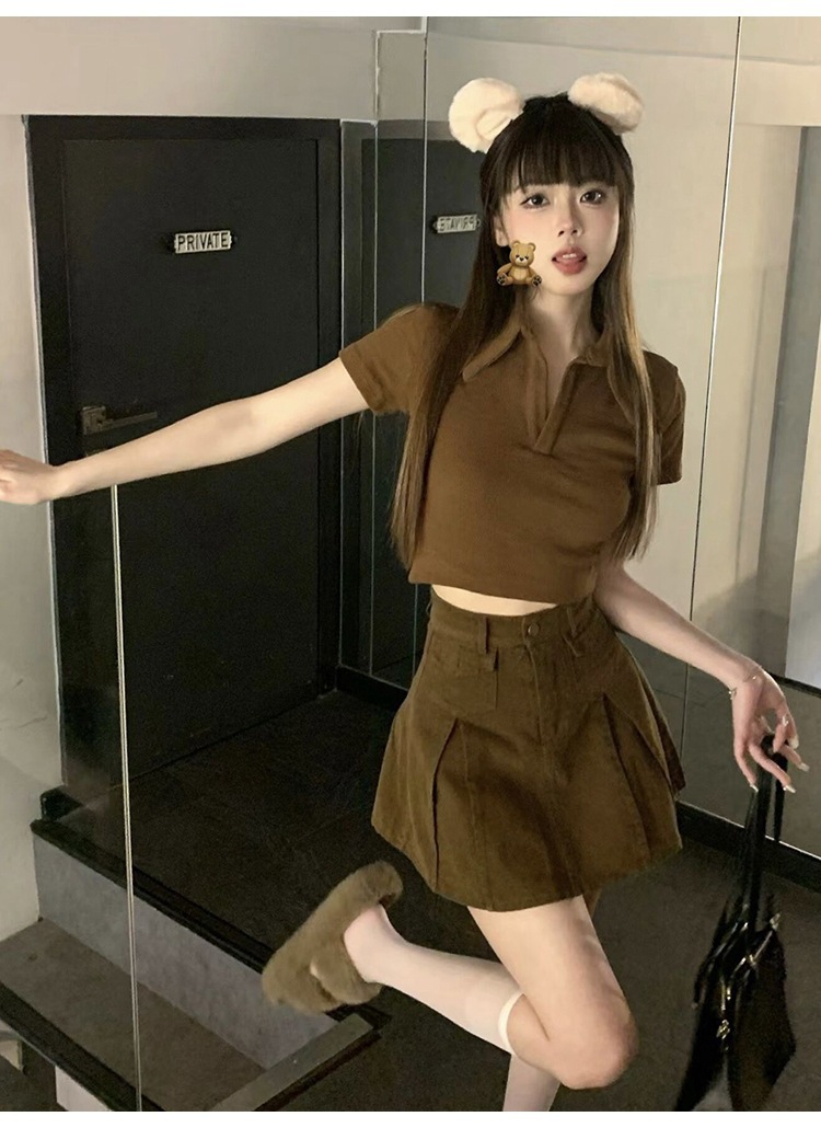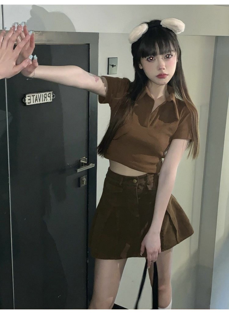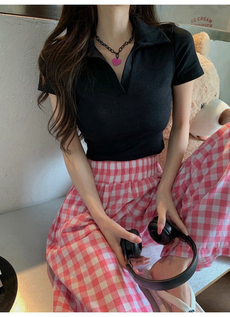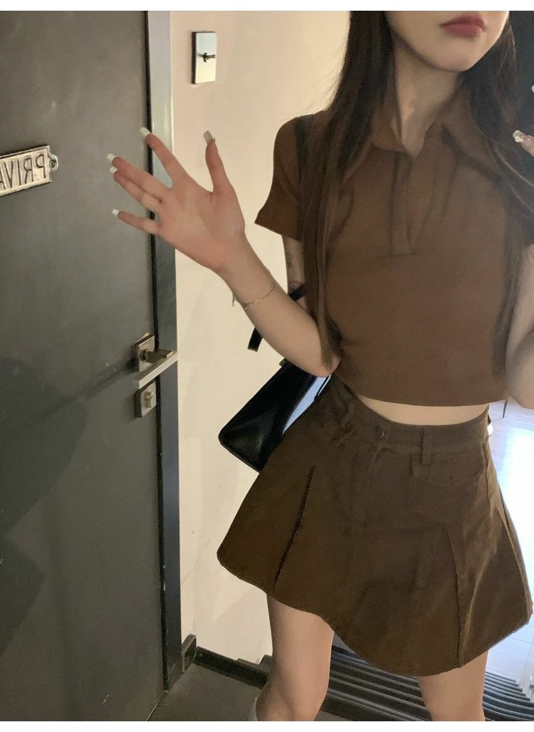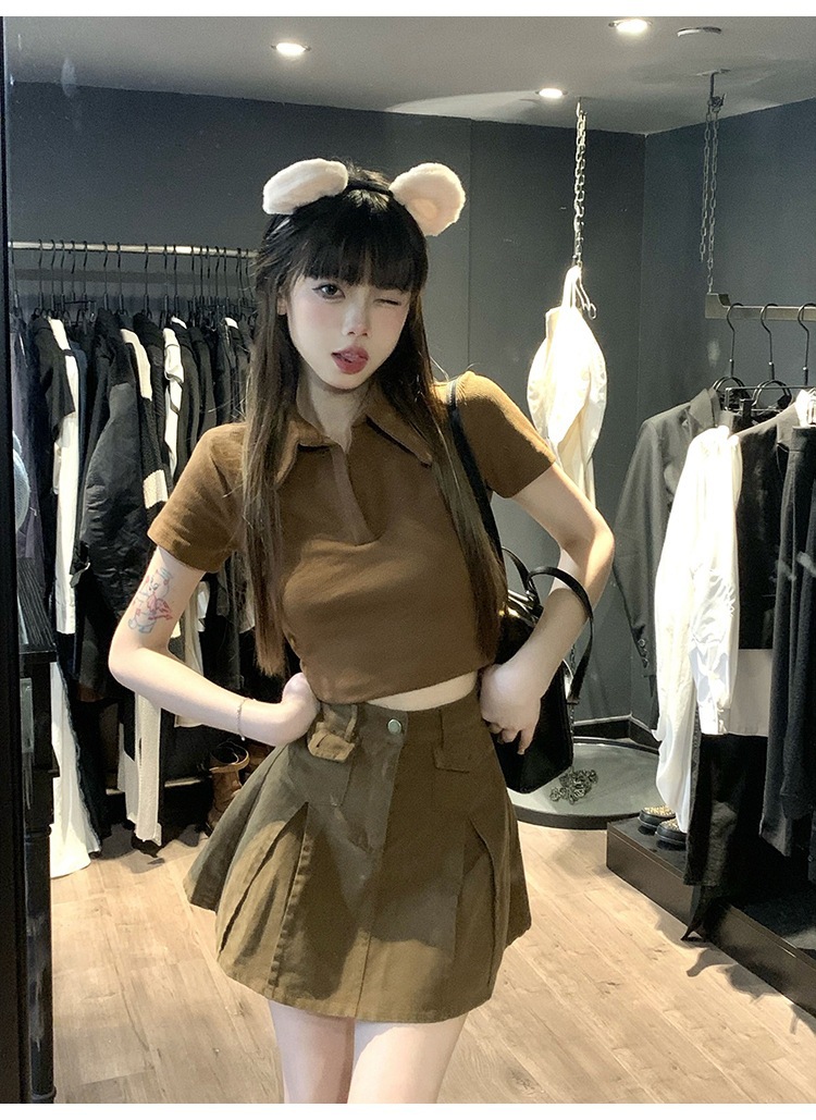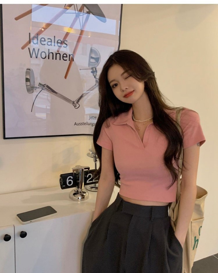 纯欲甜辣妹短款设计感学生罗纹上衣2022夏季修身Polo短袖T恤女潮