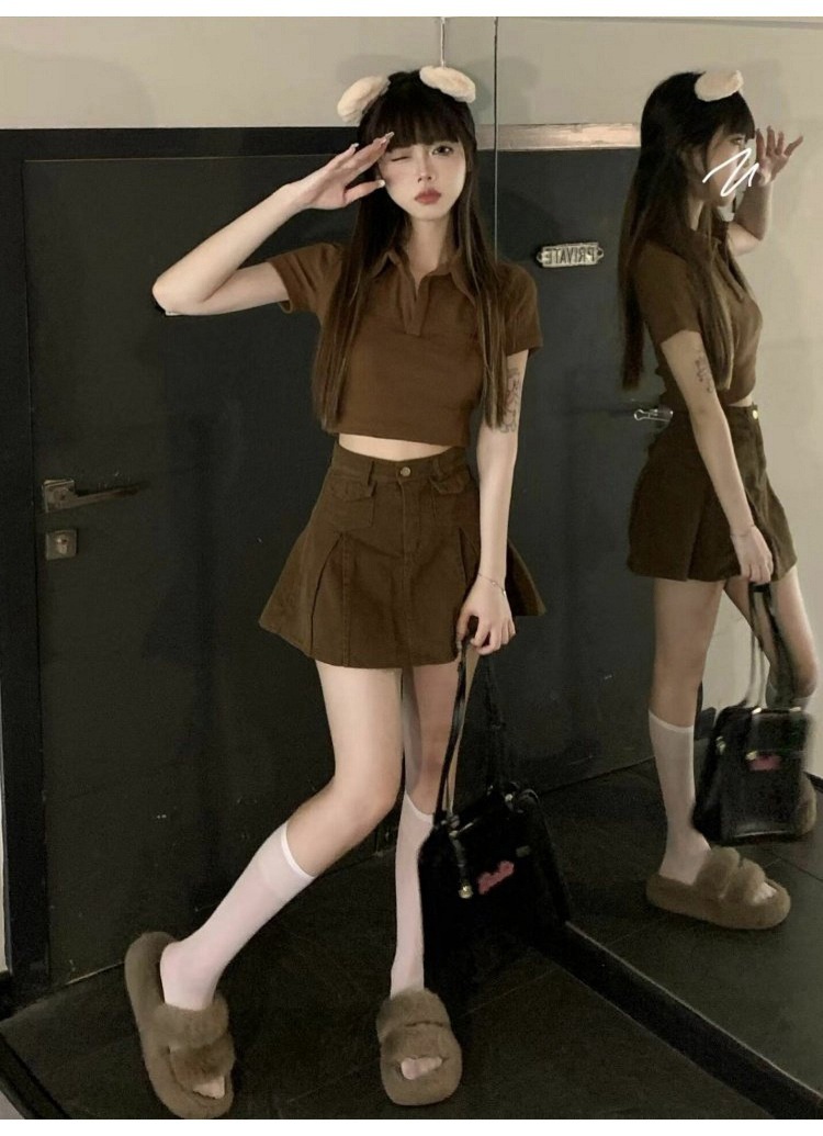 纯欲甜辣妹短款设计感学生罗纹上衣2025夏季修身Polo短袖T恤女潮