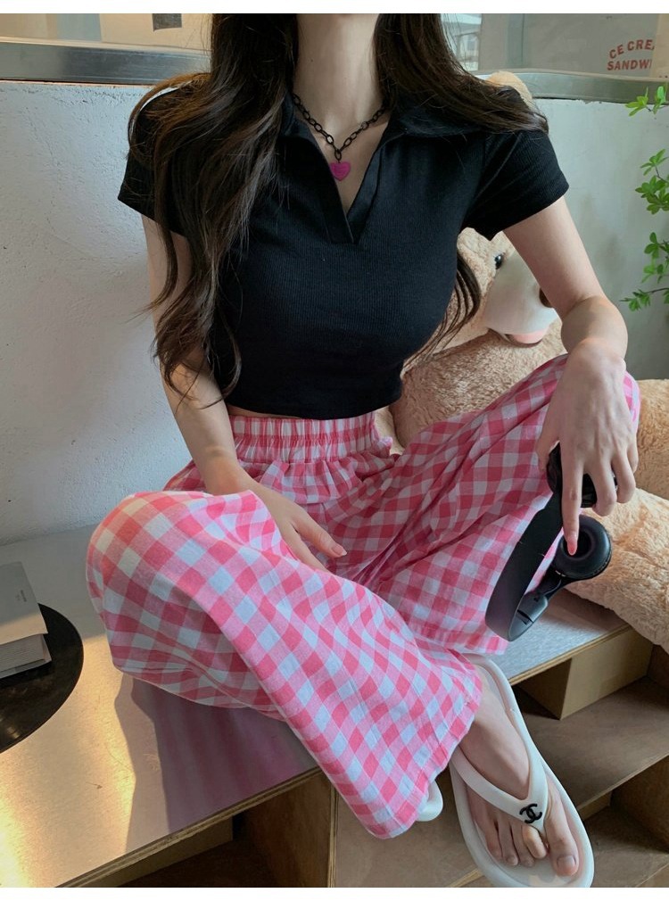 韩版网红辣妹穿搭上衣马甲纯欲气质小个子拼接棋盘针织背心上衣女