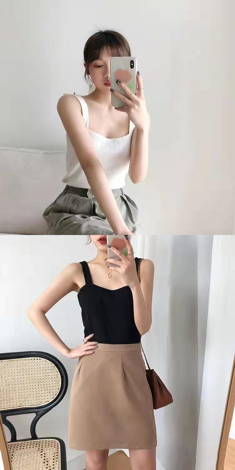 纯色简约一字领吊带背心2022夏季新款百搭修身显瘦气质优雅女装潮