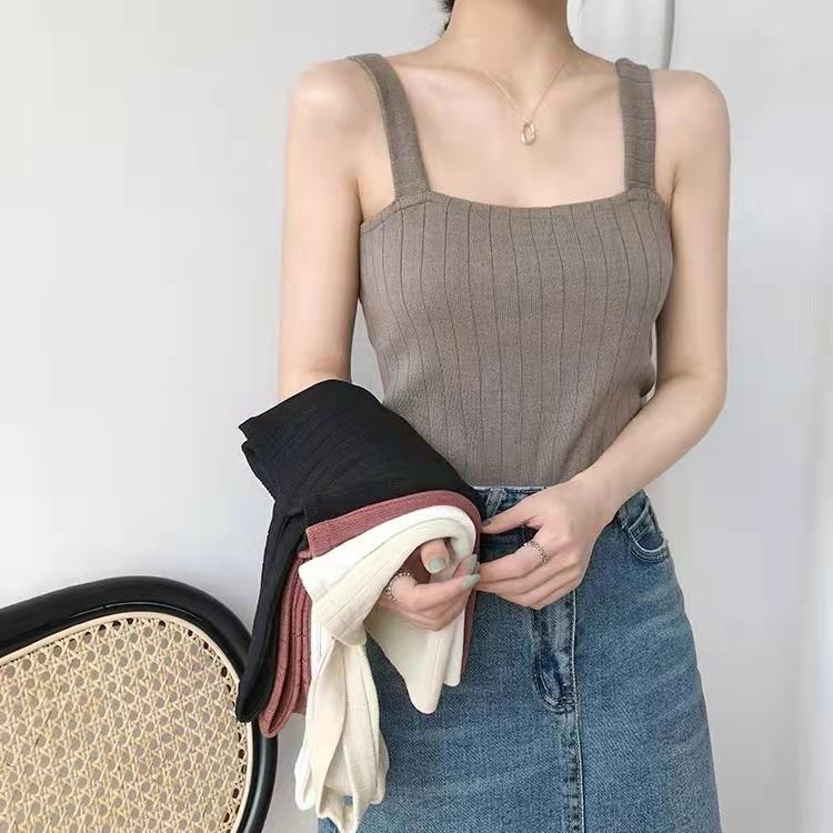 冰丝小吊带无袖背心女夏外穿内搭宽松韩版短款v领针织打底衫上衣