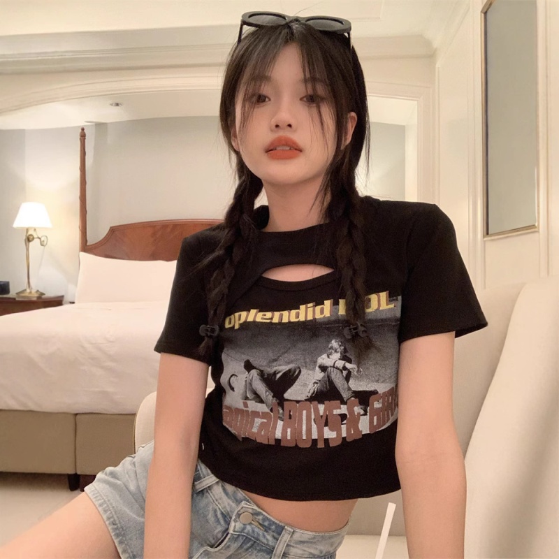 BM风短款辣妹T恤女2025夏季美式修身短袖甜辣修身设计感学生上衣