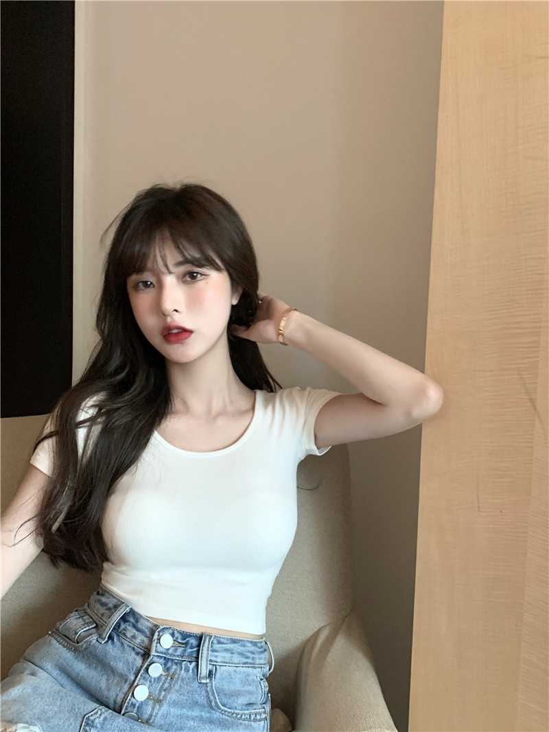T恤女夏季ins潮修身短款露脐纯欲风甜辣修身短袖学生上衣2025新款