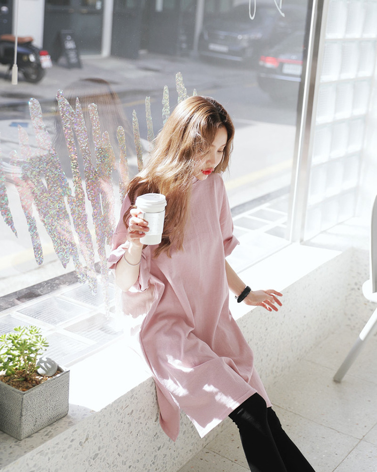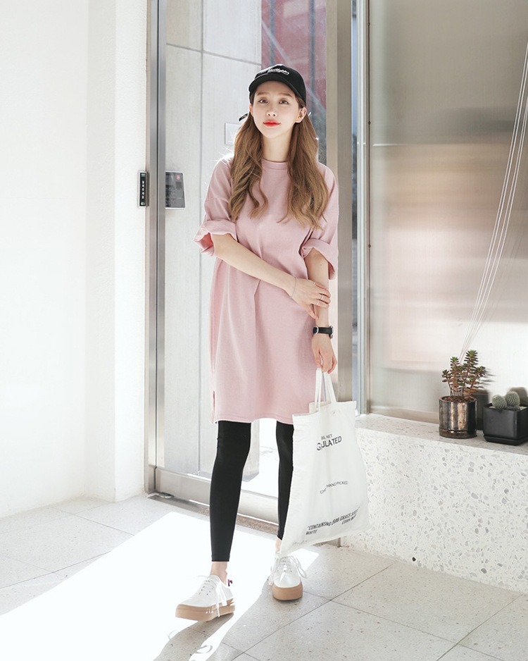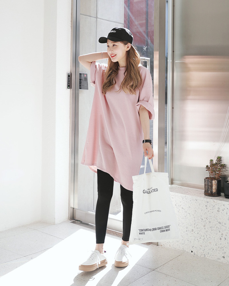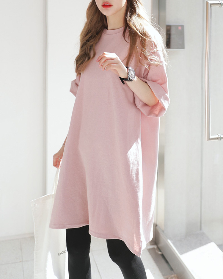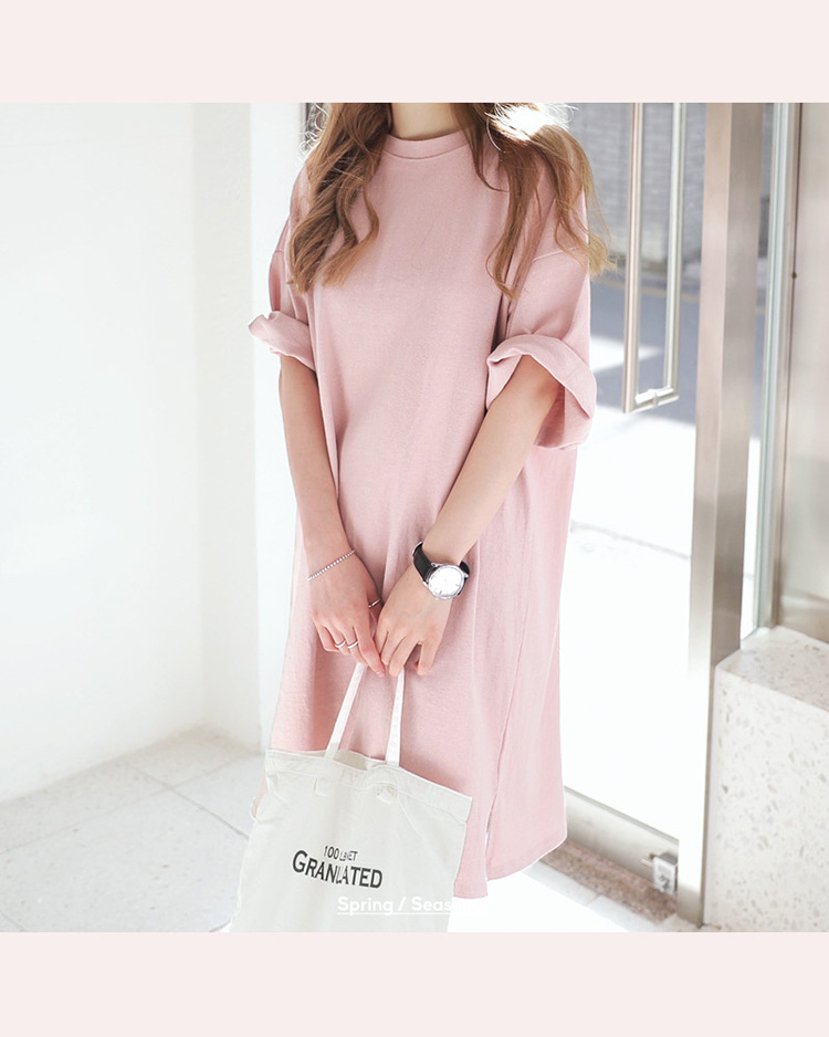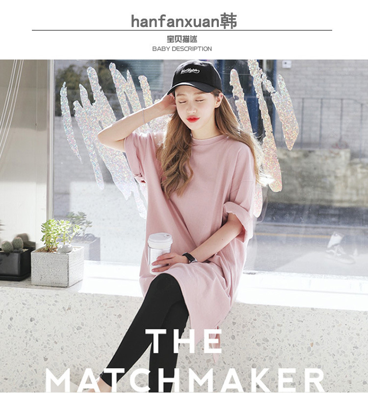 2025韩国春夏新款纯色宽松体恤女大码中长款短袖T恤裙上衣女学生