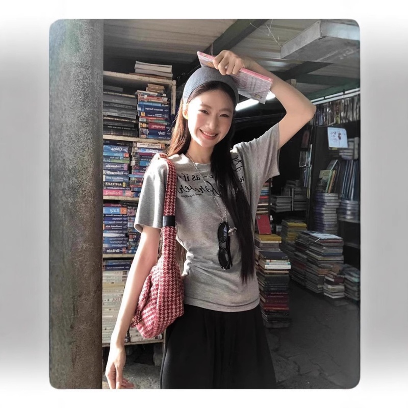 字母印花短袖t恤2025夏季新款修身掐腰显瘦韩系设计感正肩上衣女