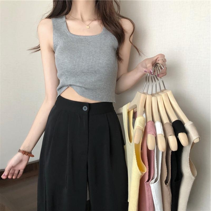 针织吊带背心女夏外穿小众修身显瘦冰丝针织衫套头无袖背心上衣女