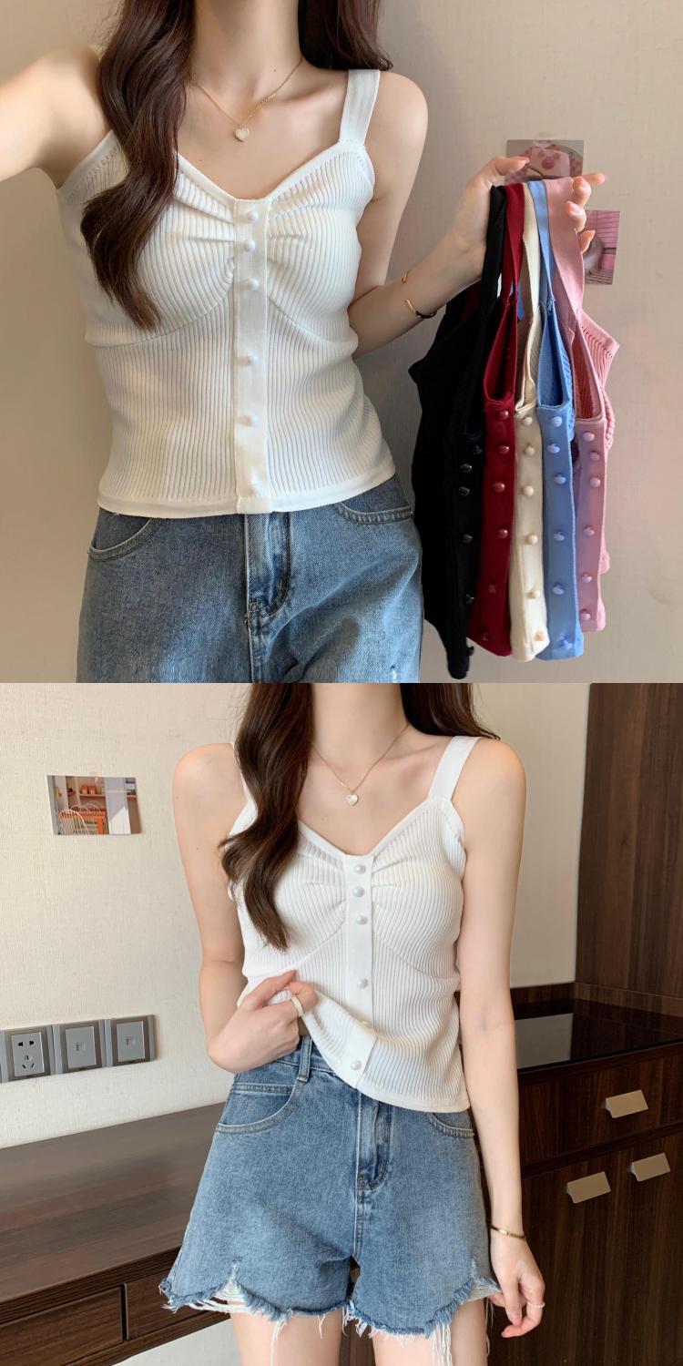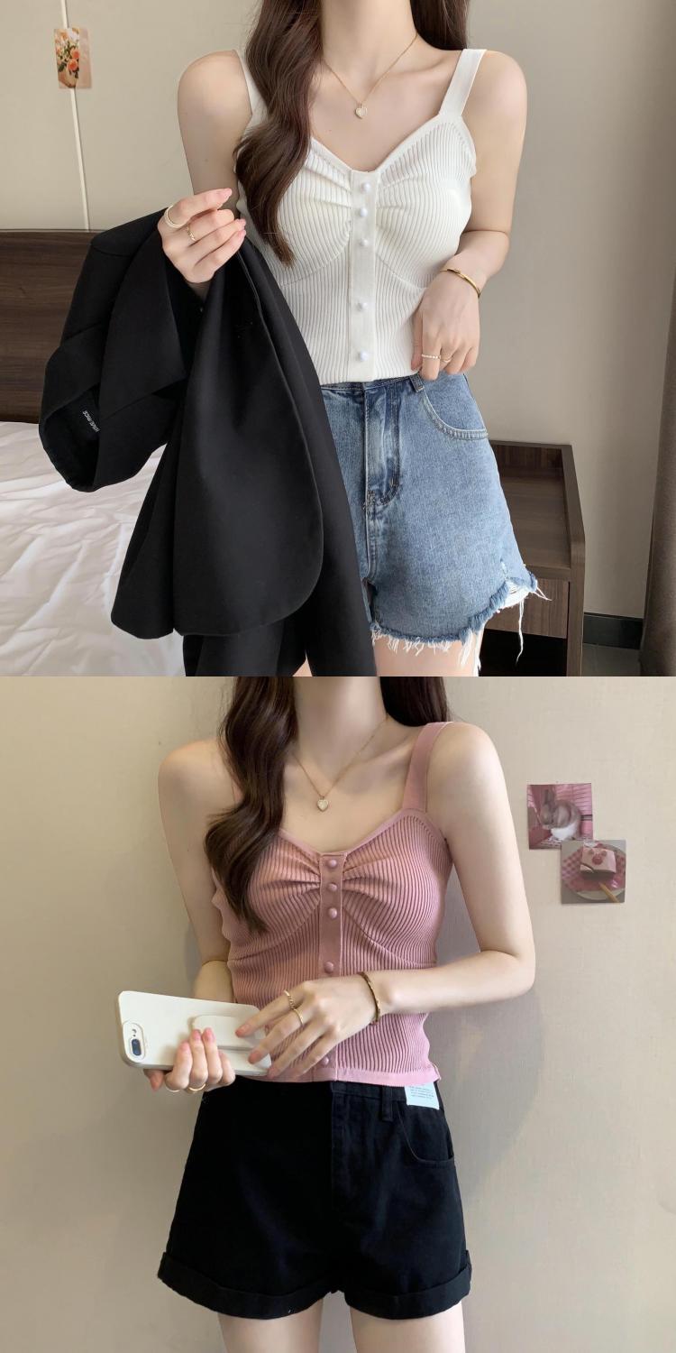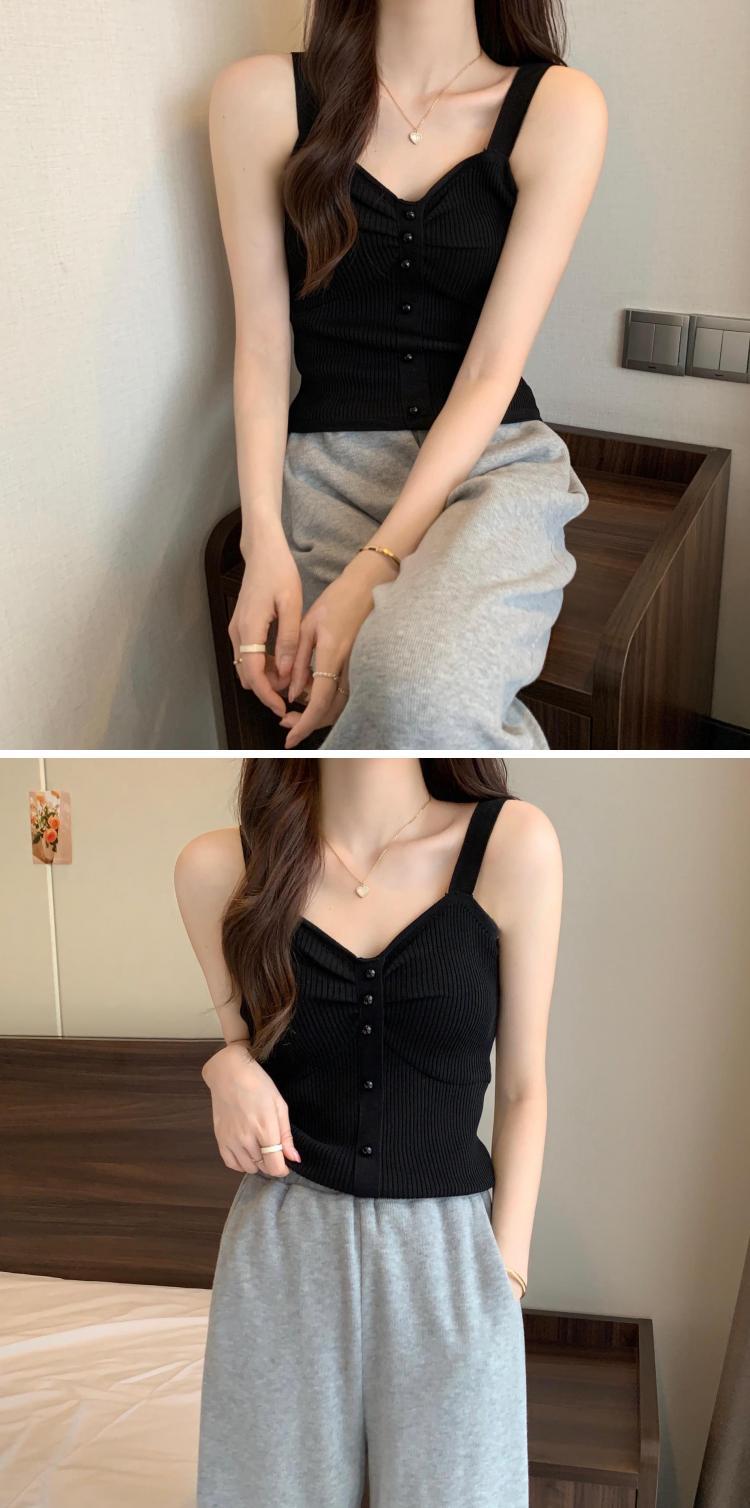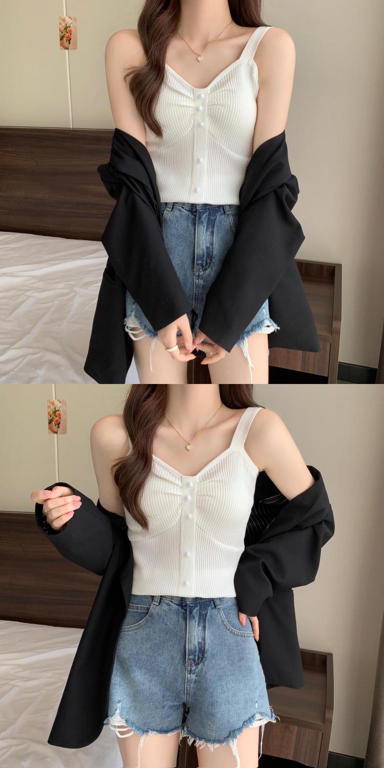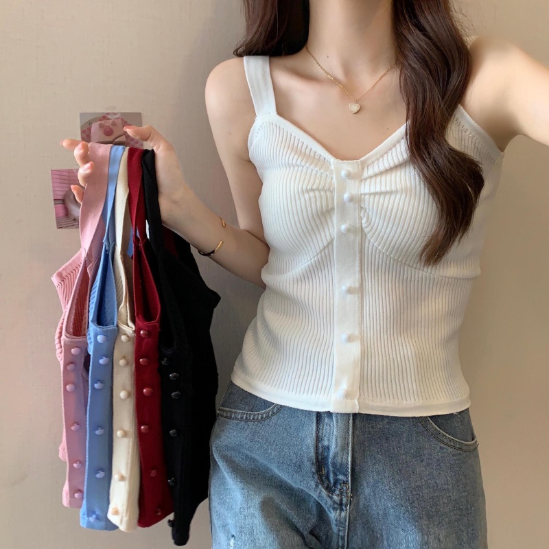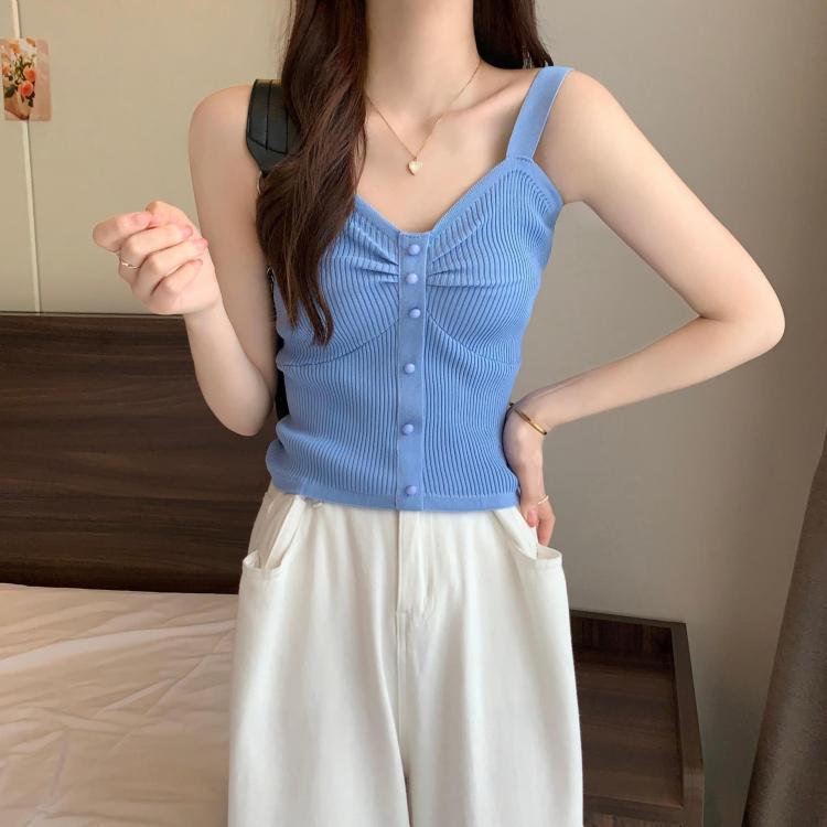 钉珠螺纹冰丝针织背心小吊带女夏季外穿短款打底衫法式百搭小吊带