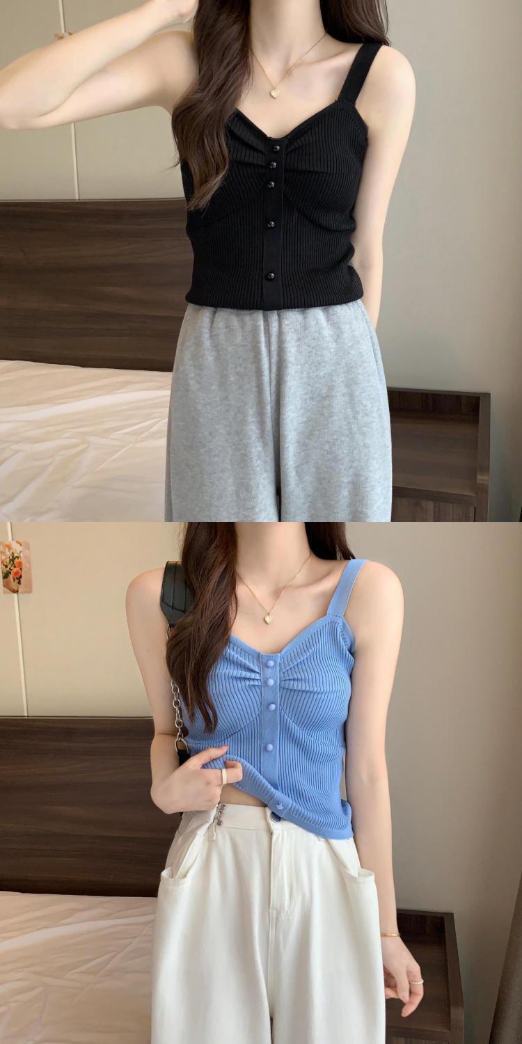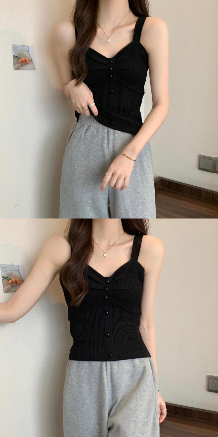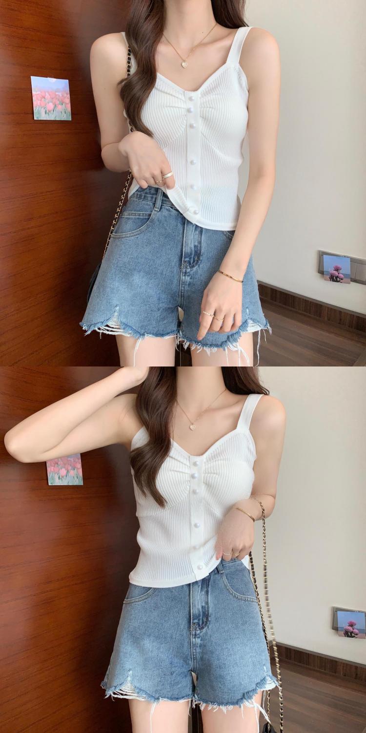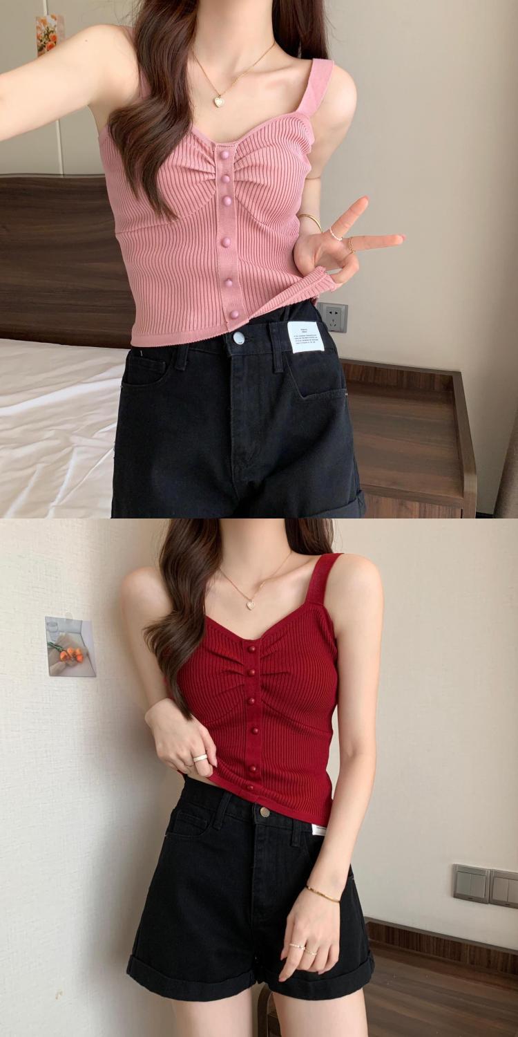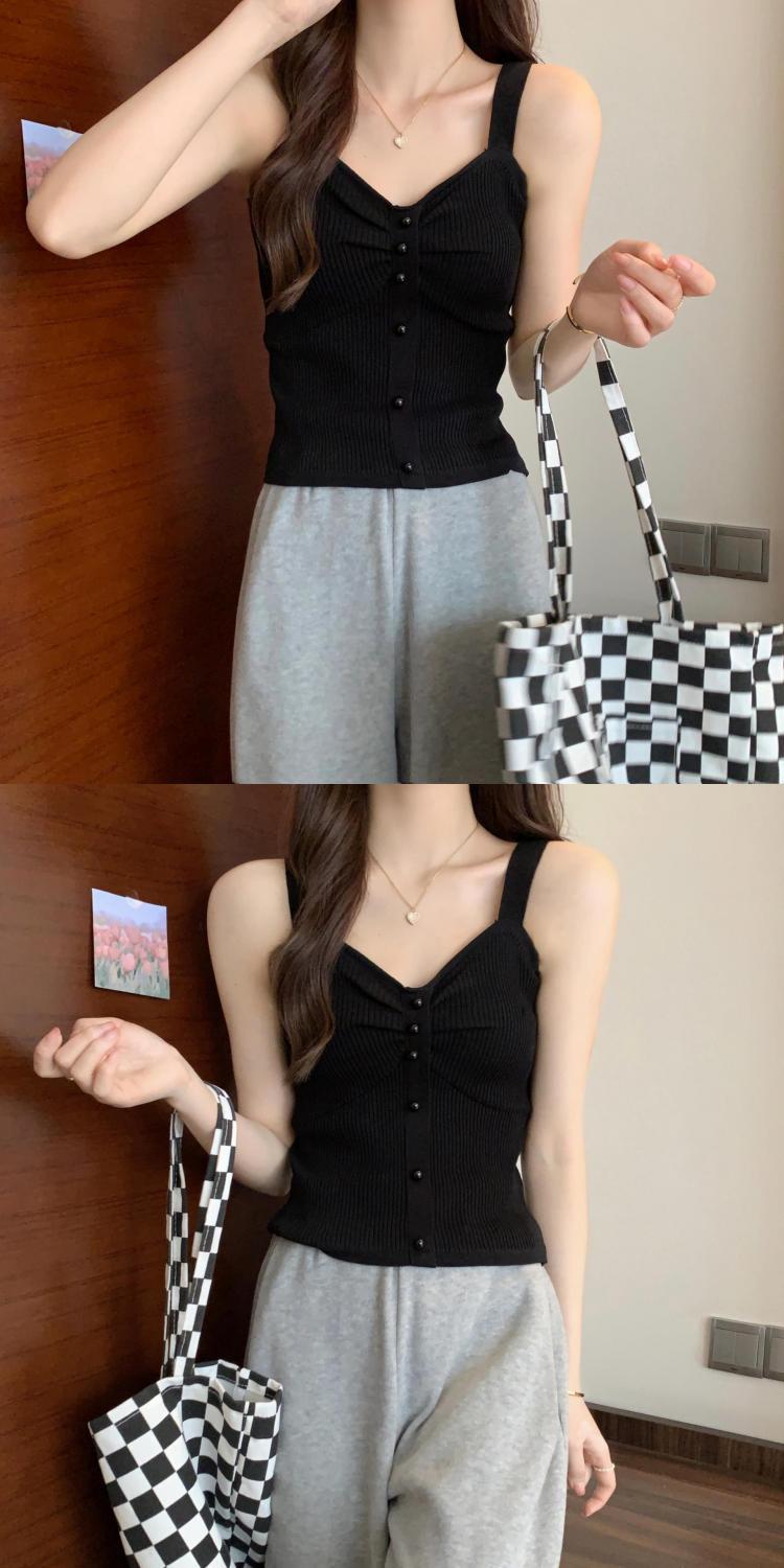钉珠螺纹冰丝针织背心小吊带女夏季外穿短款打底衫法式百搭小吊带
