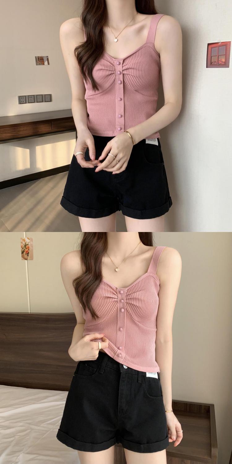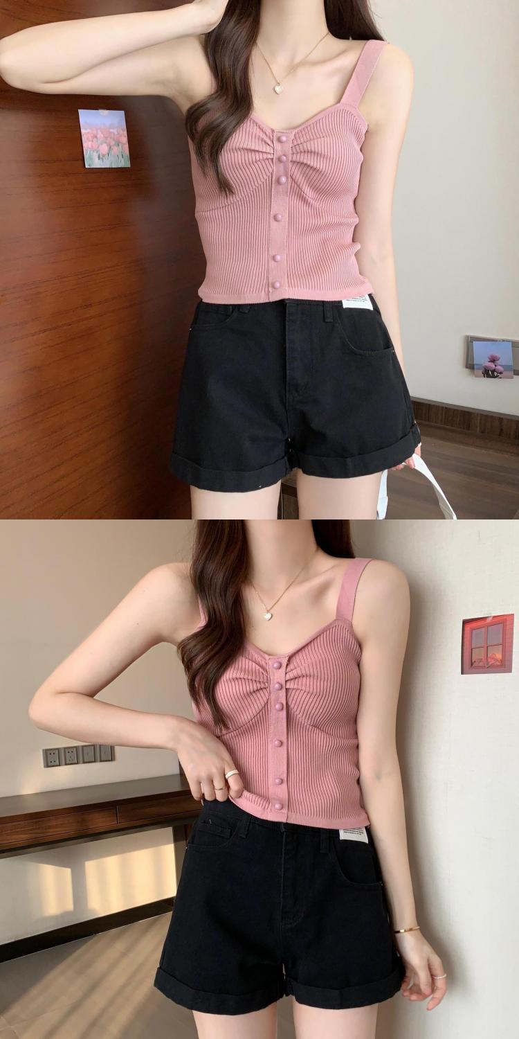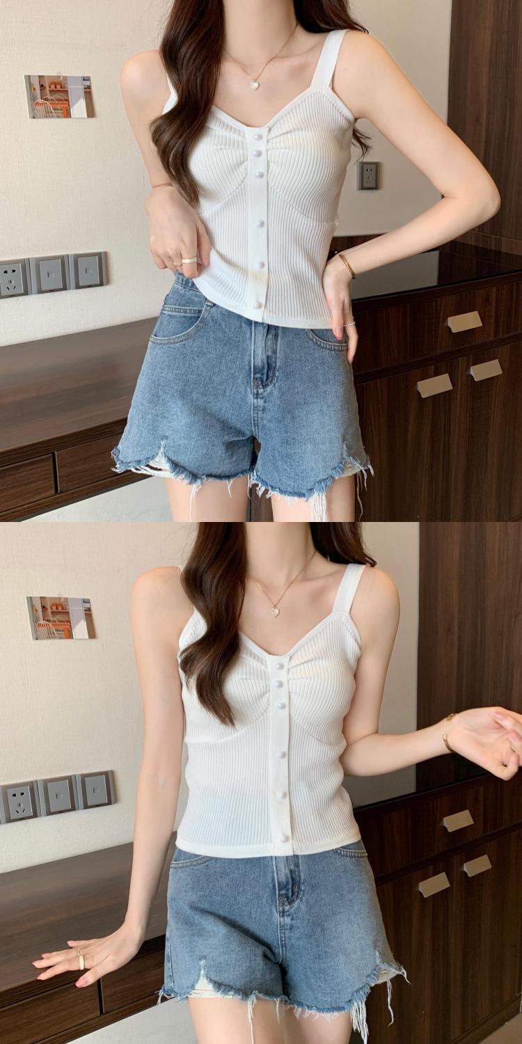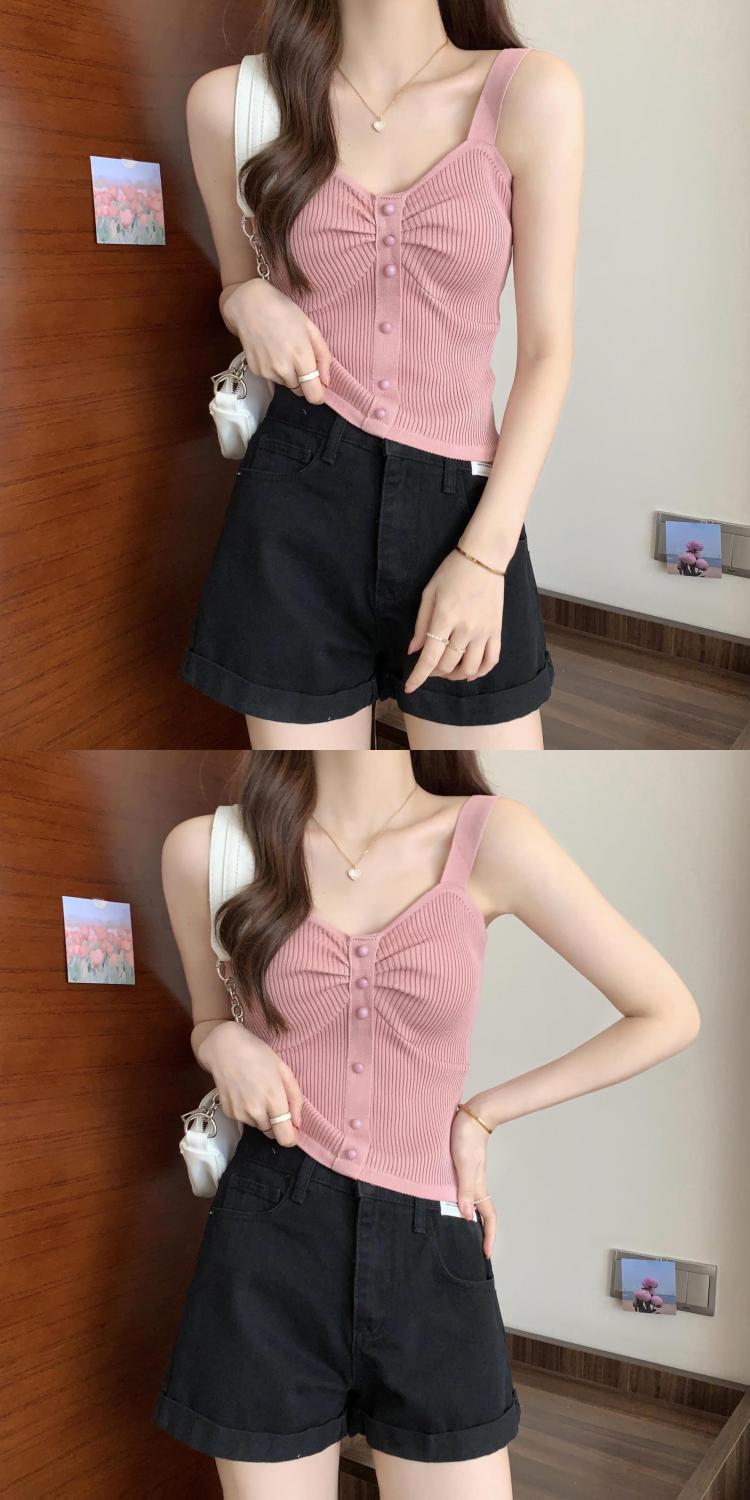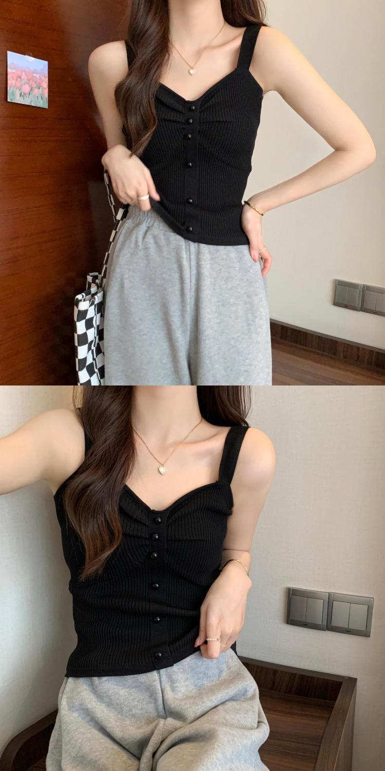 钉珠螺纹冰丝针织背心小吊带女夏季外穿短款打底衫法式百搭小吊带