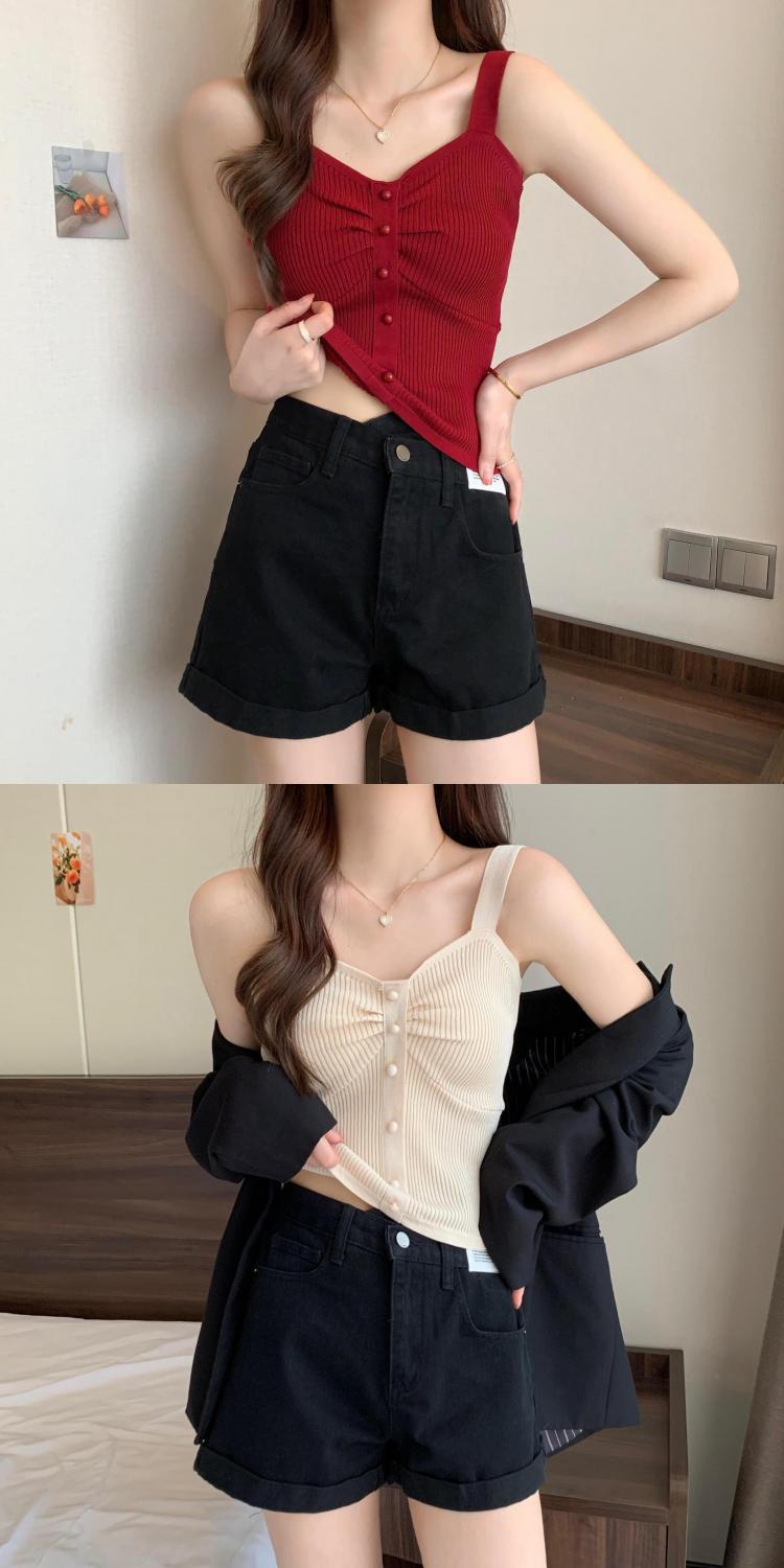 夏季短款纯色法式针织薄款挂脖吊带性感辣妹外穿露背加工定制上衣