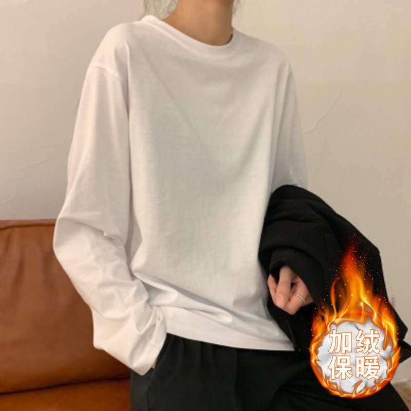 白色加绒保暖打底衫女秋冬2025新款韩版女装内搭学生长袖t恤女潮