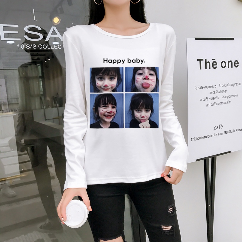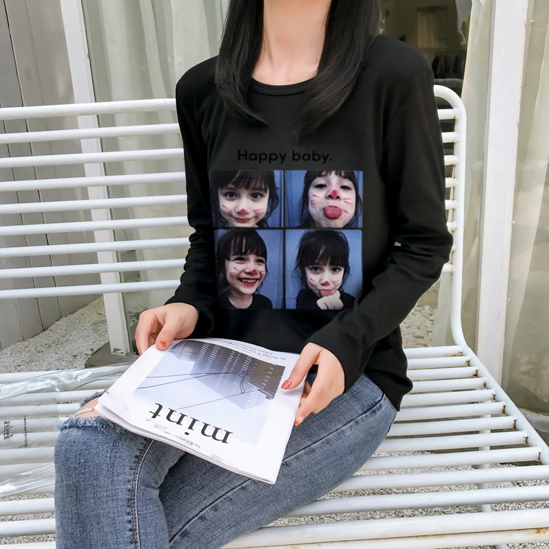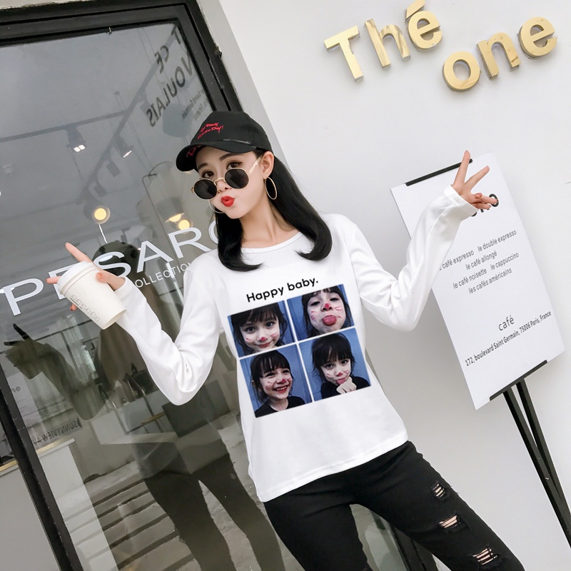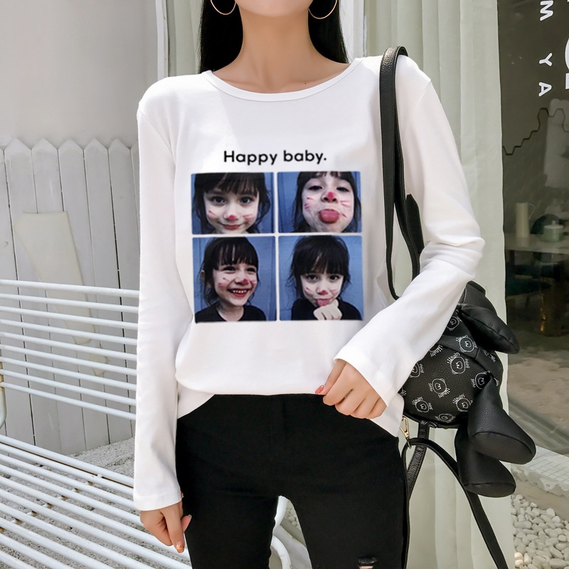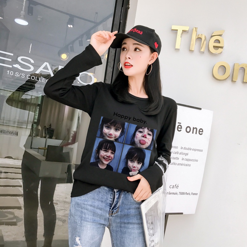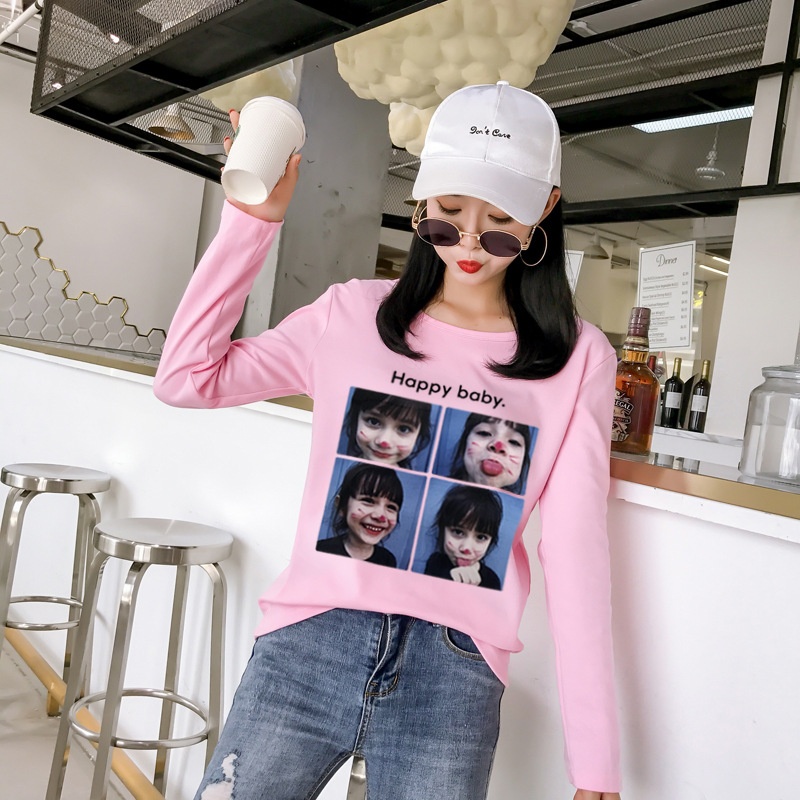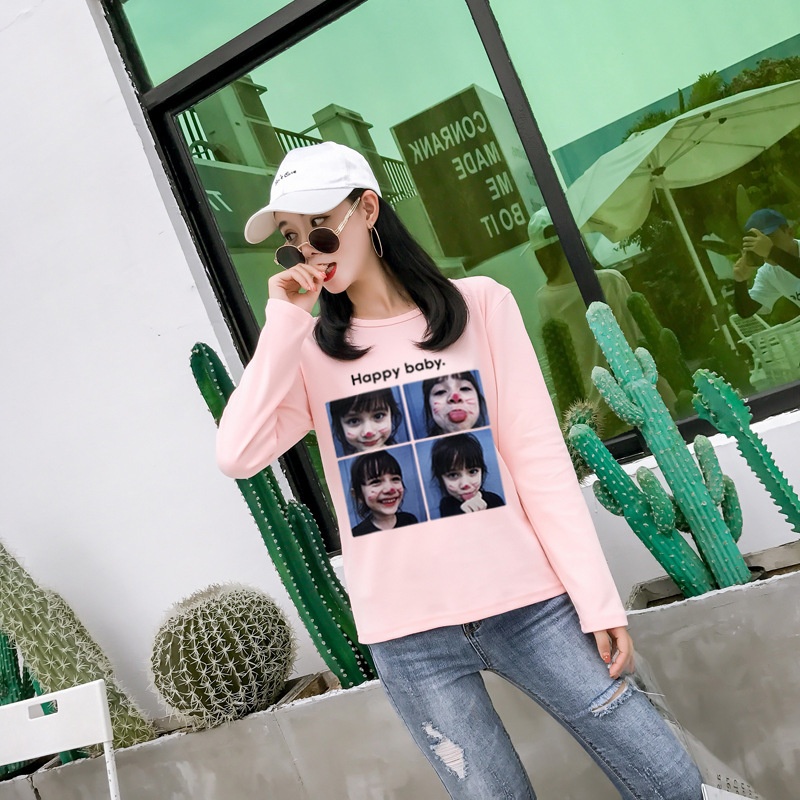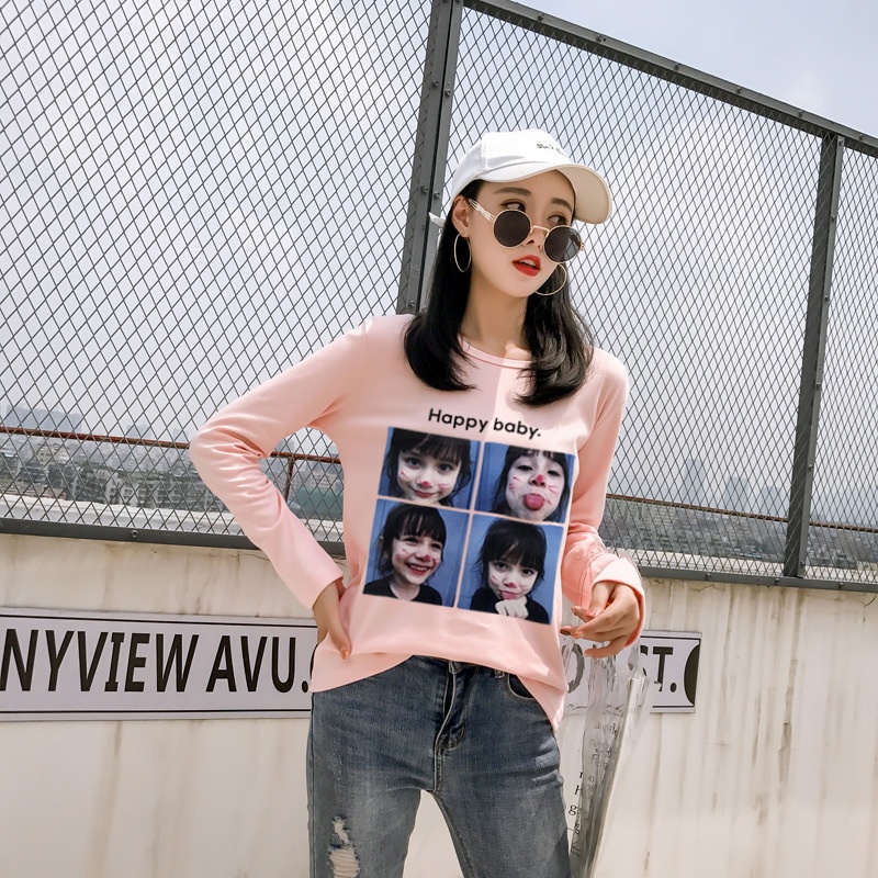 2025秋装新款女装韩版韩版可爱女孩四连拍长袖T恤女上衣服打底衫