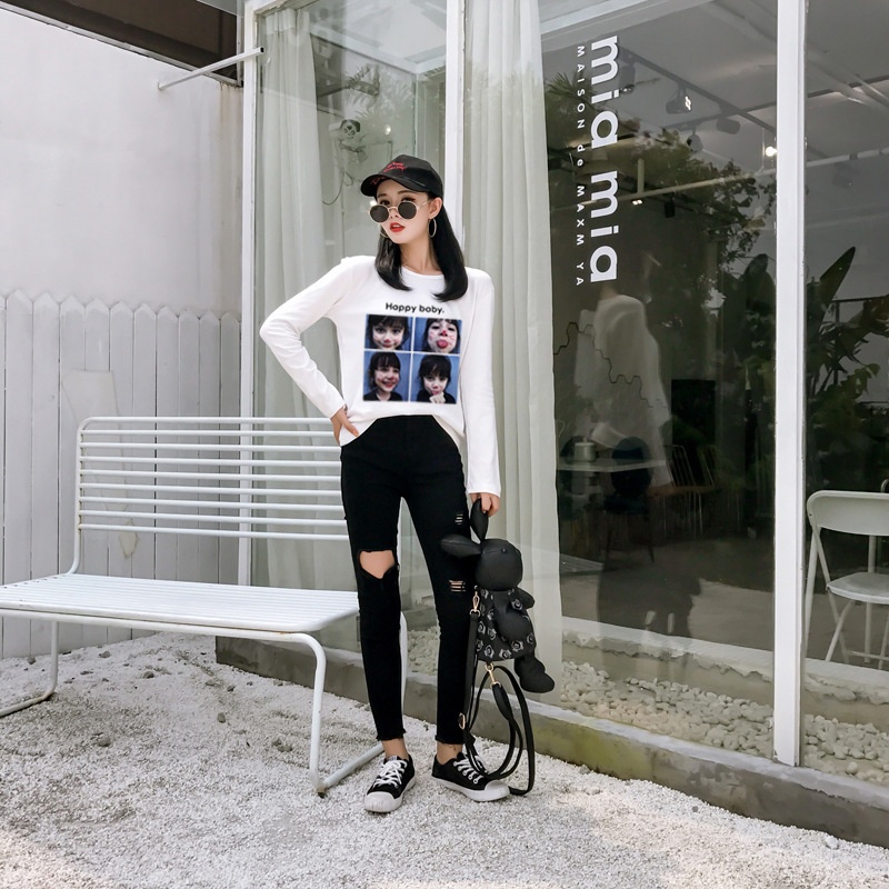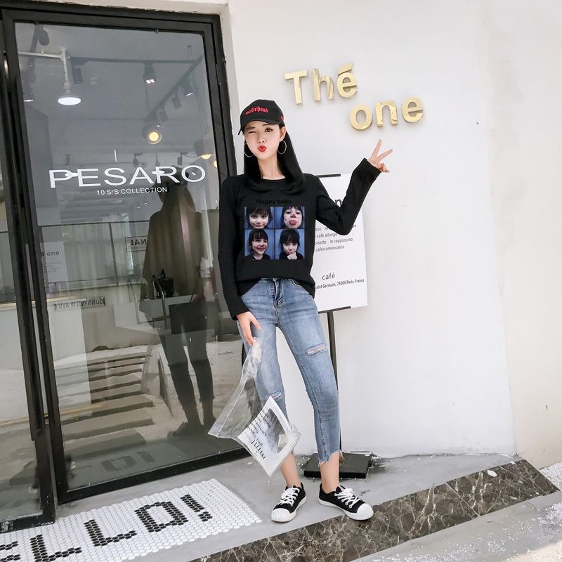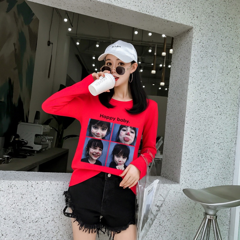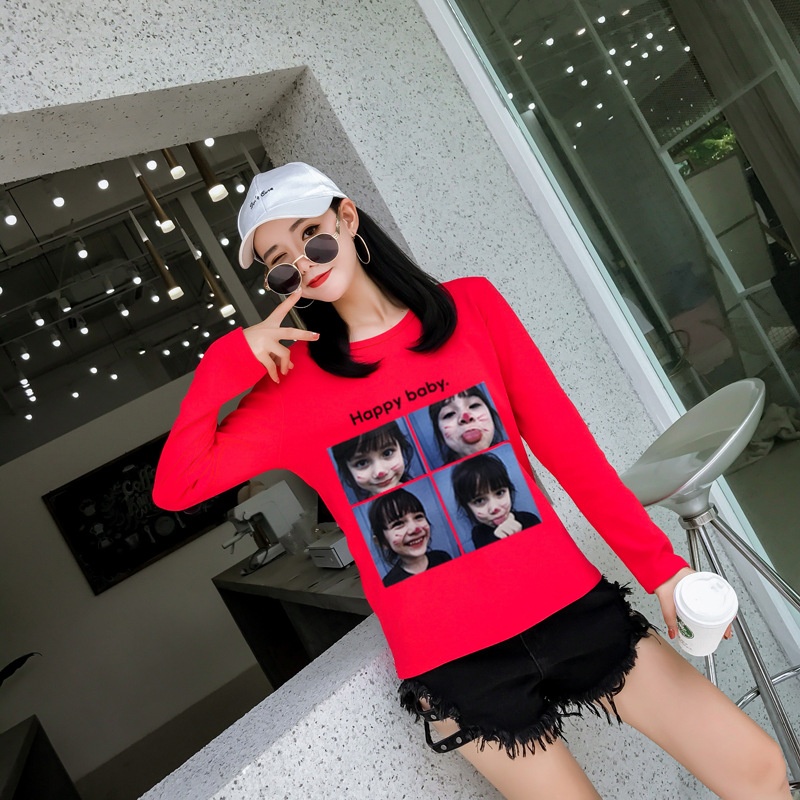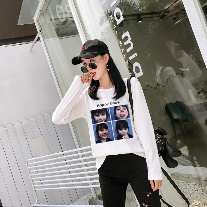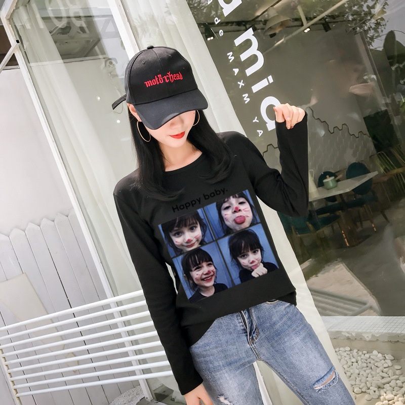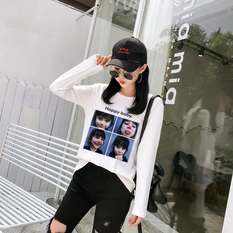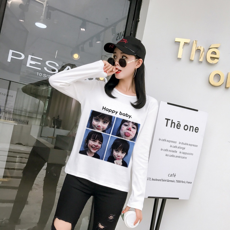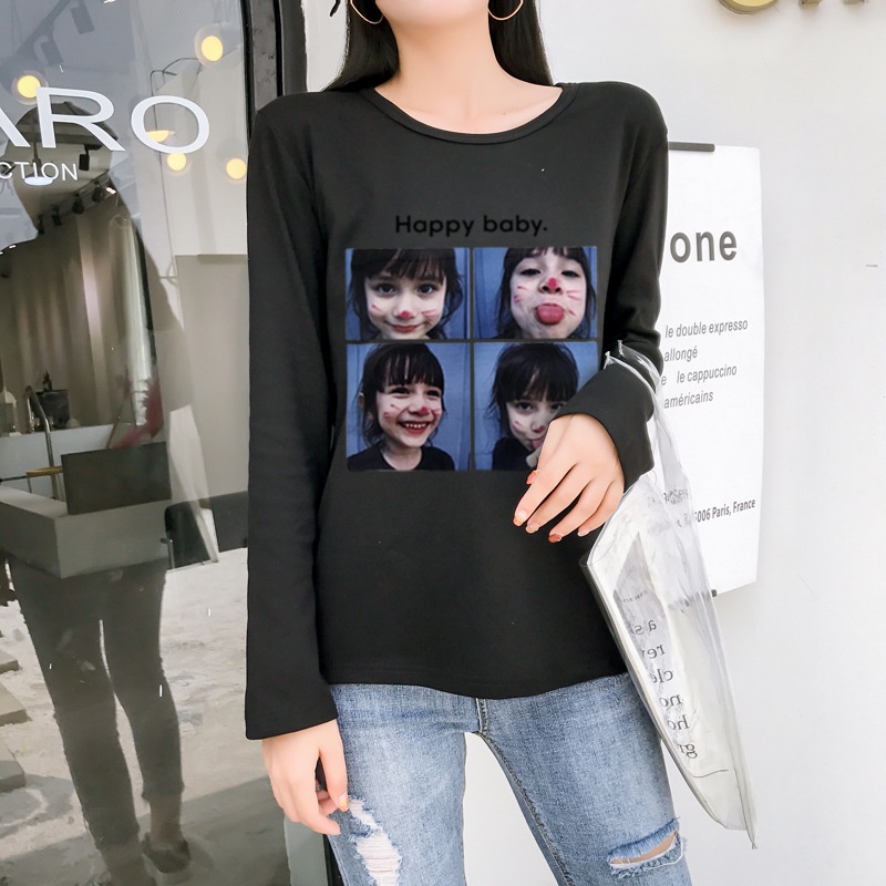 2025秋装新款女装韩版韩版可爱女孩四连拍长袖T恤女上衣服打底衫