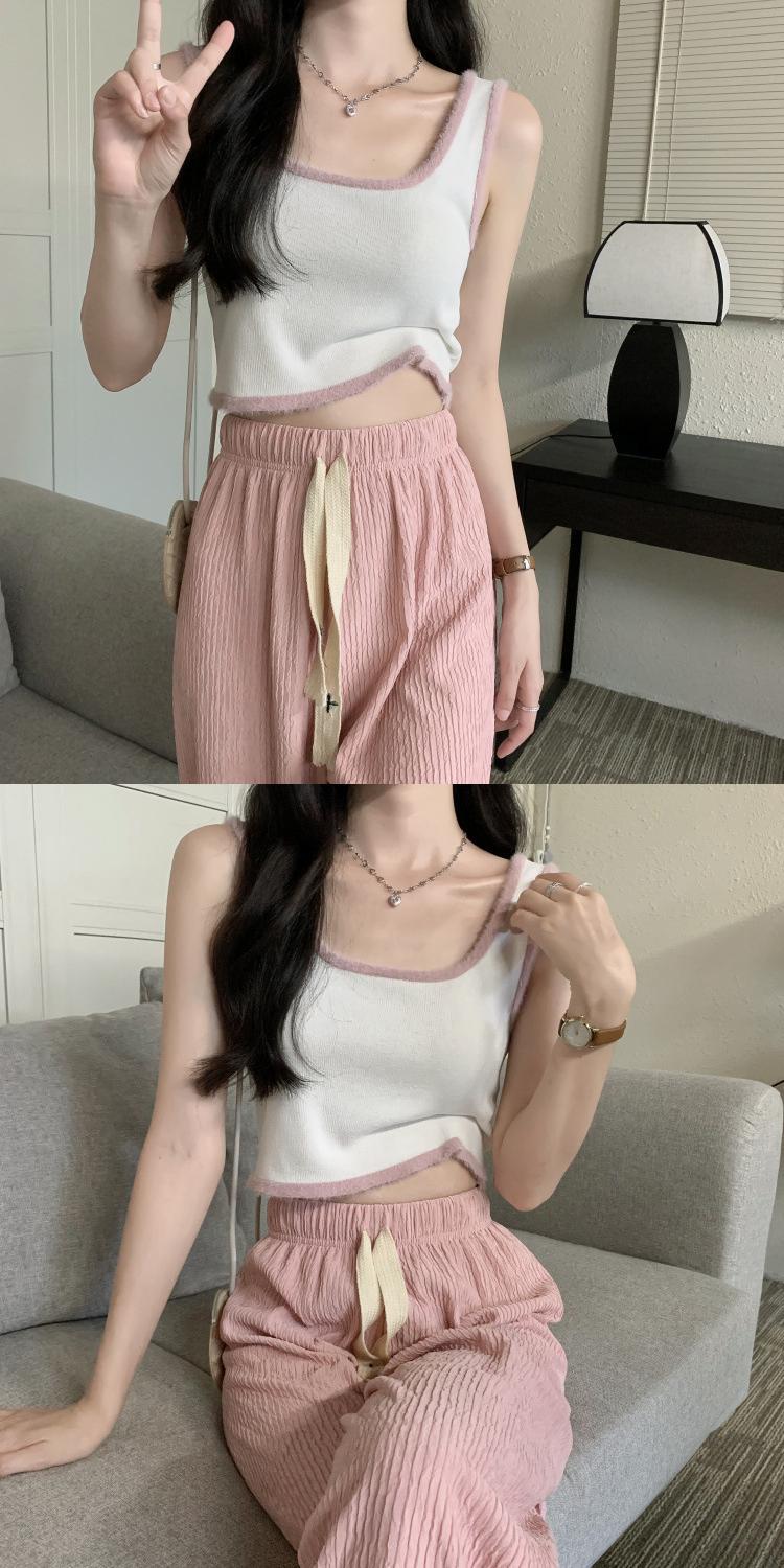 韩版网红辣妹穿搭上衣马甲纯欲气质小个子拼接棋盘针织背心上衣女
