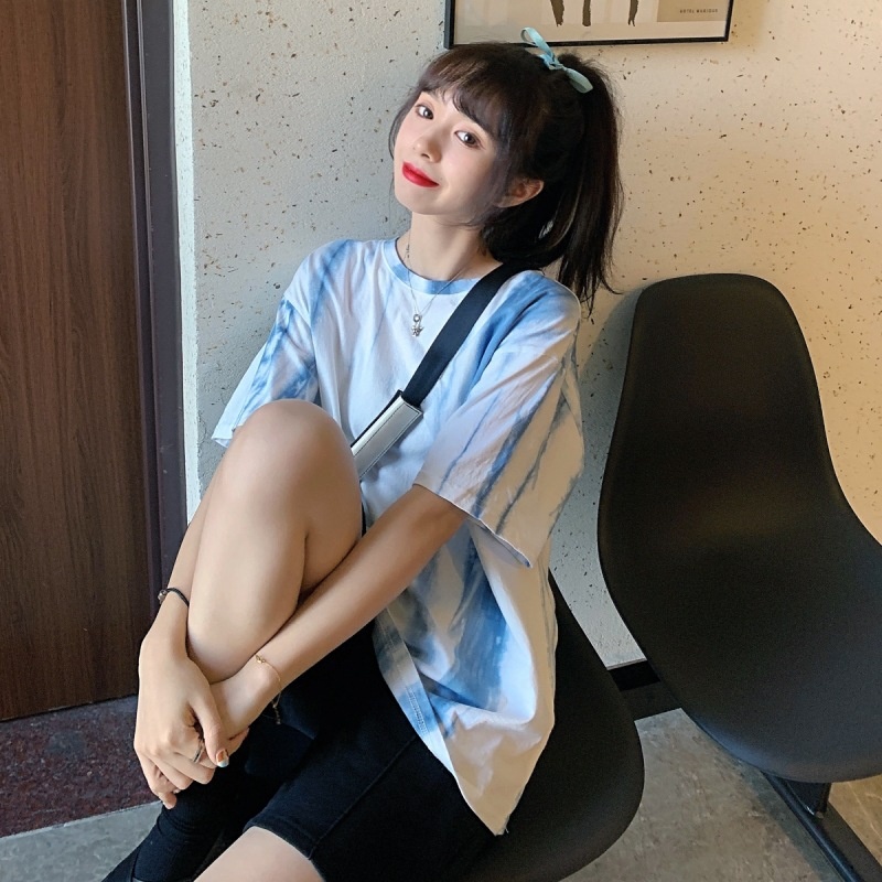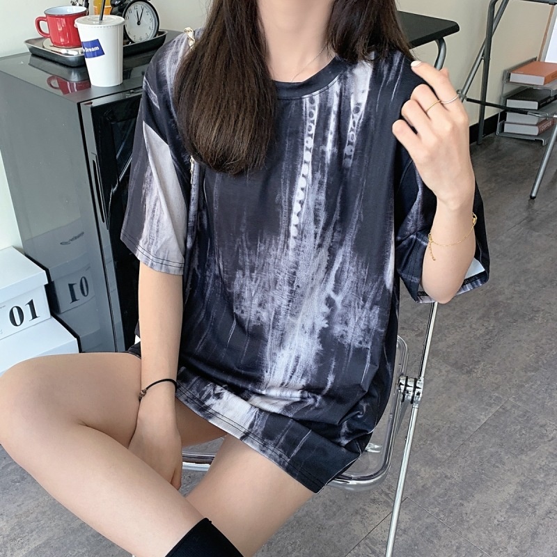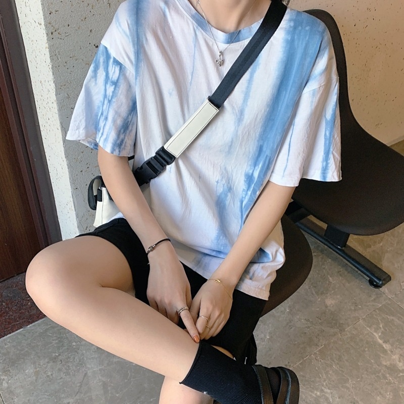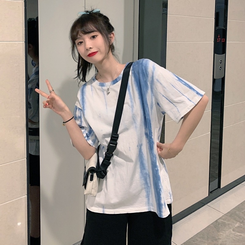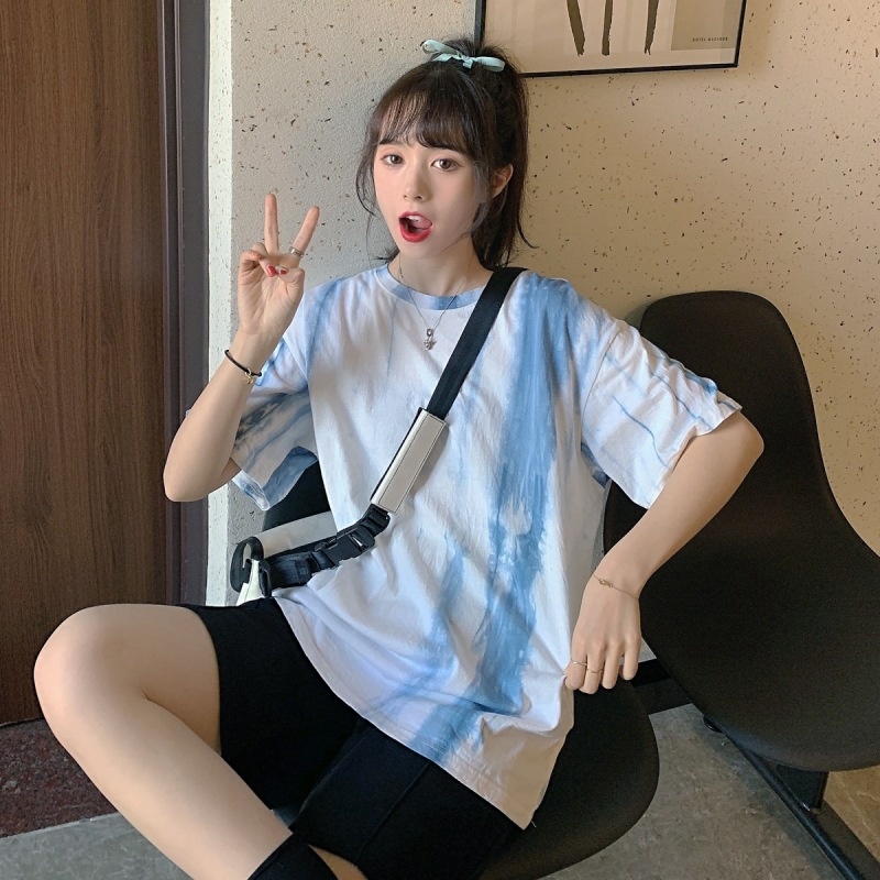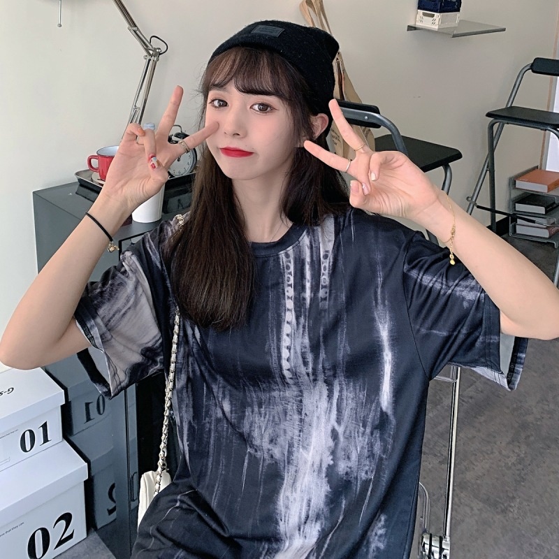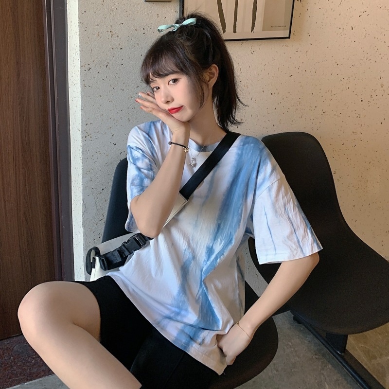2025新款闺蜜装夏季扎染短袖T恤女休闲宽松韩版上衣服女装外贸潮