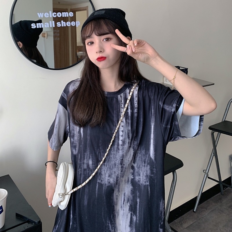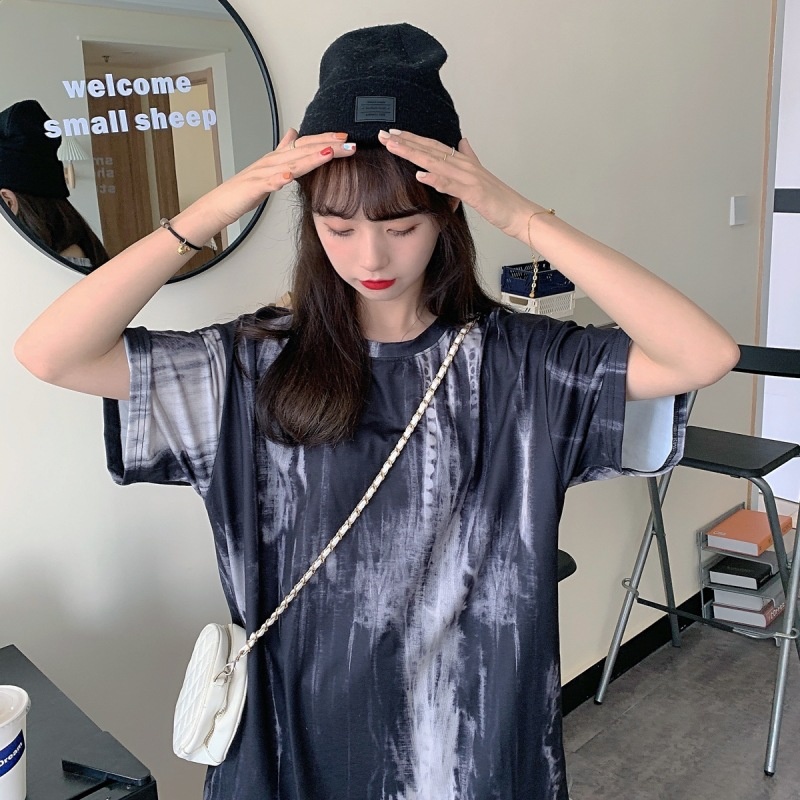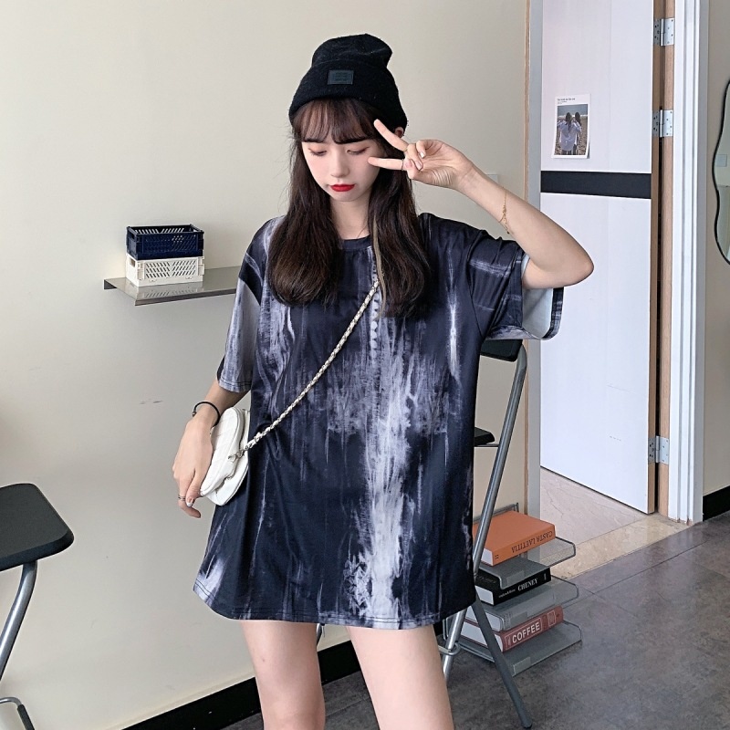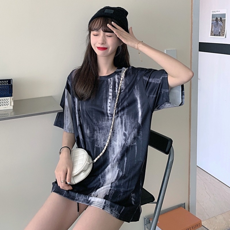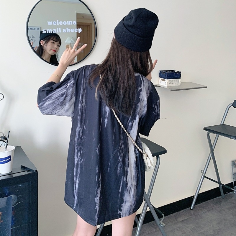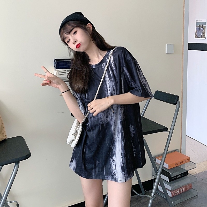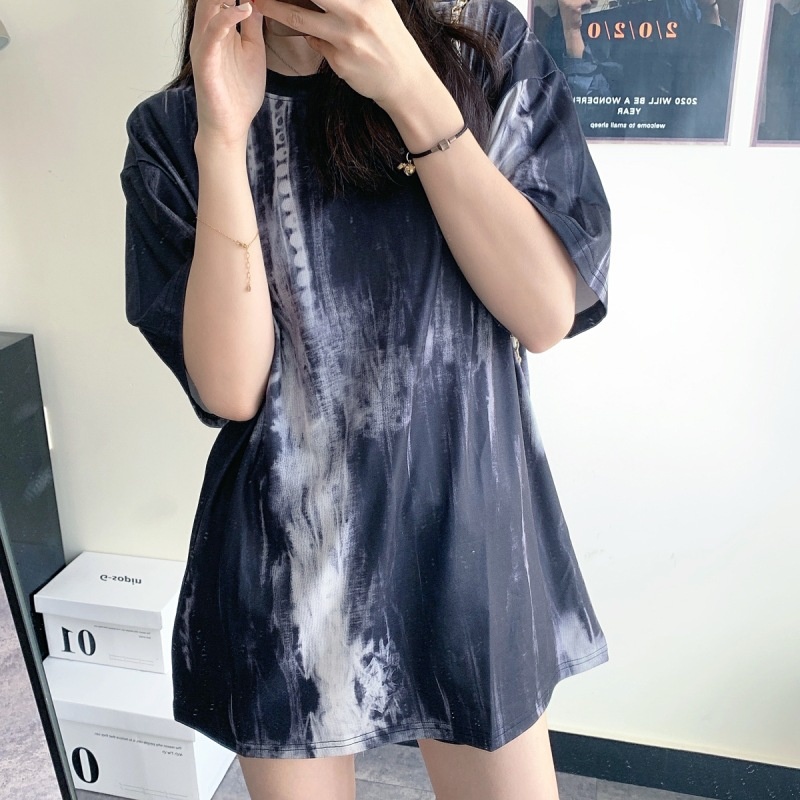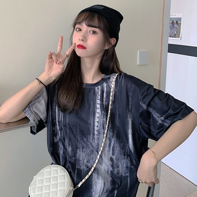 2025新款闺蜜装夏季扎染短袖T恤女休闲宽松韩版上衣服女装外贸潮