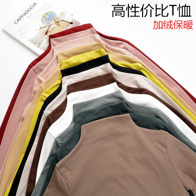 2025高领加绒保暖打底衫女秋冬纯色长袖T恤新款韩版修身显瘦上衣