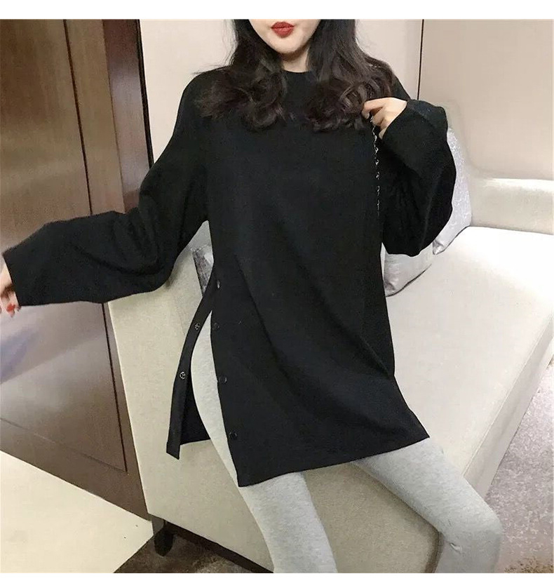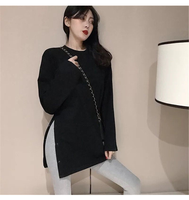 2025新款初秋女装韩版网红秋衣纯色长袖t恤女宽松学生开叉上衣潮