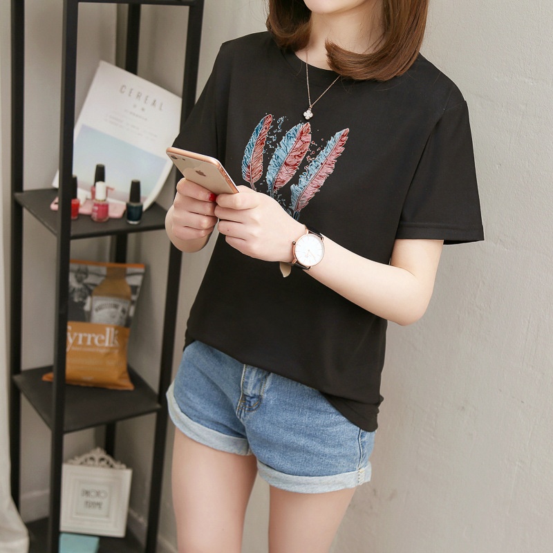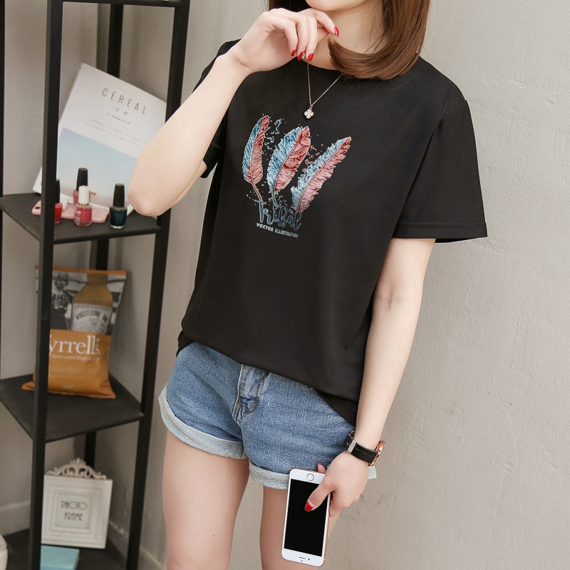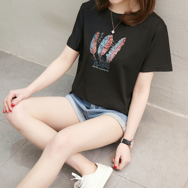 2025夏装韩版字母短袖t恤女学生百搭宽松半袖体恤原宿风bf上衣服