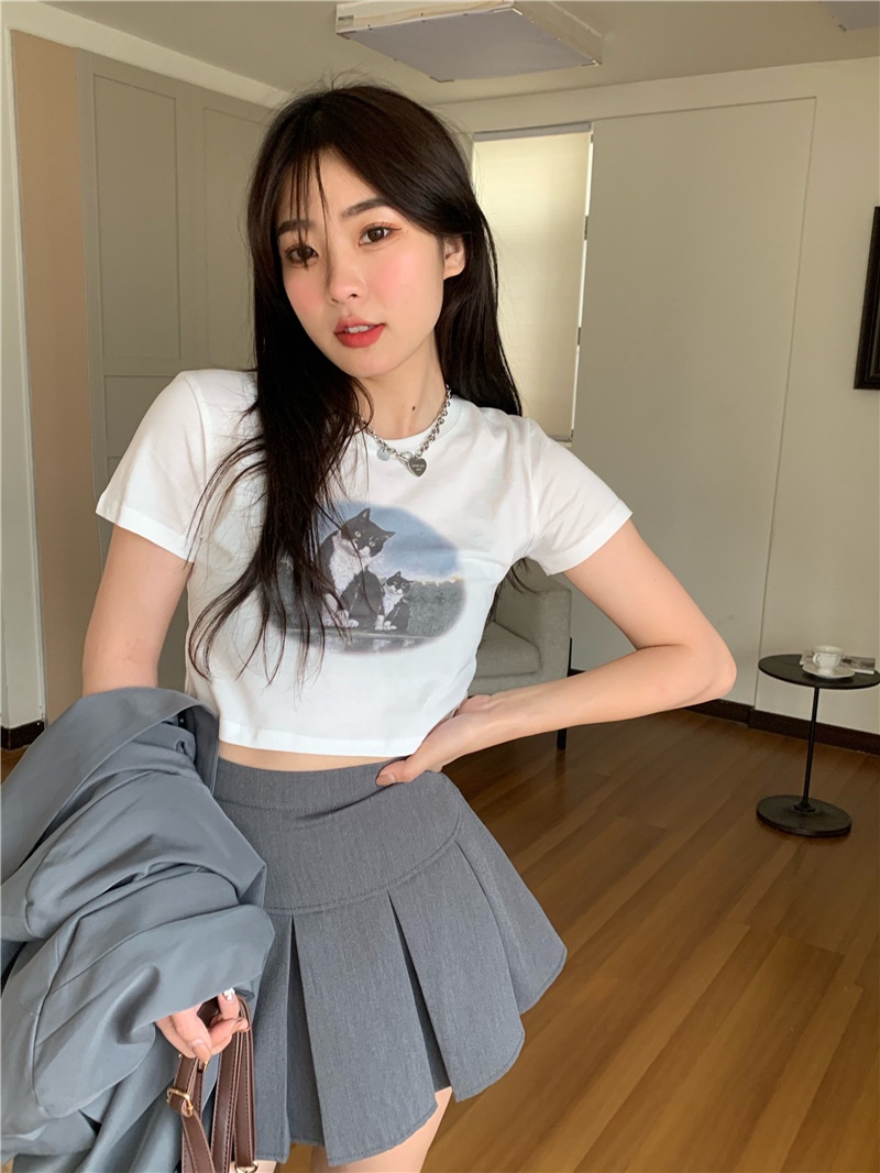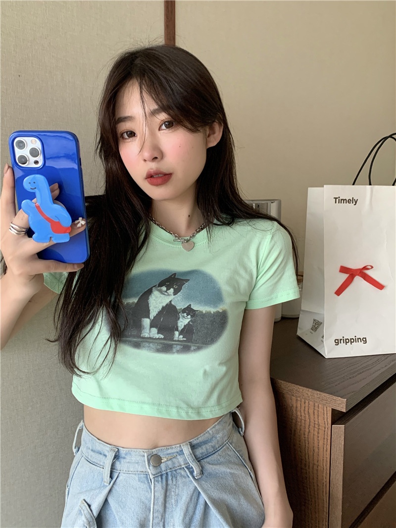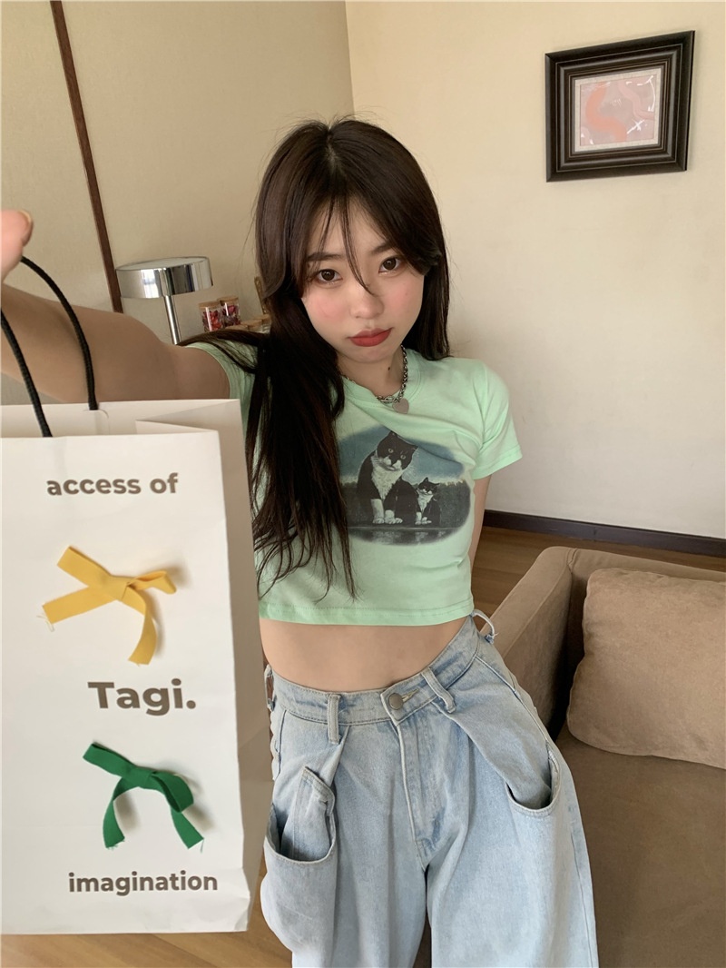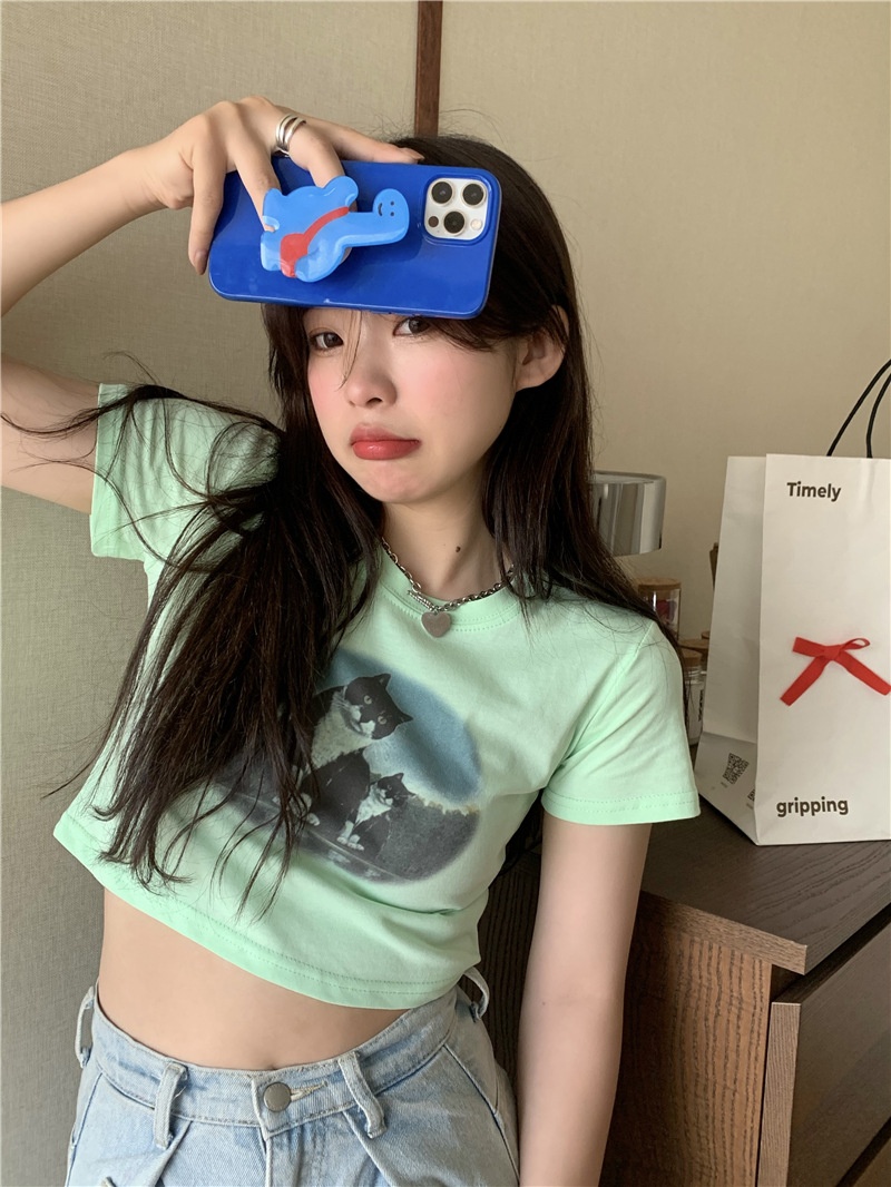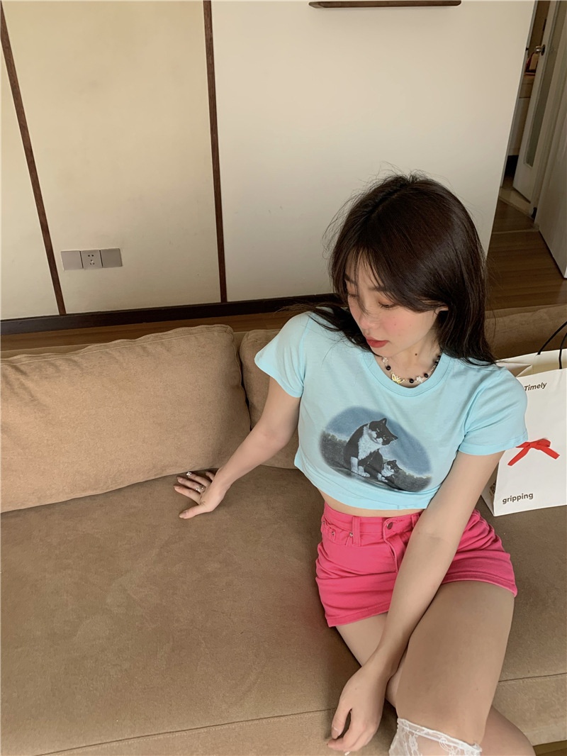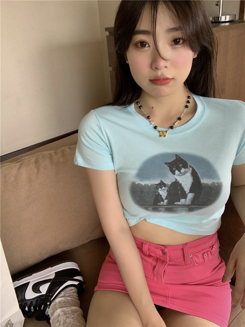 短款露脐辣妹学生上衣潮ins修身2025夏季短袖T恤女设计感小众半袖