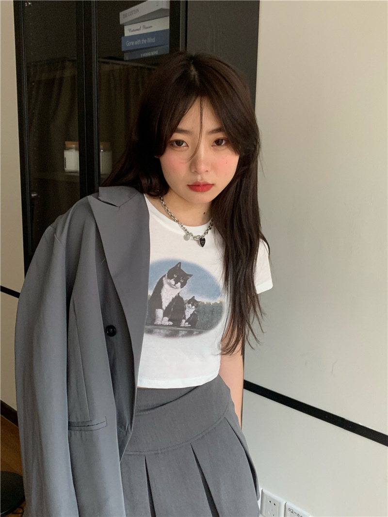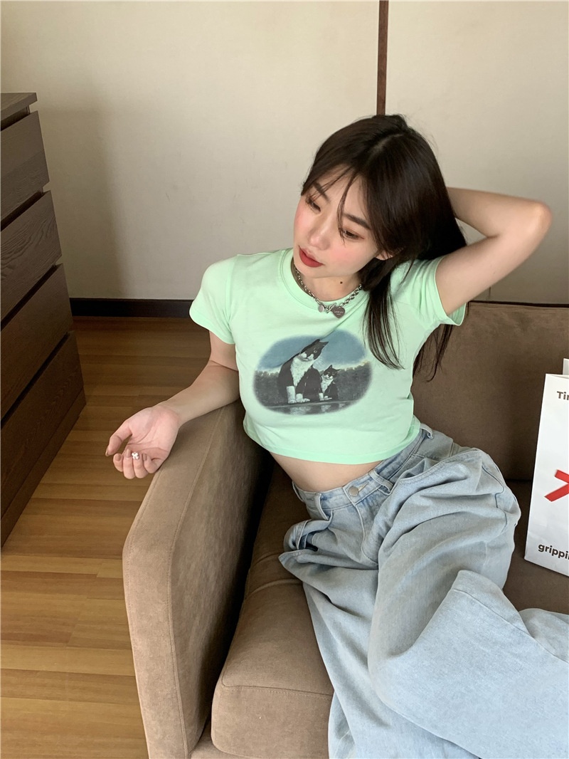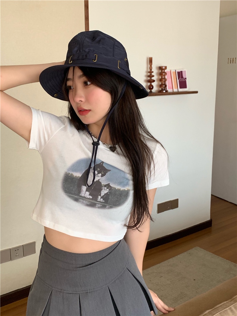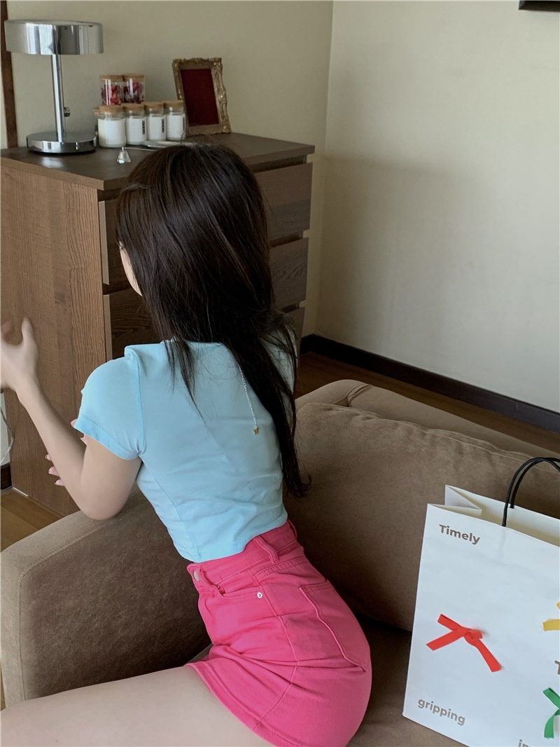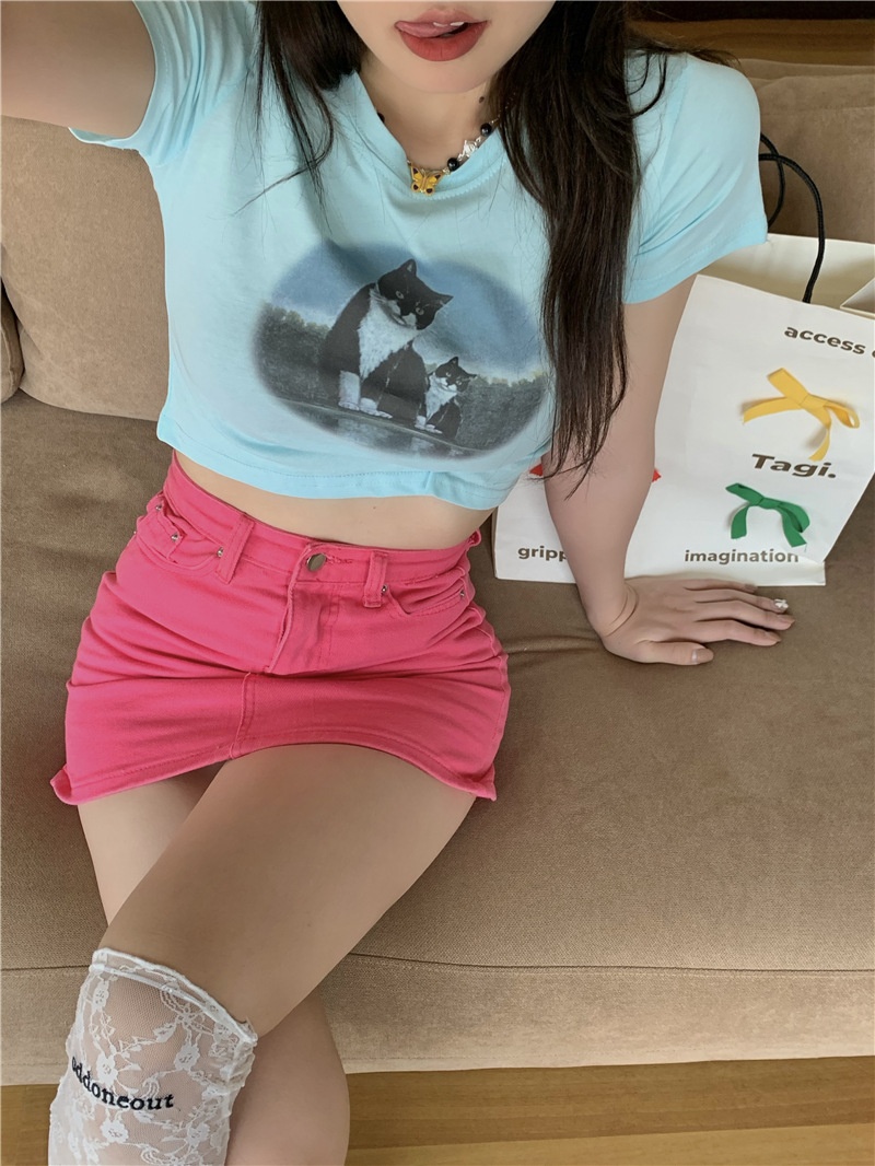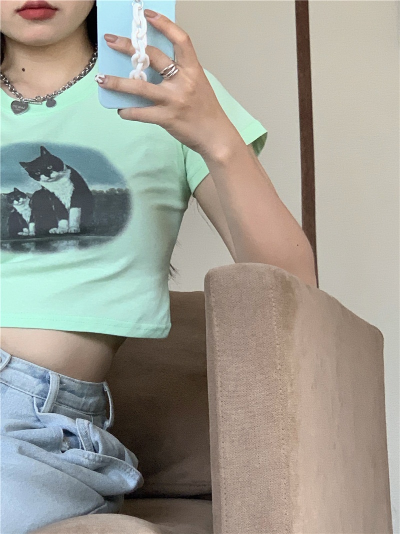 短款露脐辣妹学生上衣潮ins修身2025夏季短袖T恤女设计感小众半袖