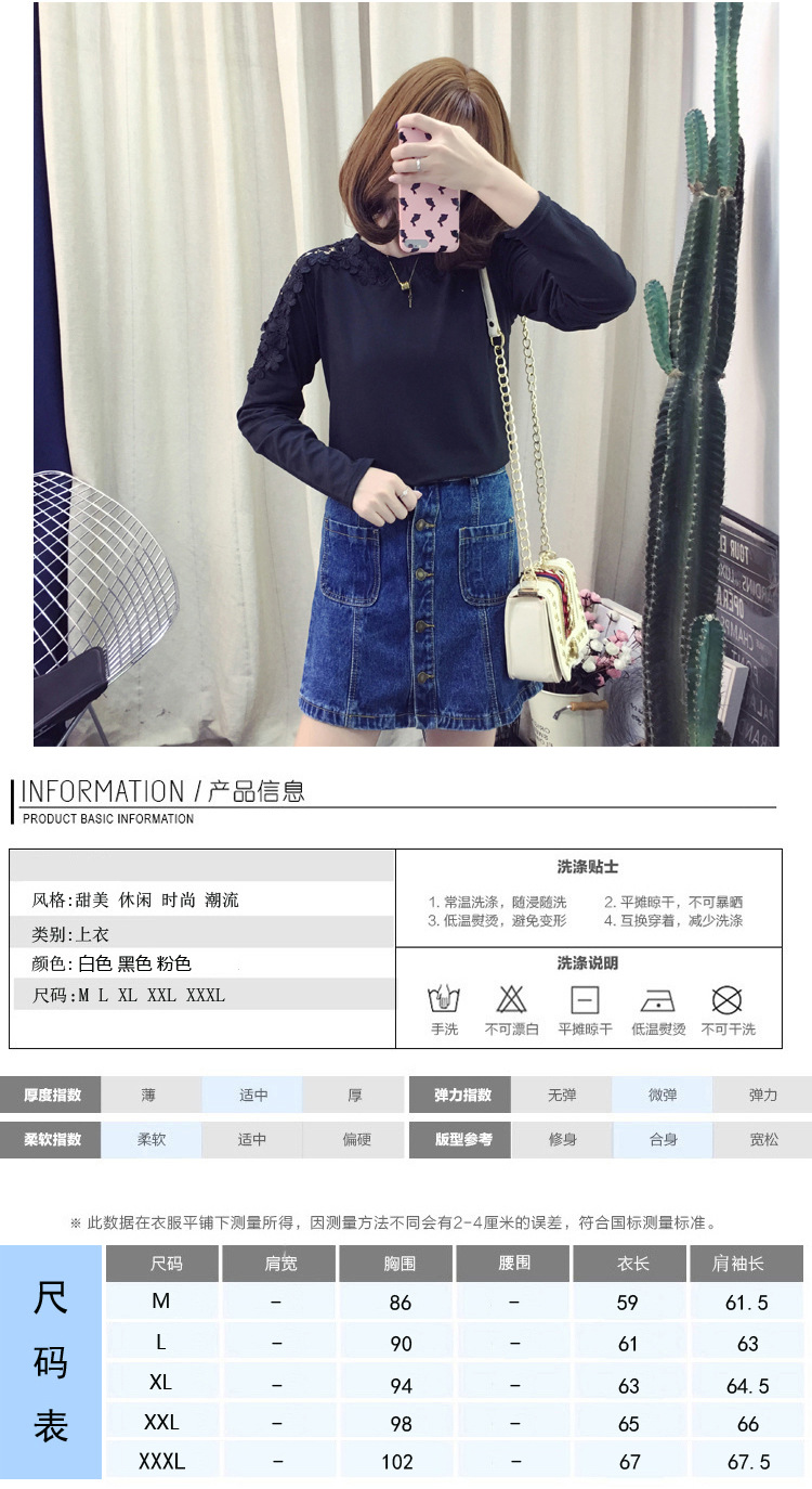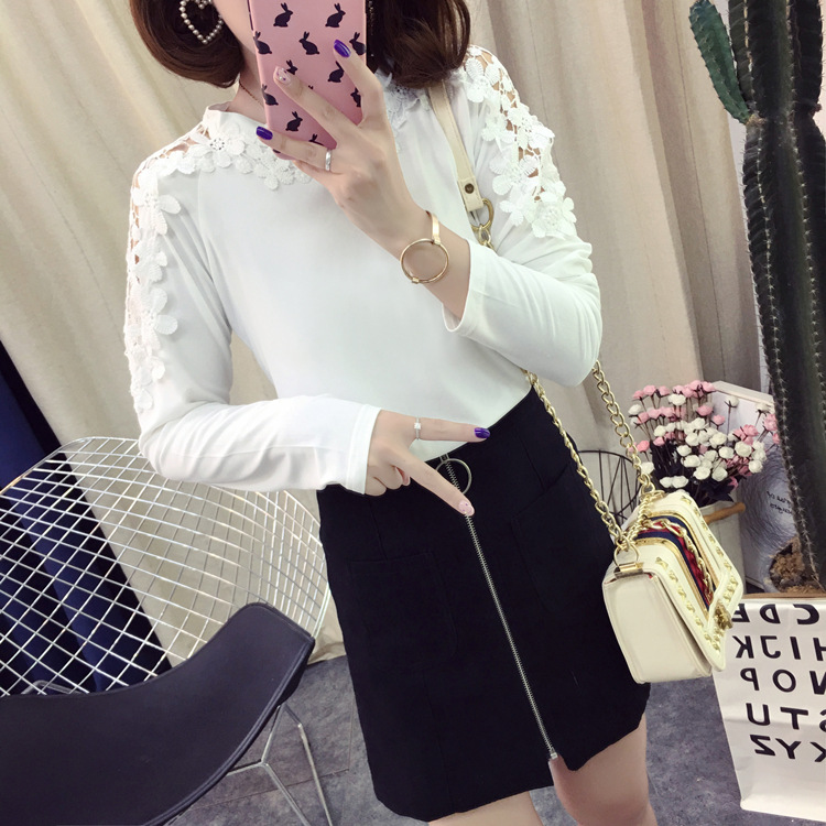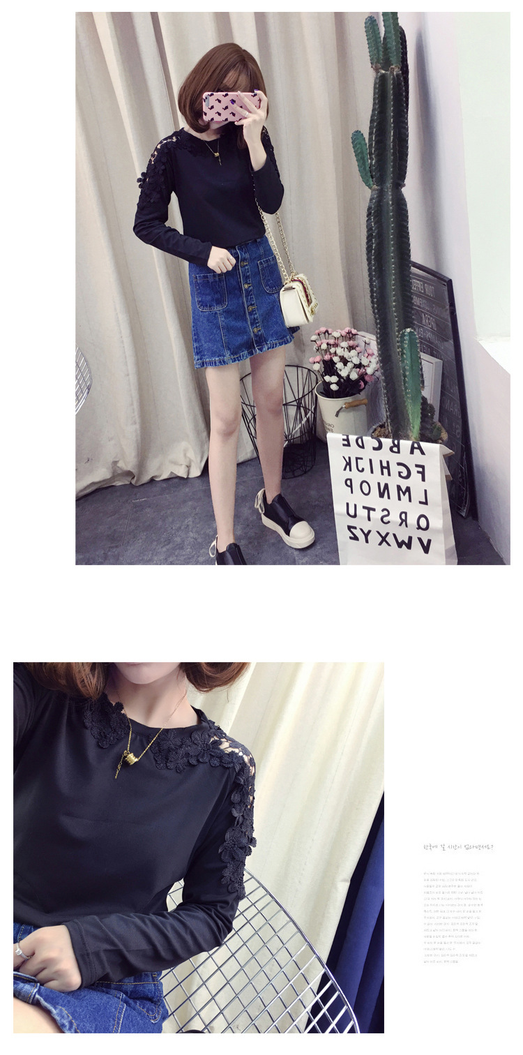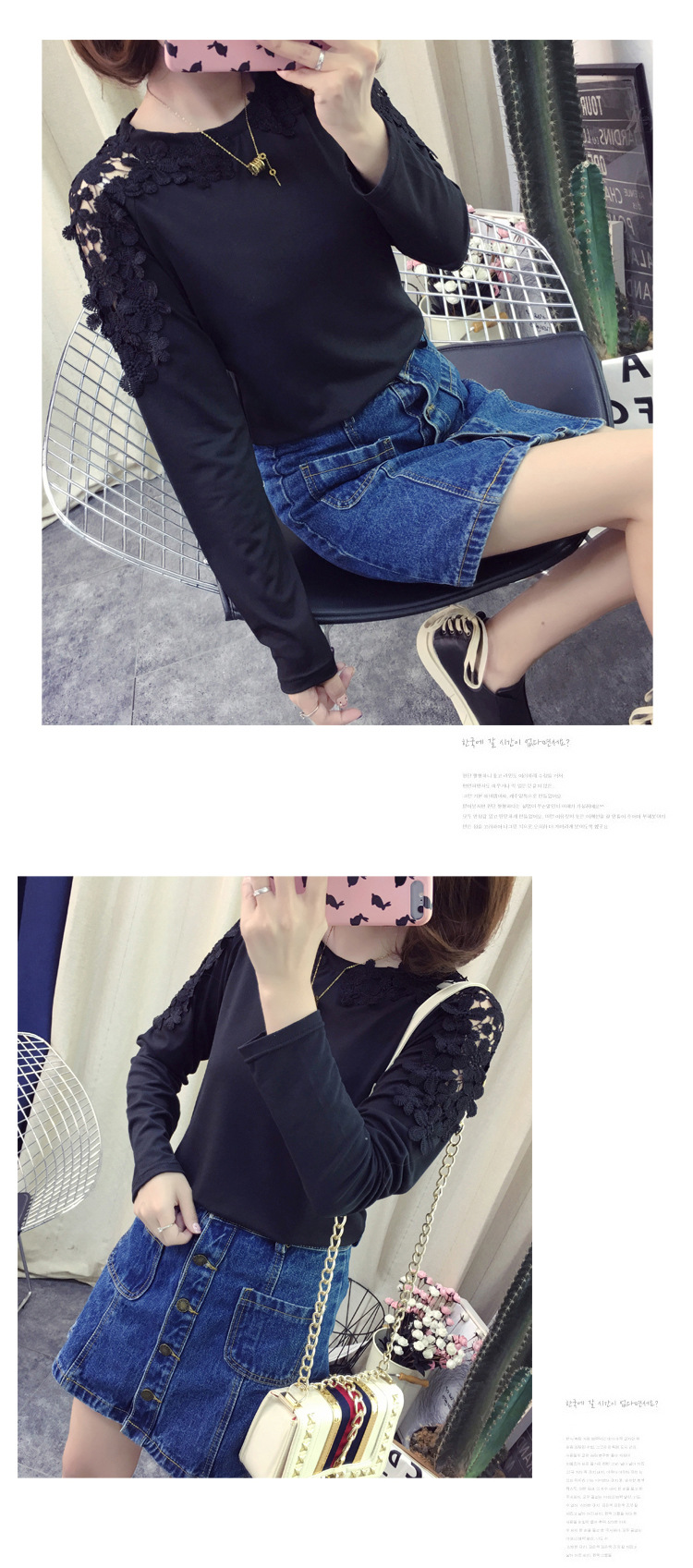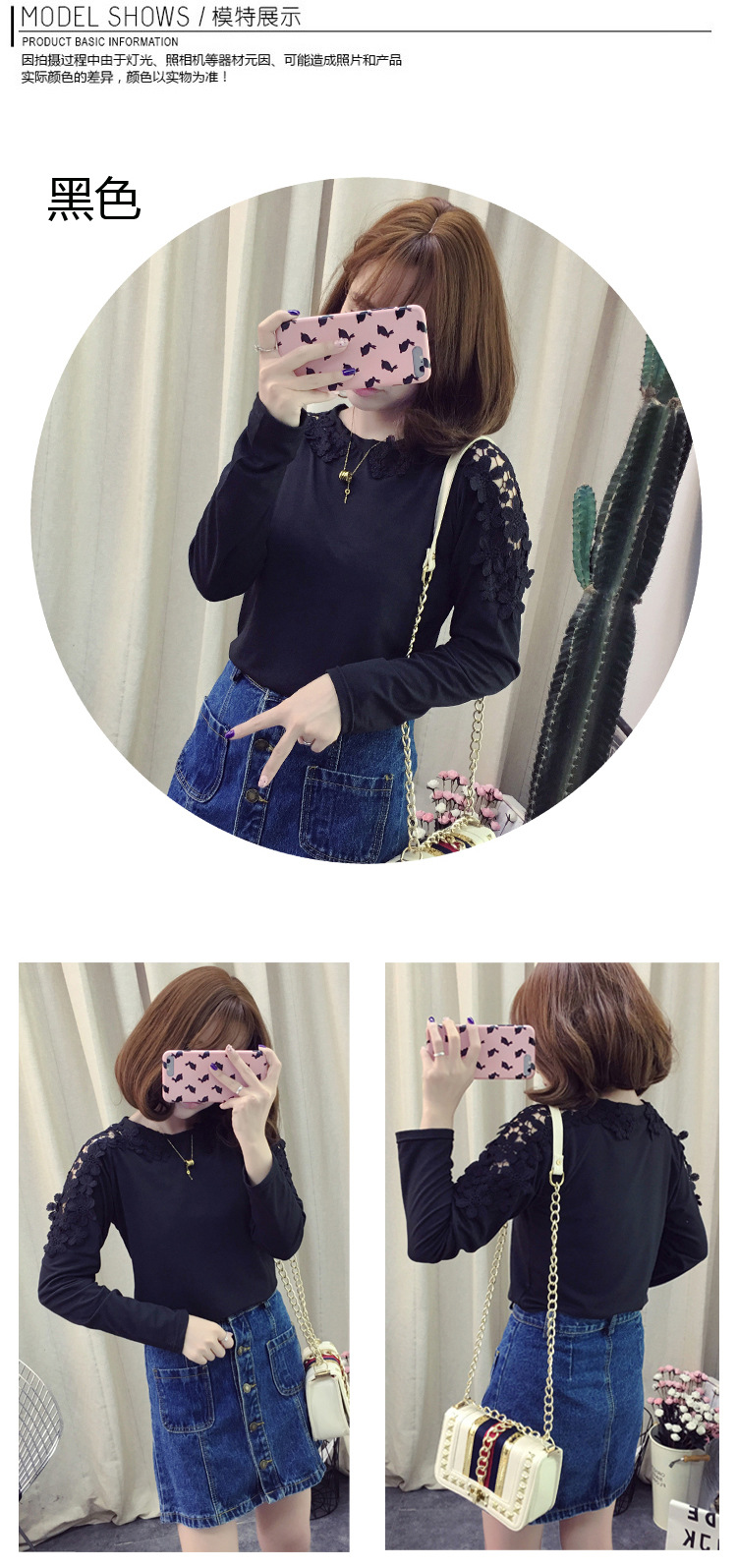 新品2025女装纯色长袖t恤女外穿秋装衣宽松蕾丝镂空学生上衣打底