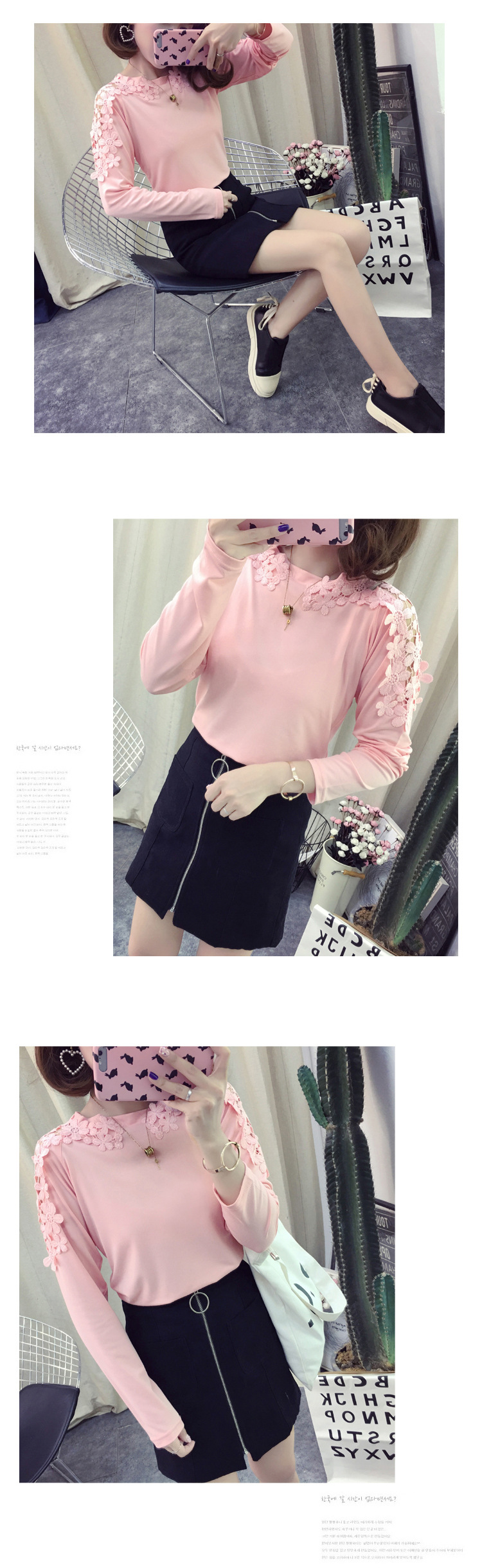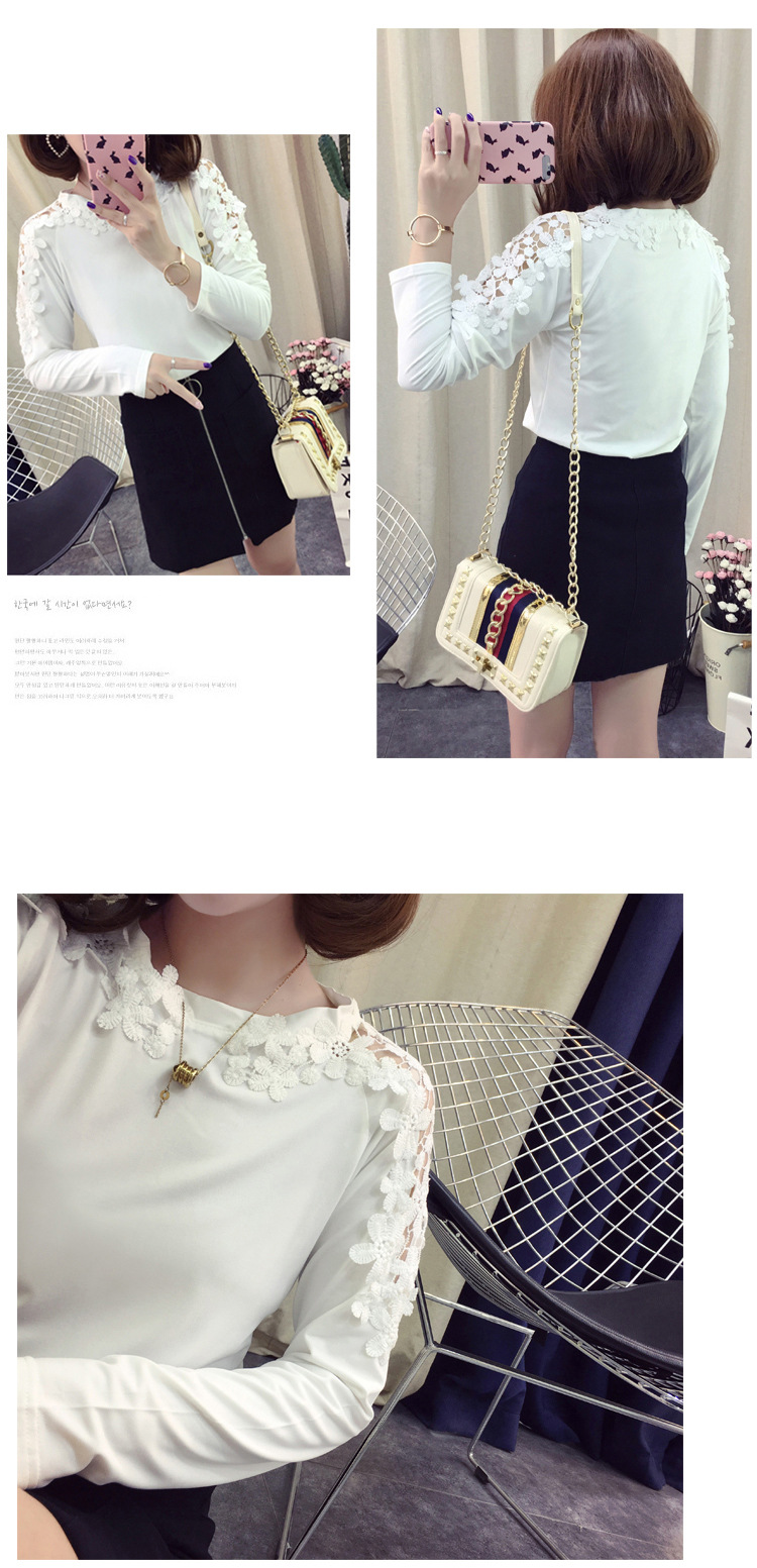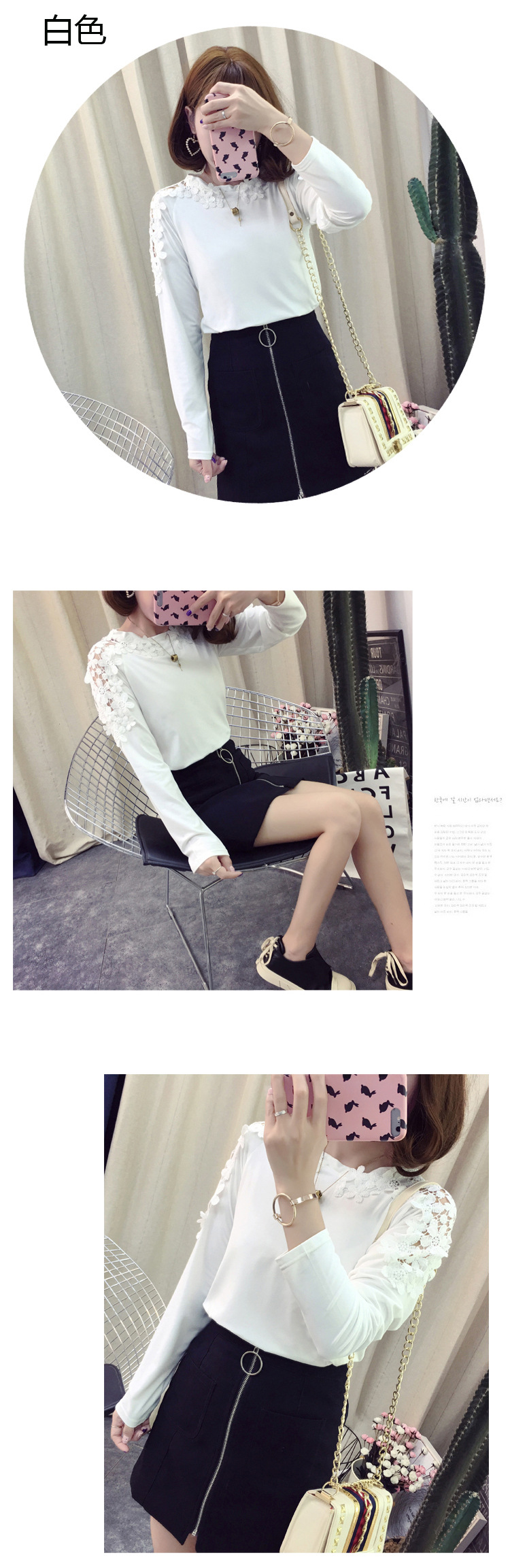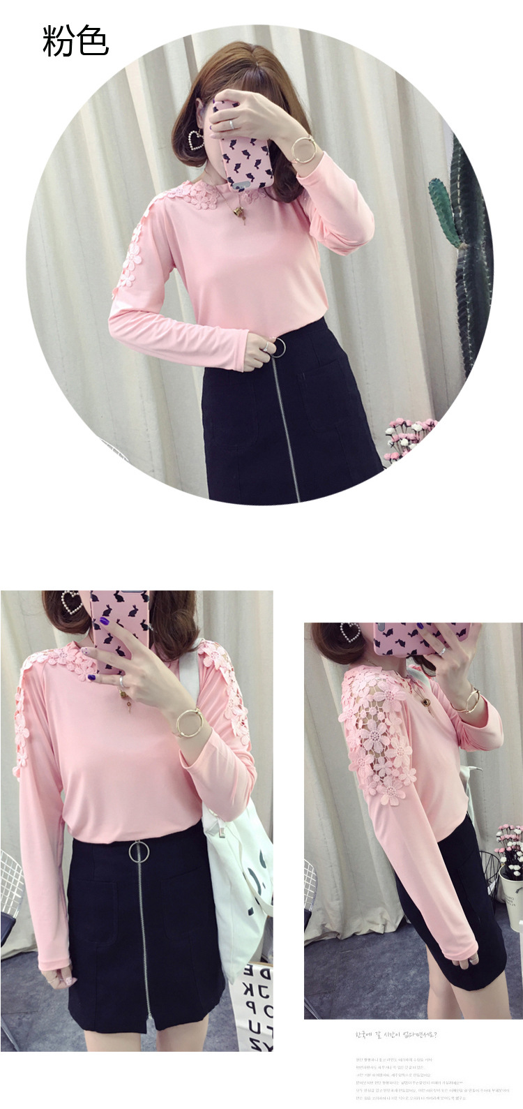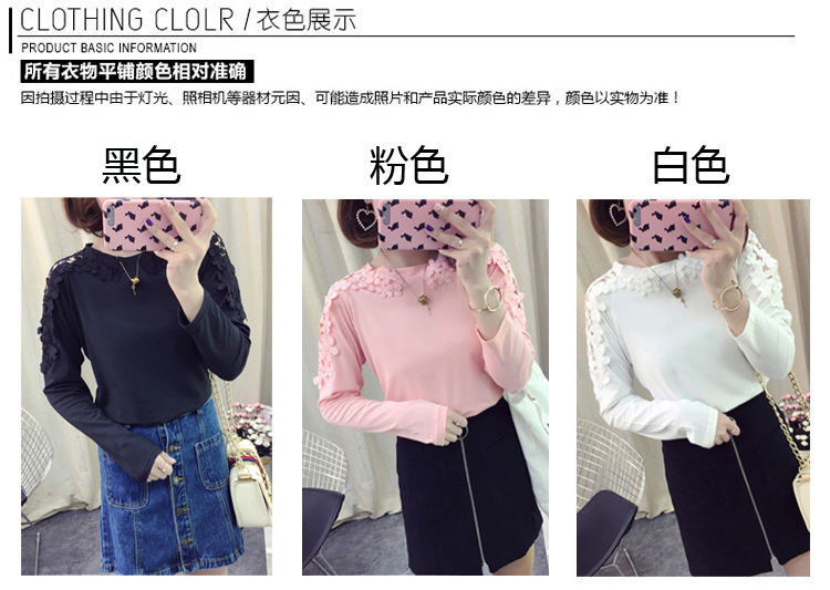 新品2025女装纯色长袖t恤女外穿秋装衣宽松蕾丝镂空学生上衣打底