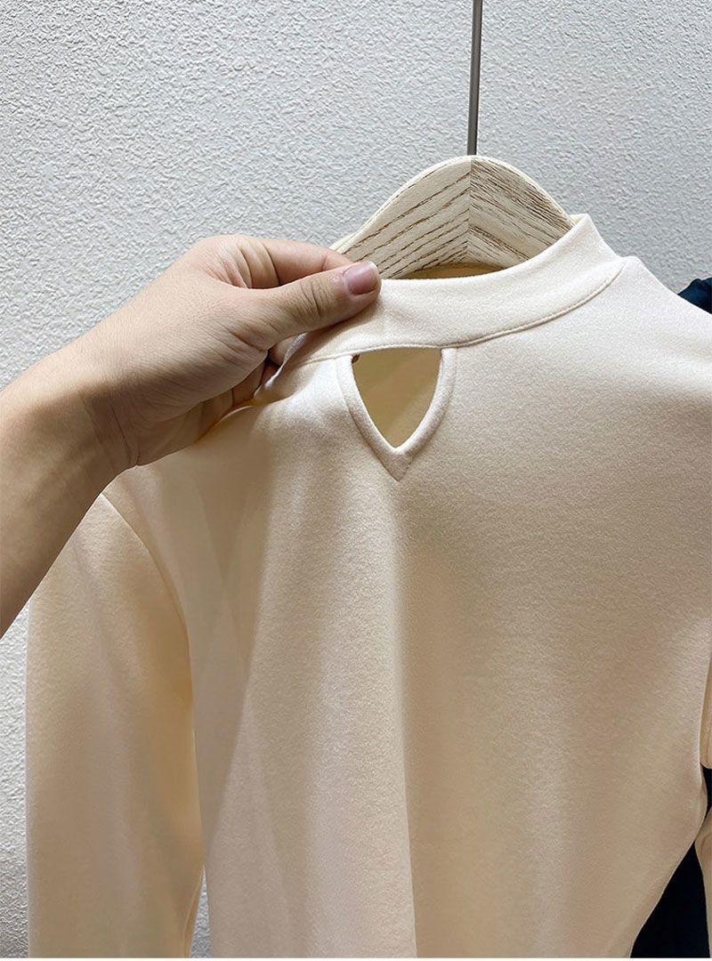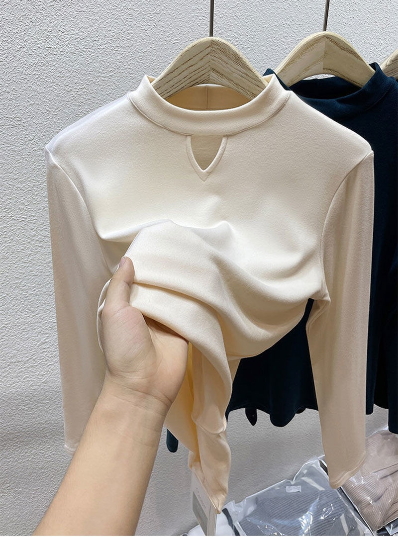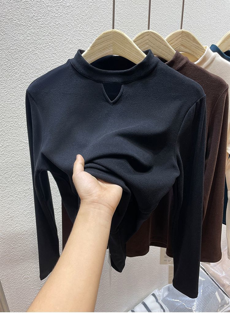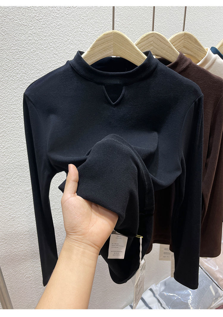 半高领磨毛双面德绒打底衫女2025秋冬新款镂空内搭学生长袖T恤女