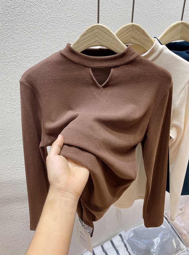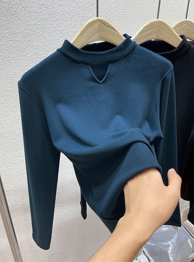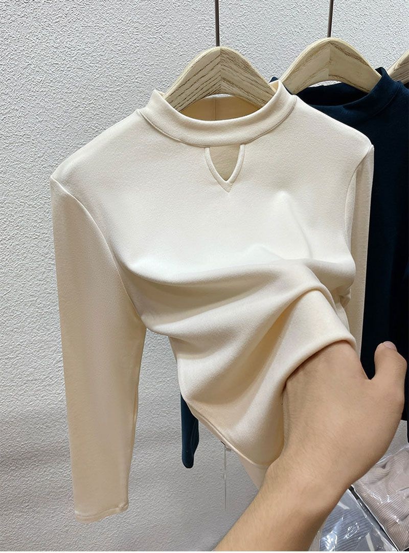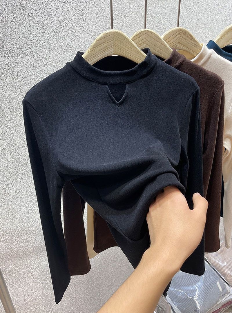 半高领磨毛双面德绒打底衫女2025秋冬新款镂空内搭学生长袖T恤女
