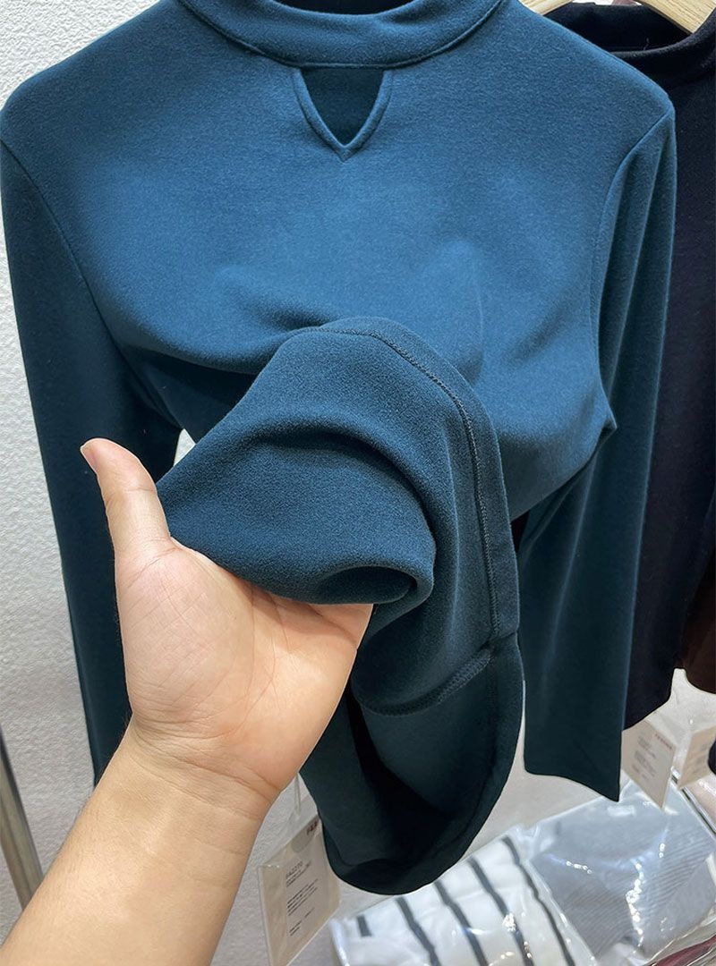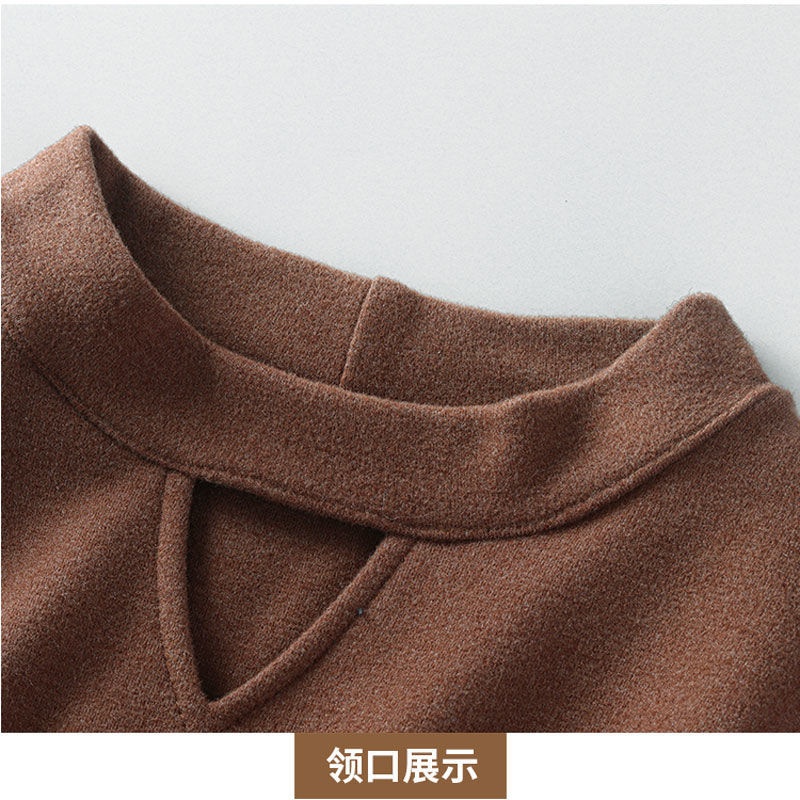 半高领磨毛双面德绒打底衫女2023秋冬新款镂空内搭加绒加厚上衣