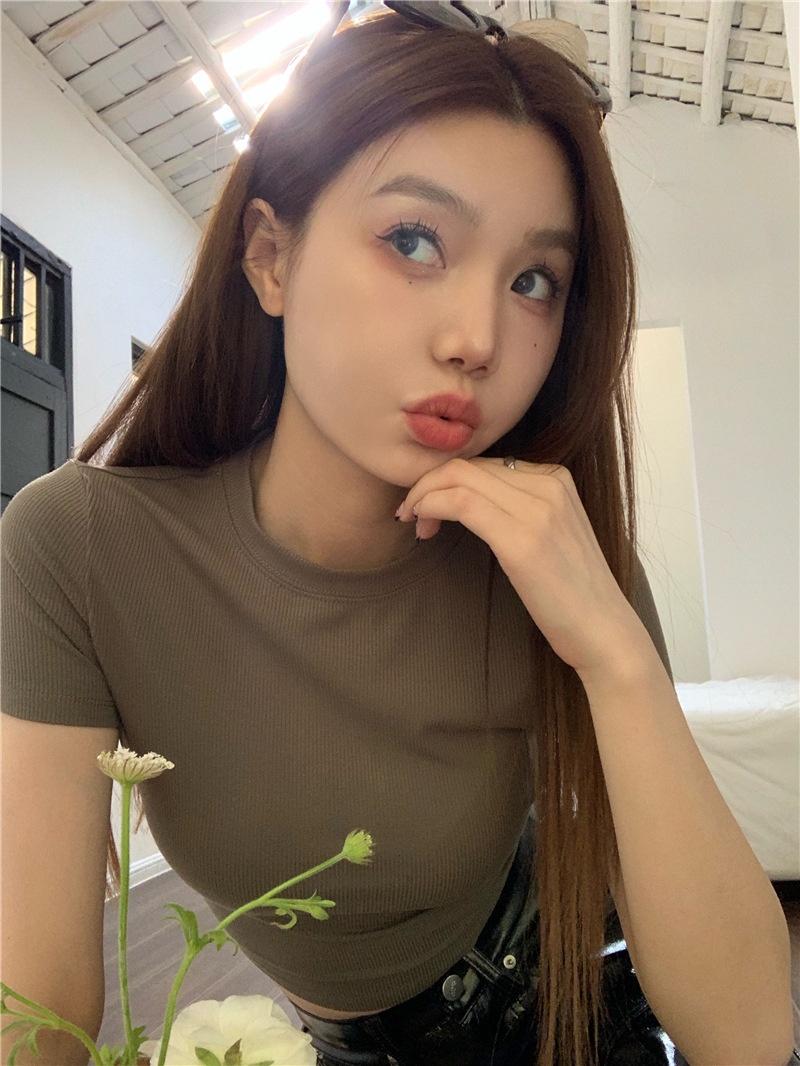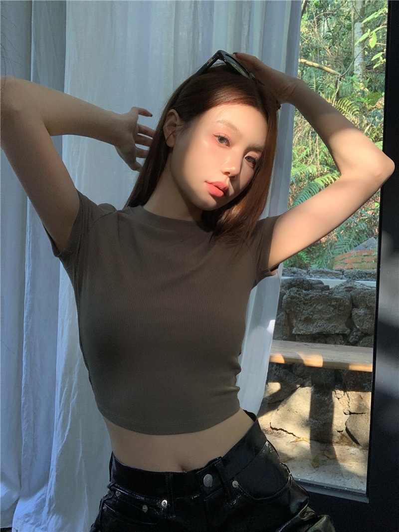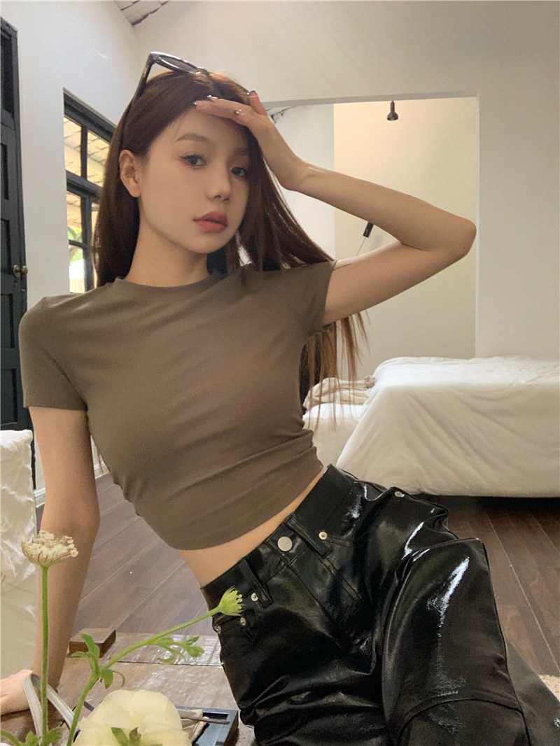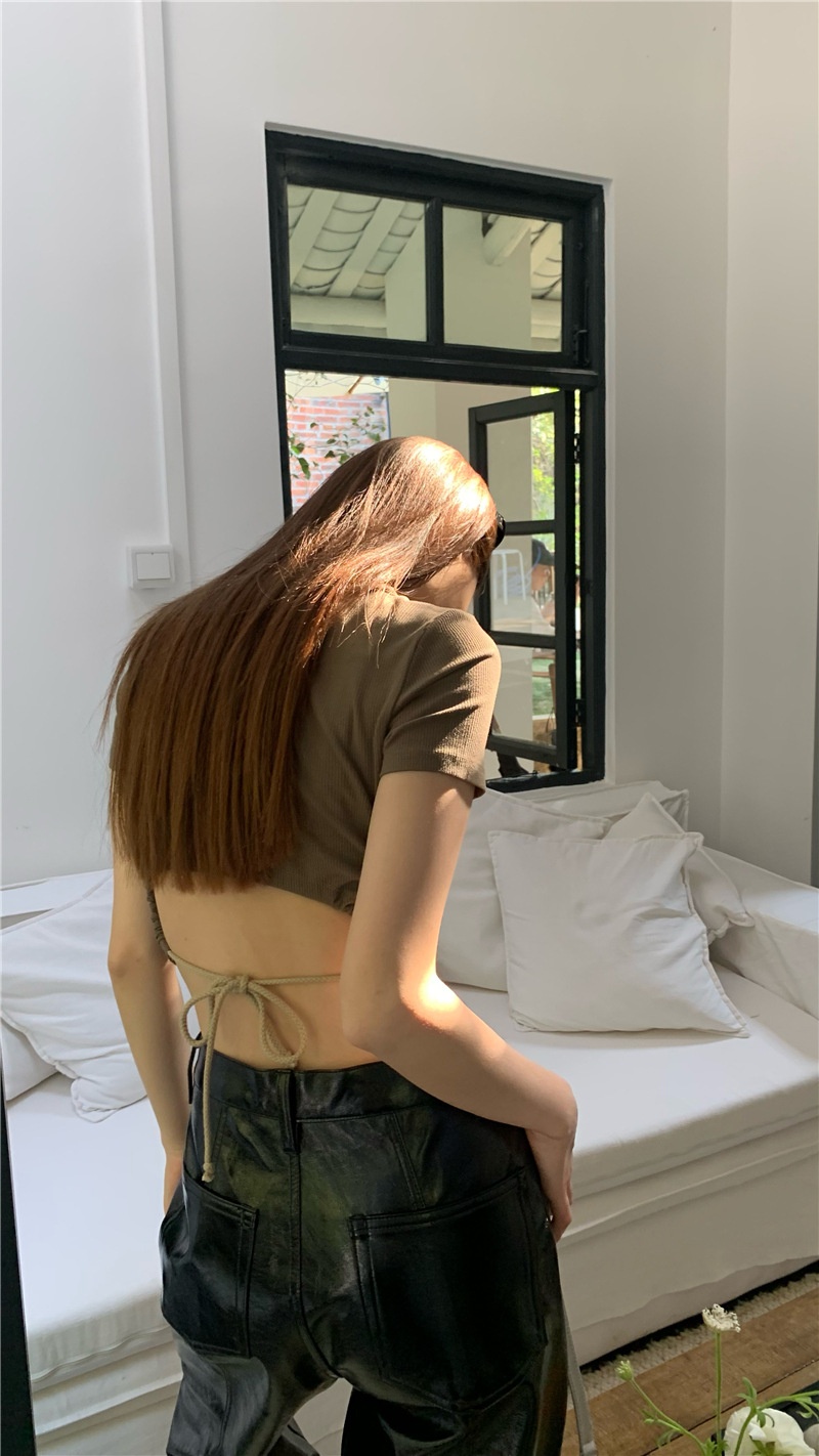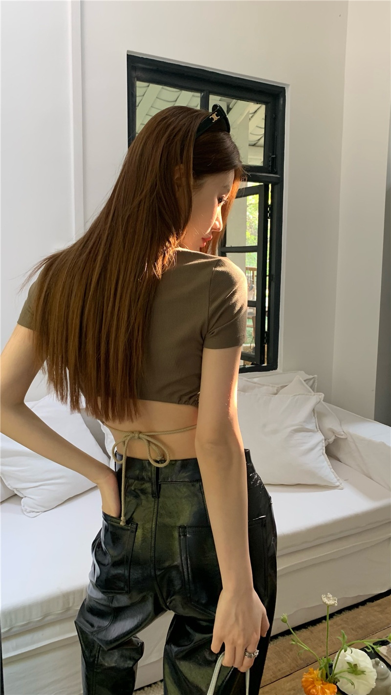 百搭设计感露背绑带短袖T恤女夏季2025新款修身短款辣妹气质上衣