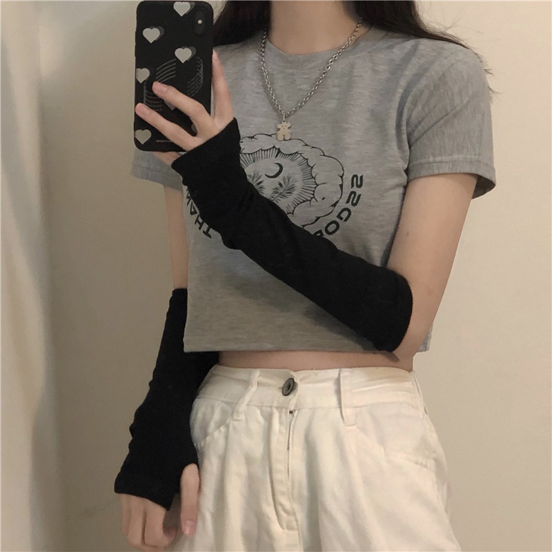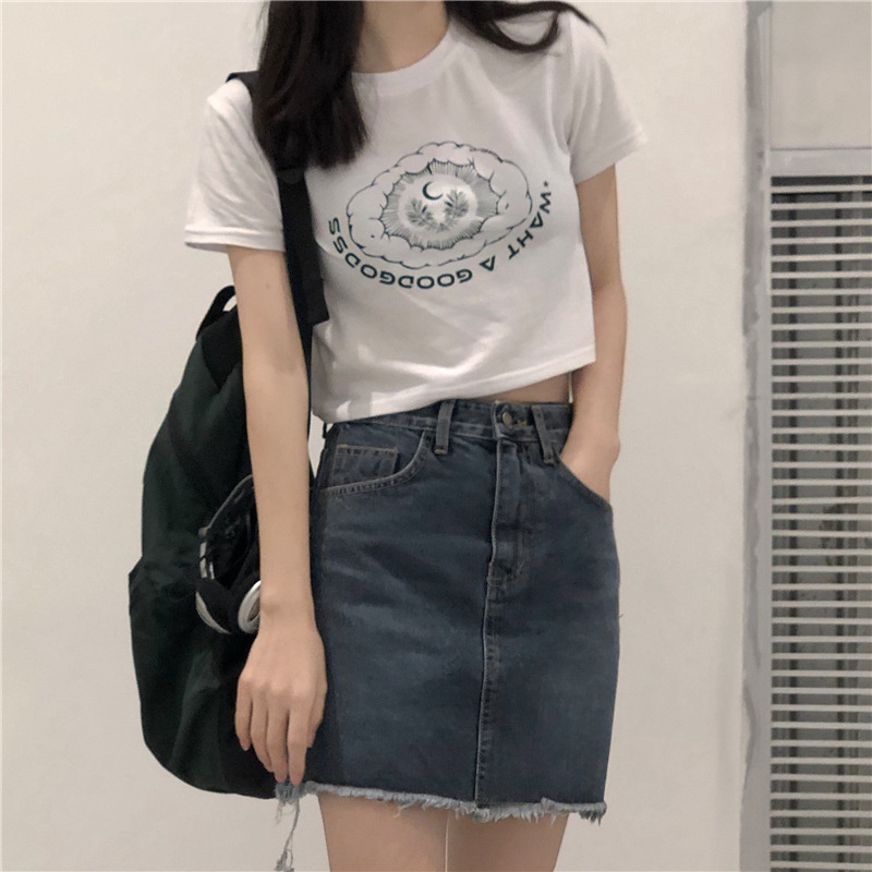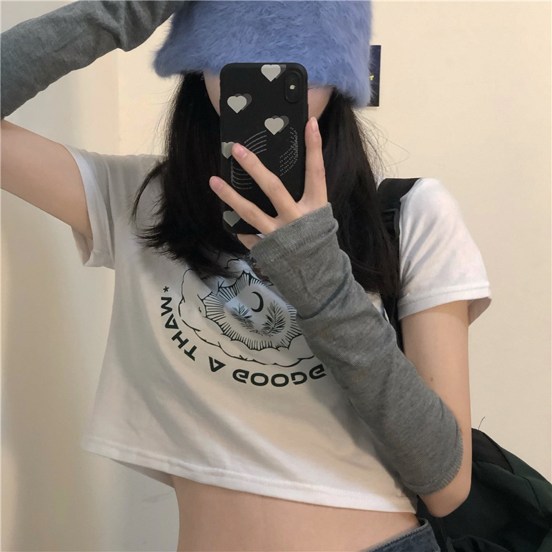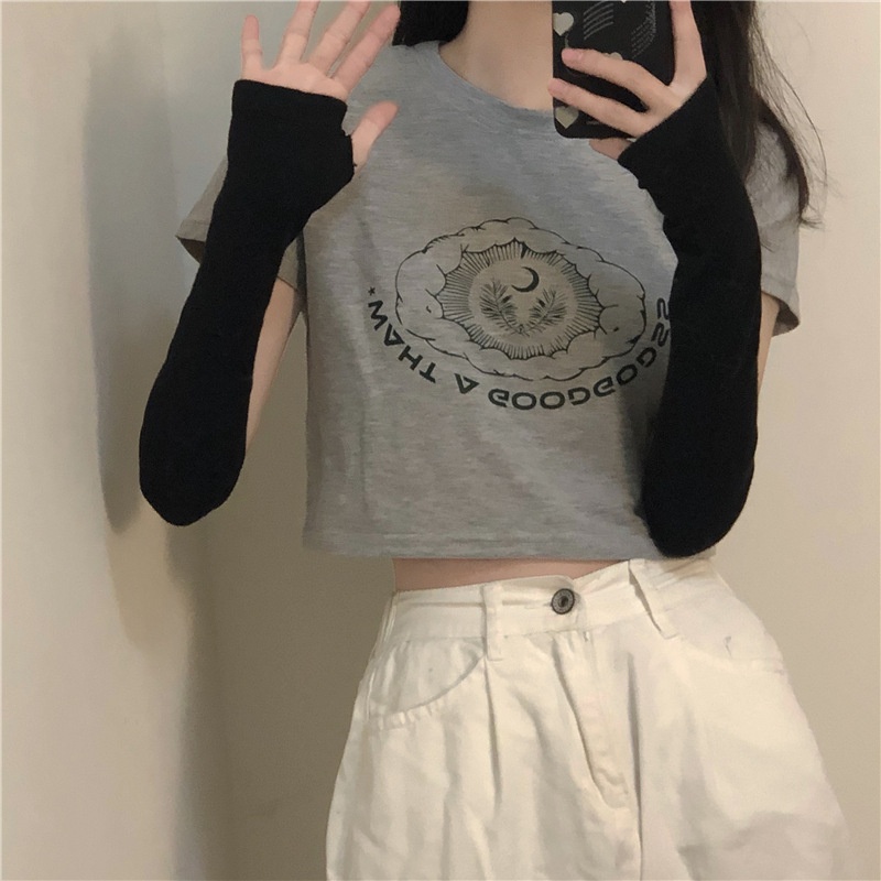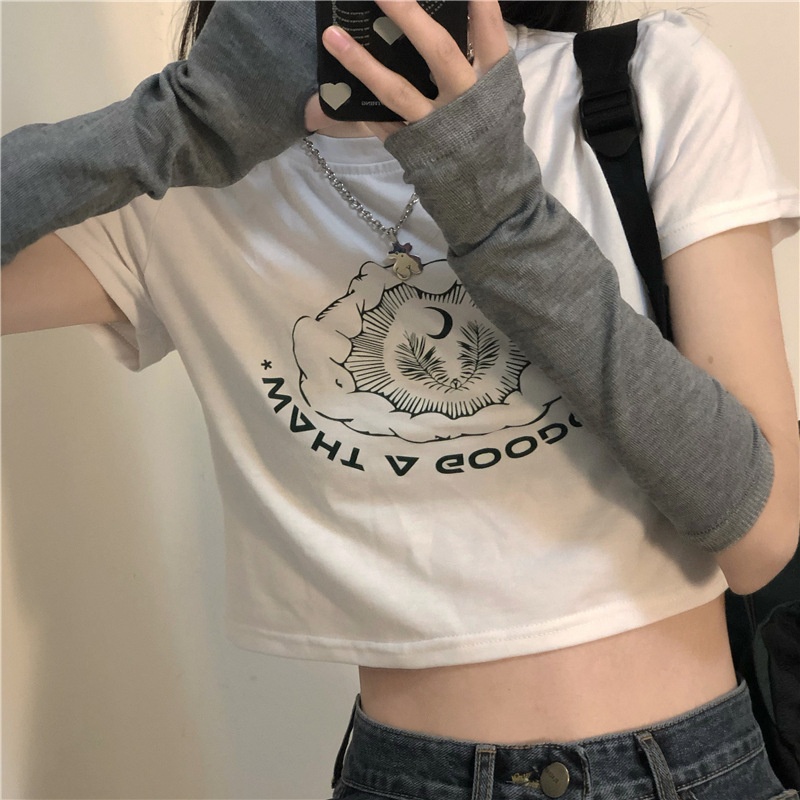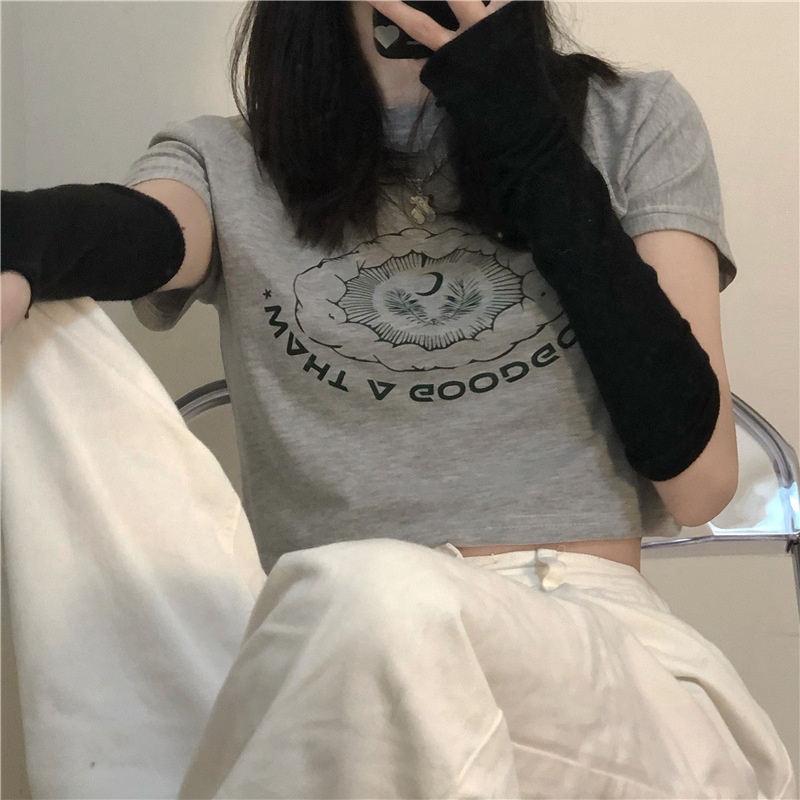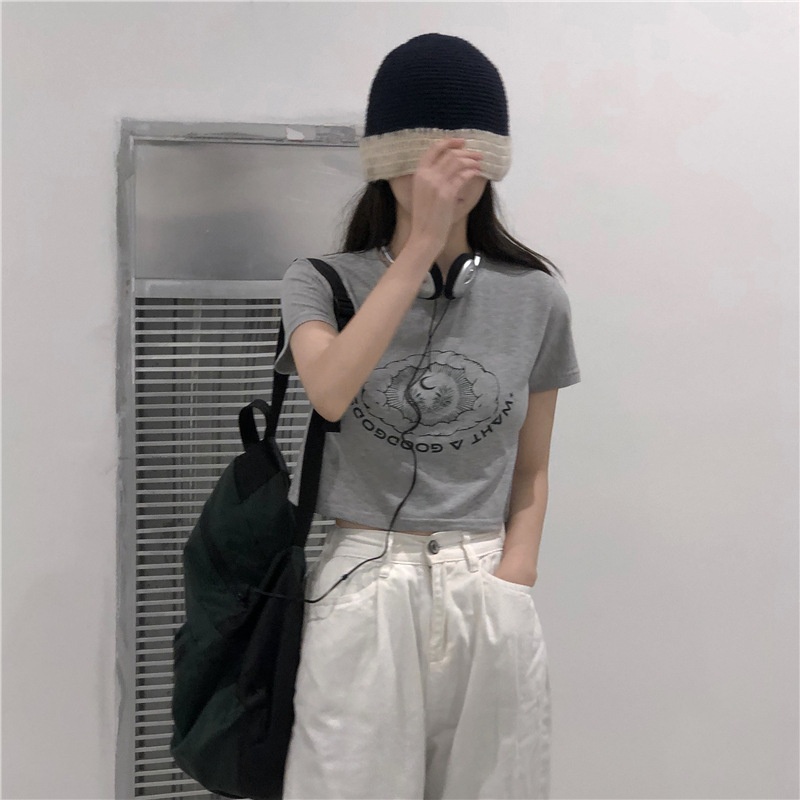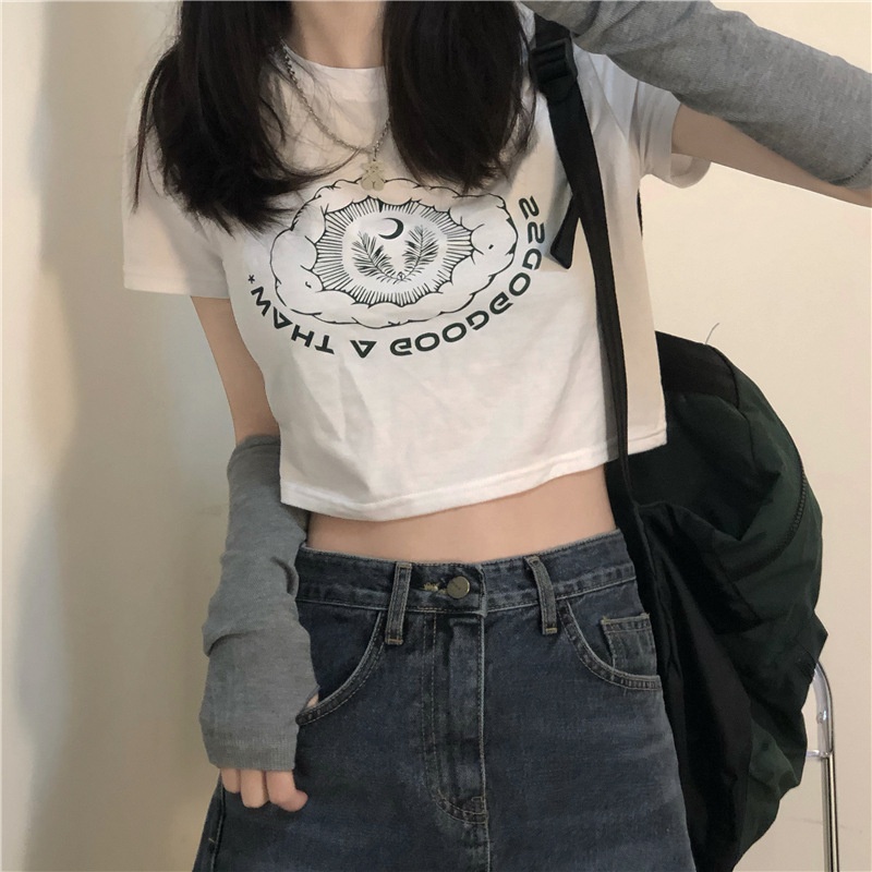 2025夏季新款韩版印花短袖t恤女潮修身短款露脐学生上衣女装批发