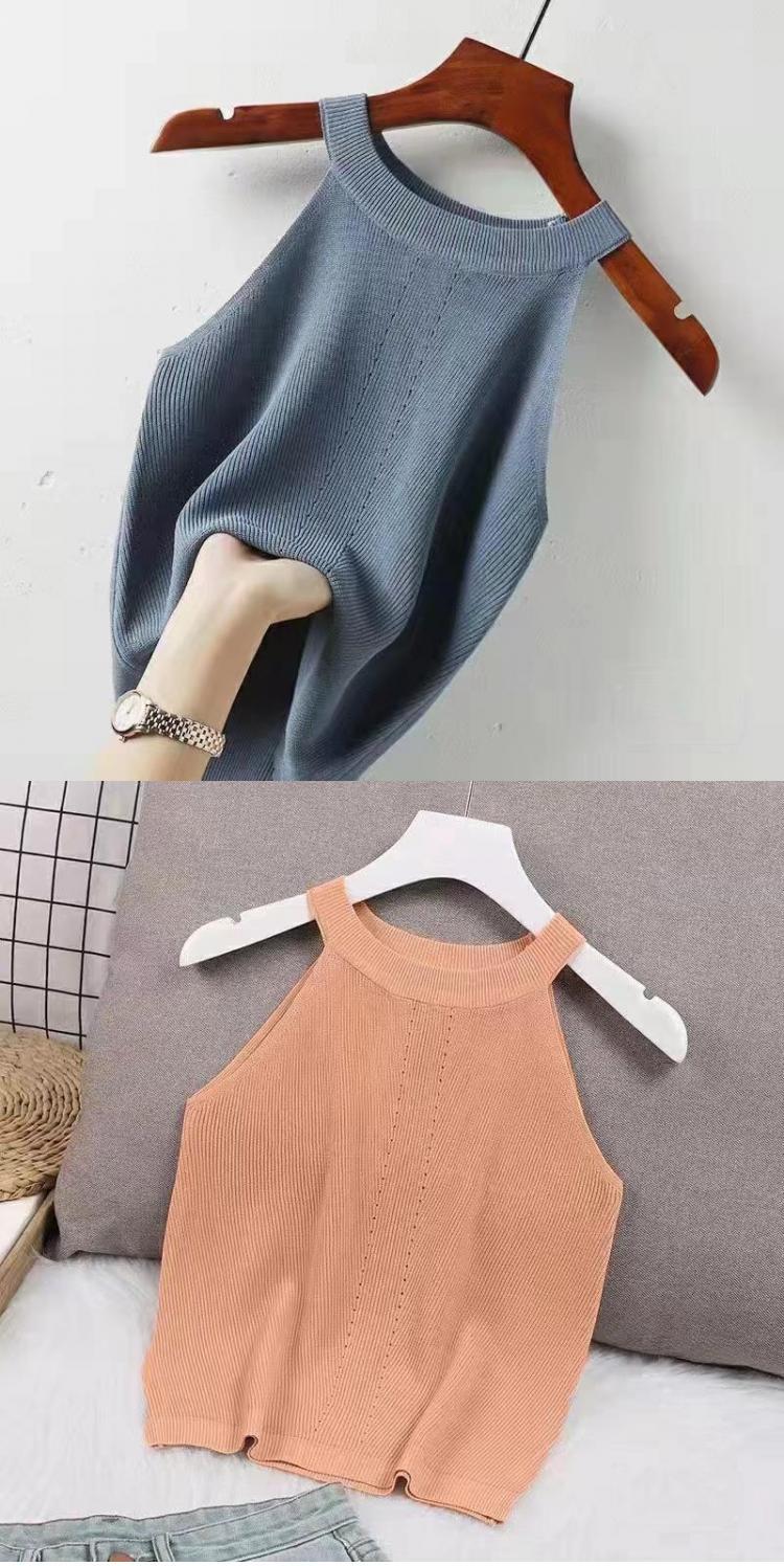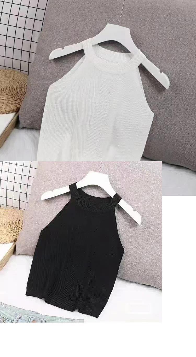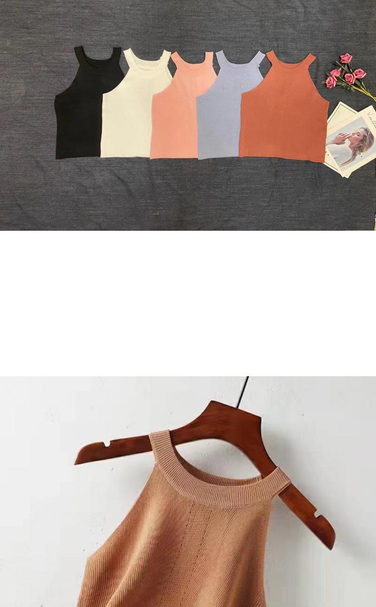 夏季短款纯色法式针织薄款挂脖吊带性感辣妹外穿露背加工定制上衣