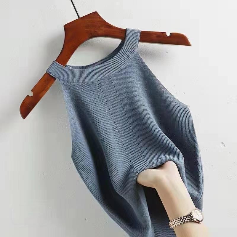 冰丝无袖针织挂脖吊带女夏季新款修身显瘦设计感露肩小心机上衣女