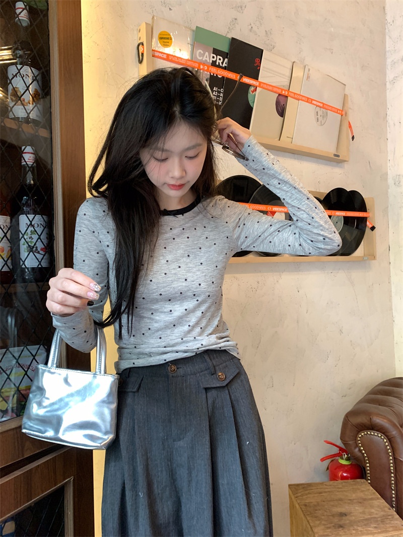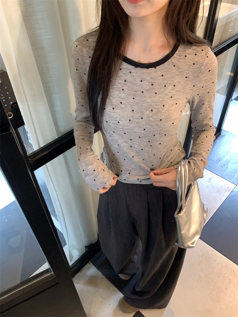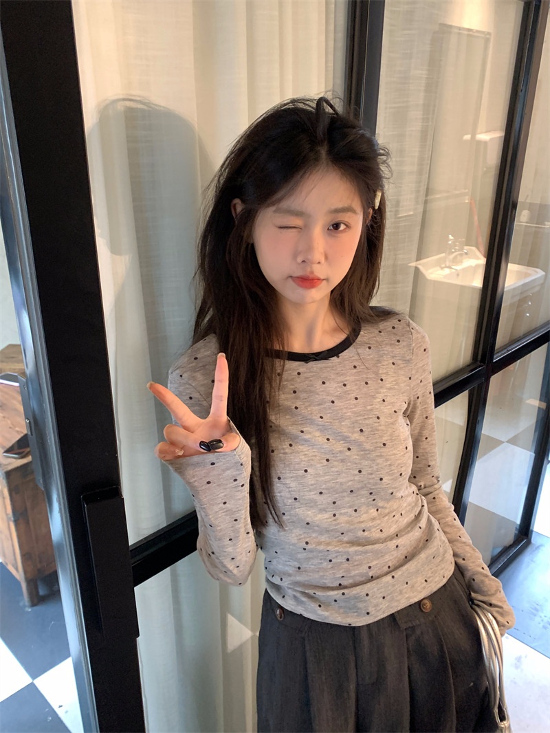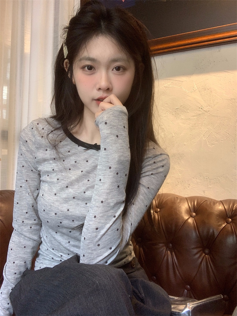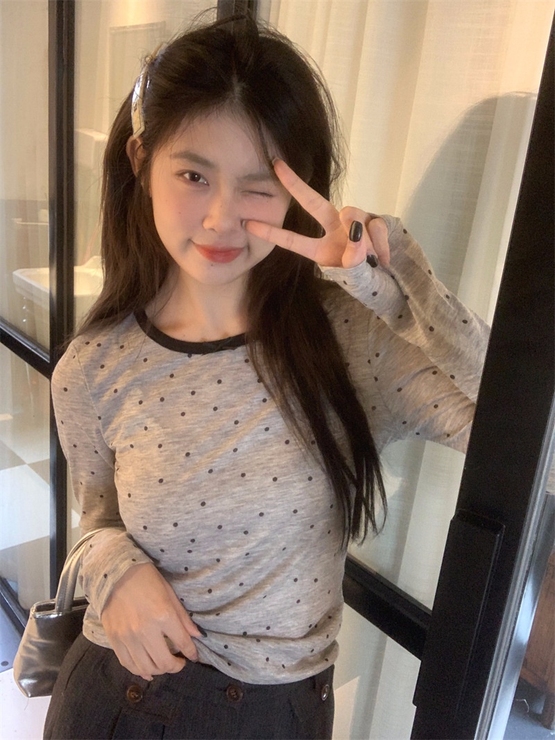 设计感撞色长袖T恤女2025秋季新款修身显瘦百搭学生打底圆领上衣