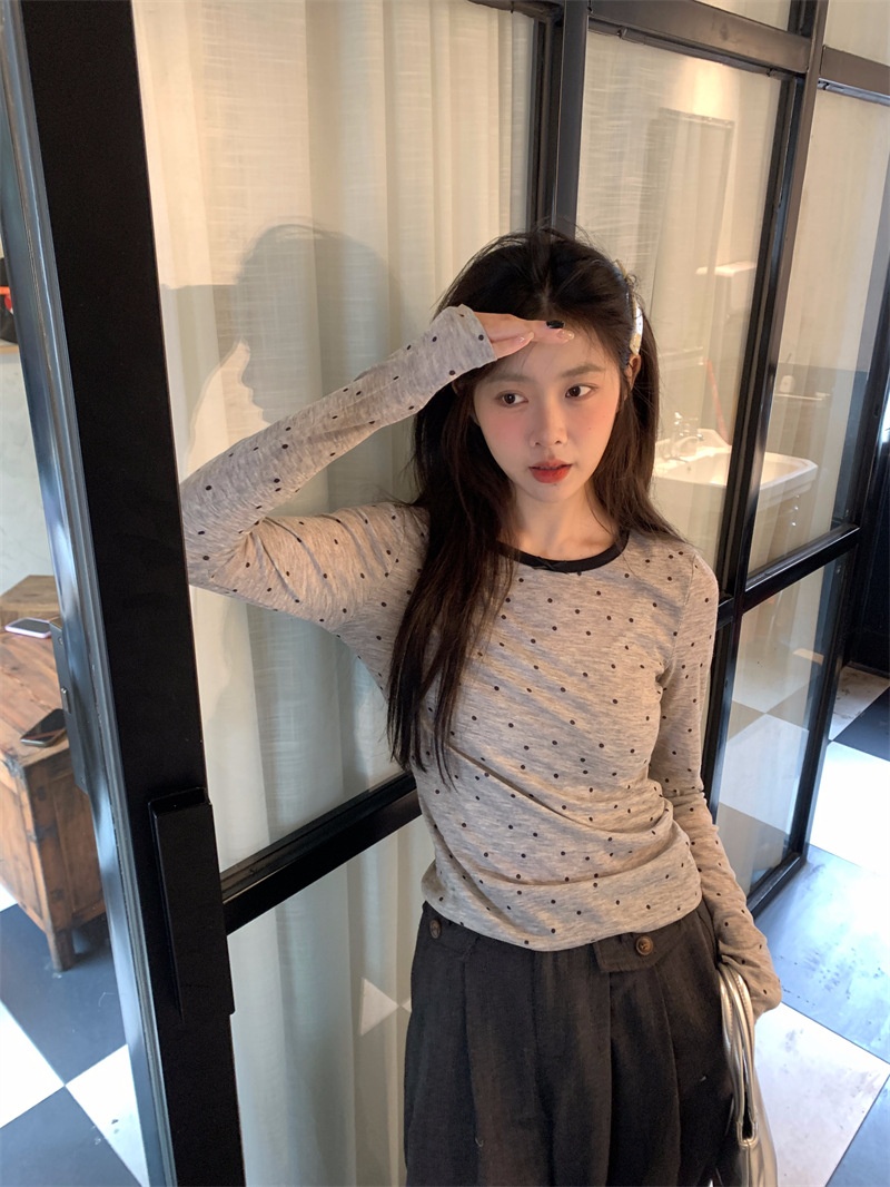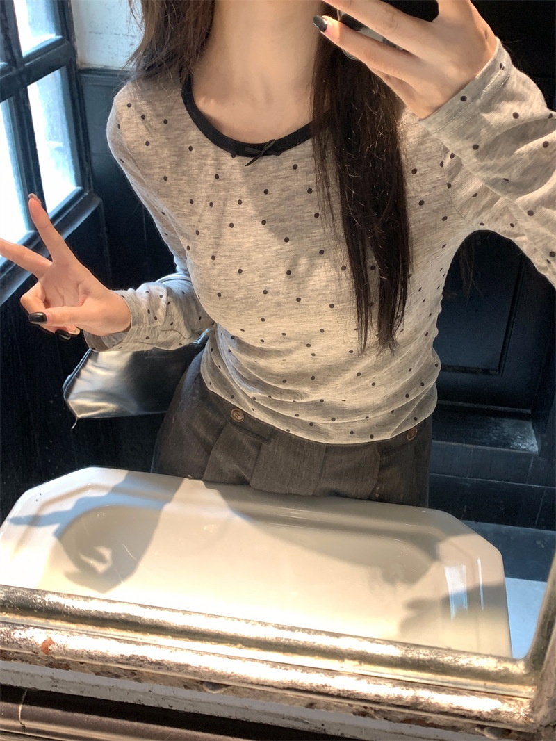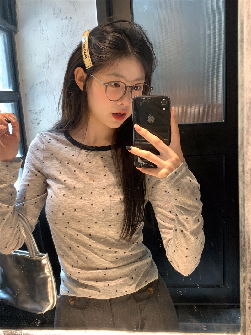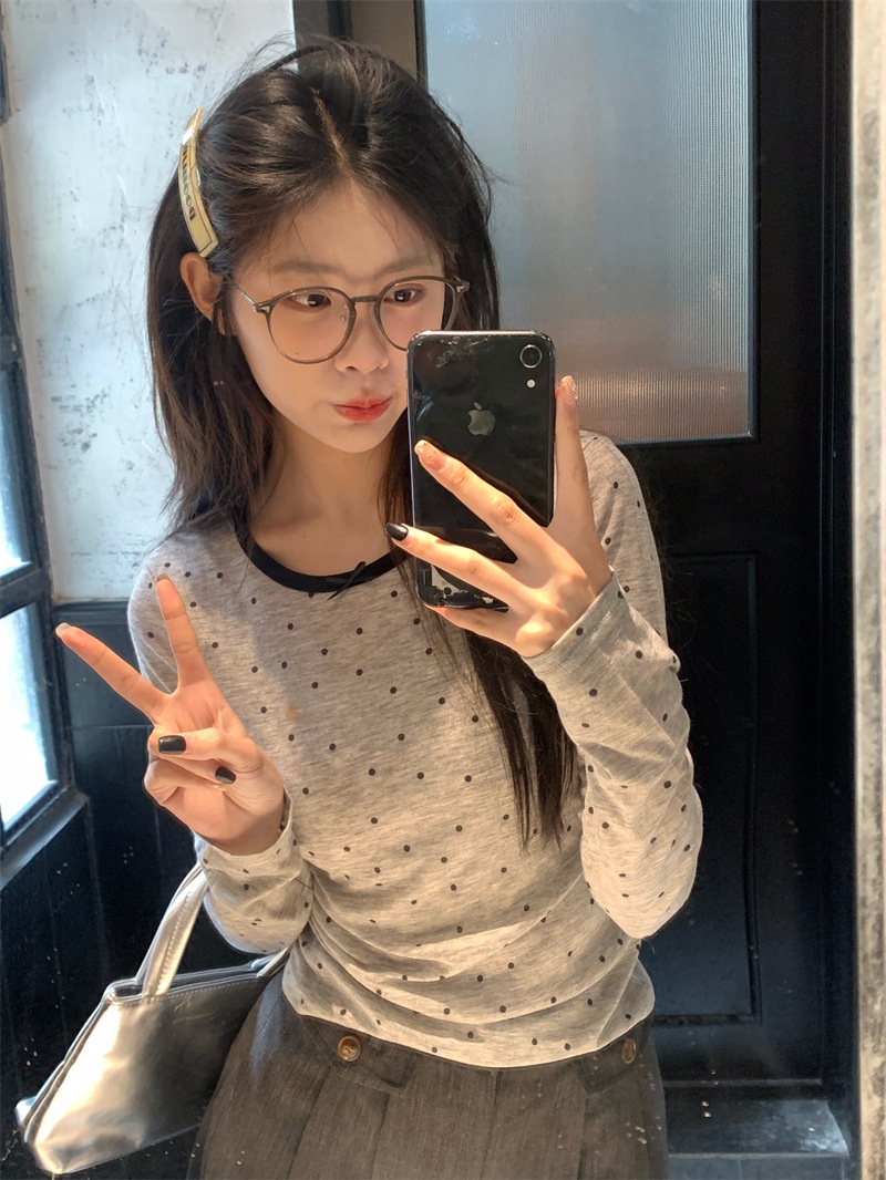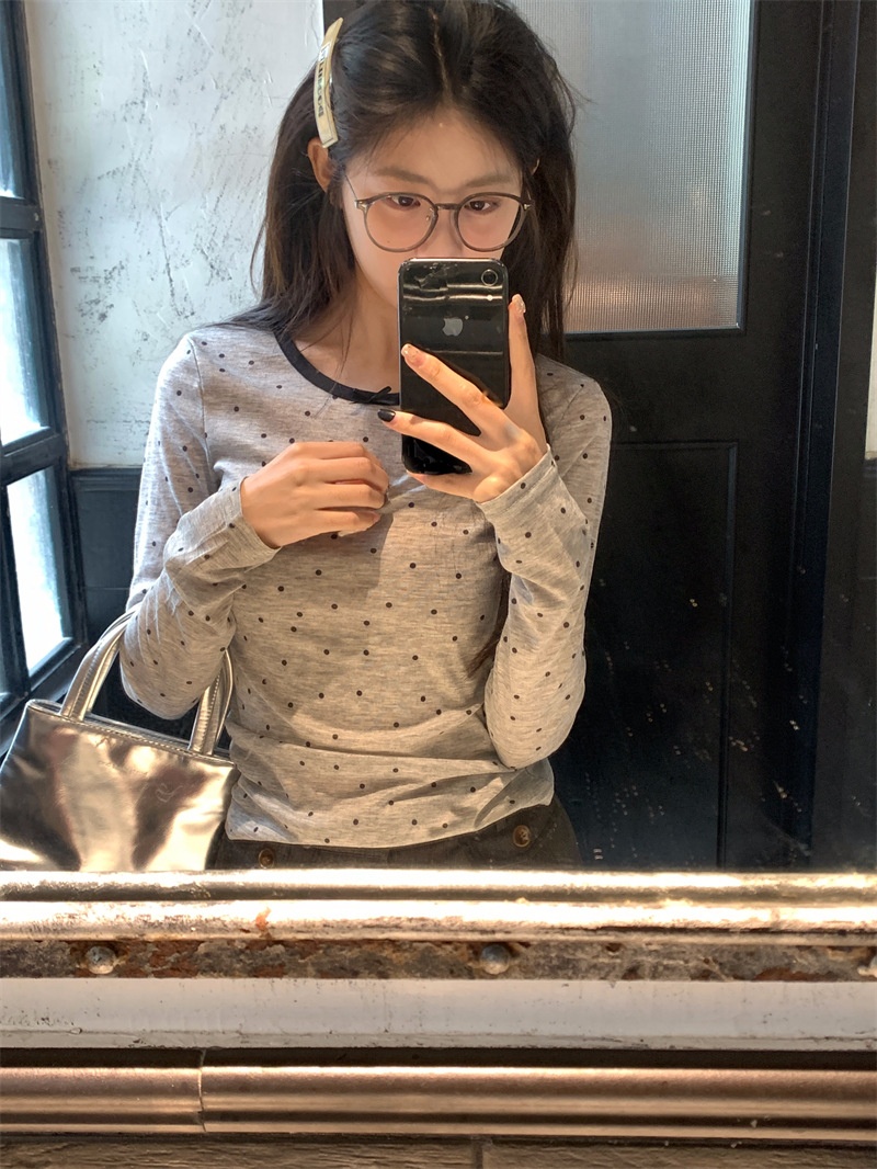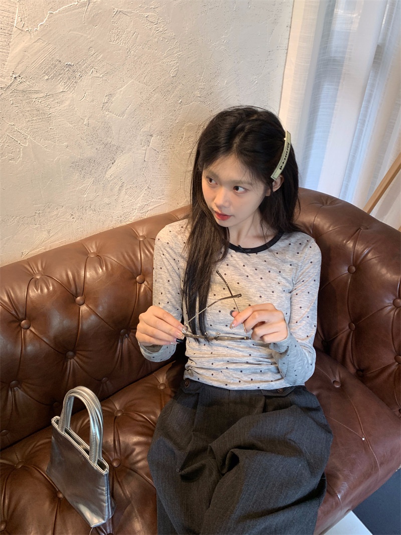 设计感撞色长袖T恤女2025秋季新款修身显瘦百搭学生打底圆领上衣