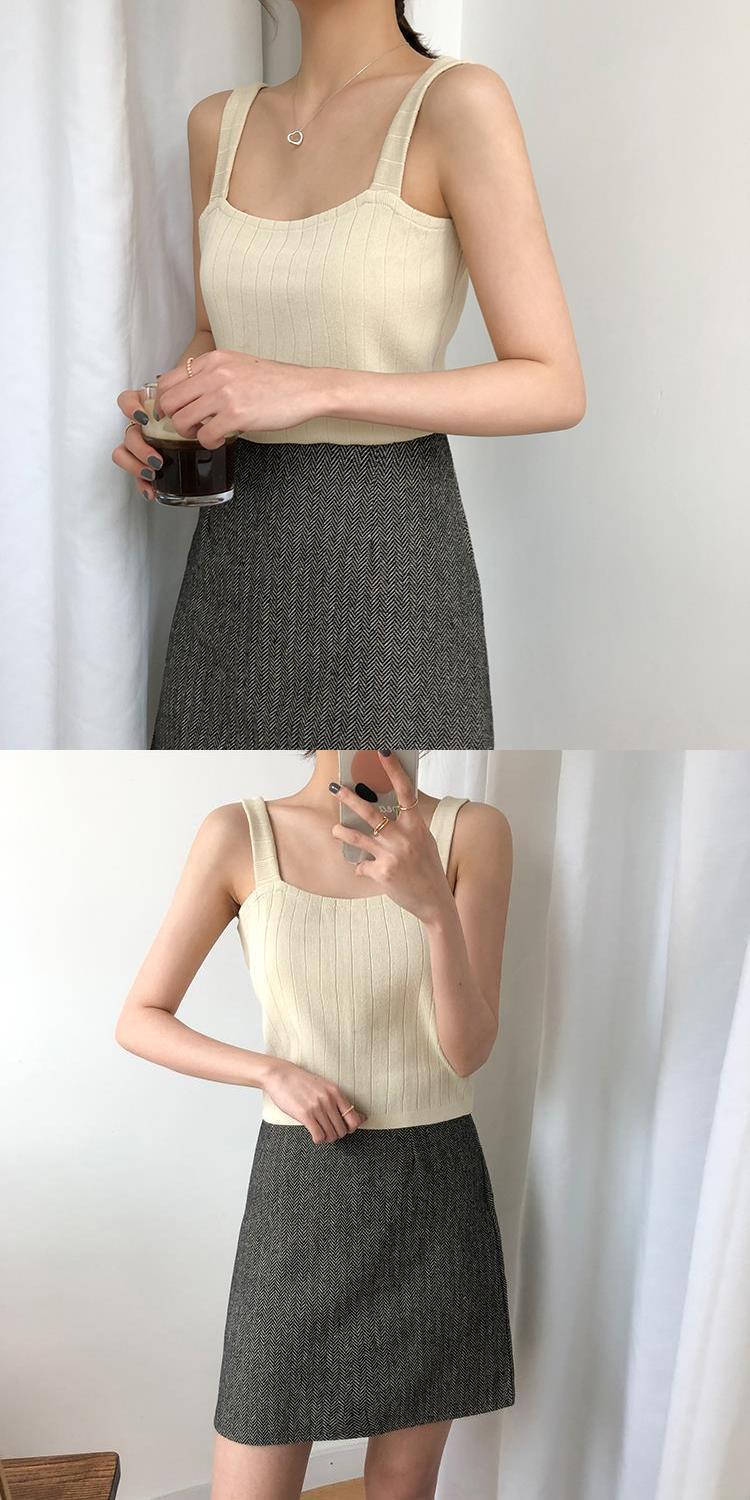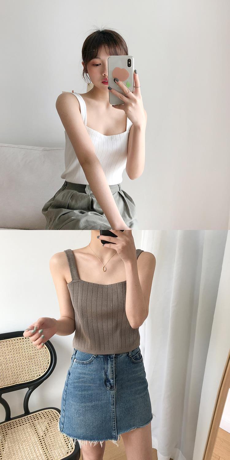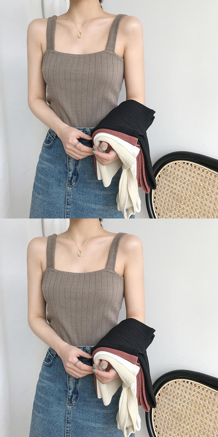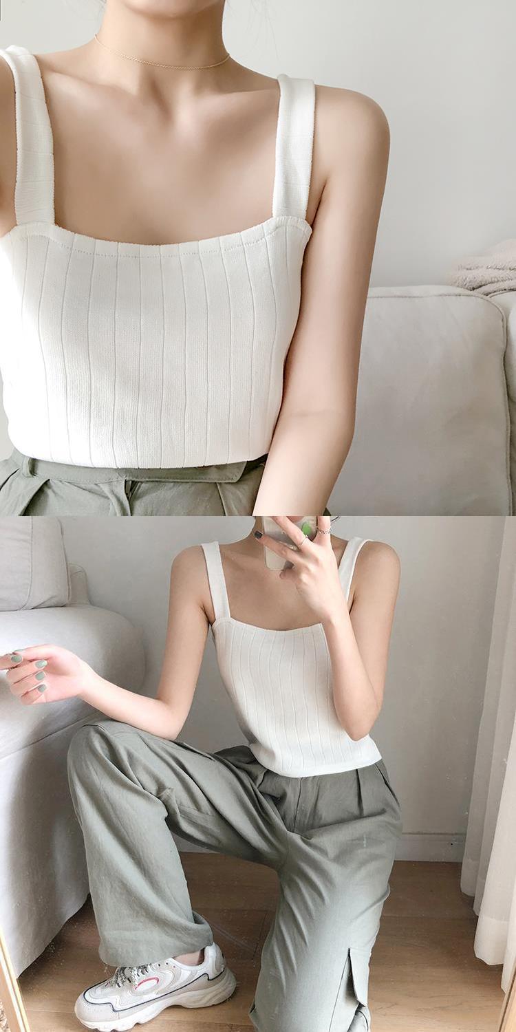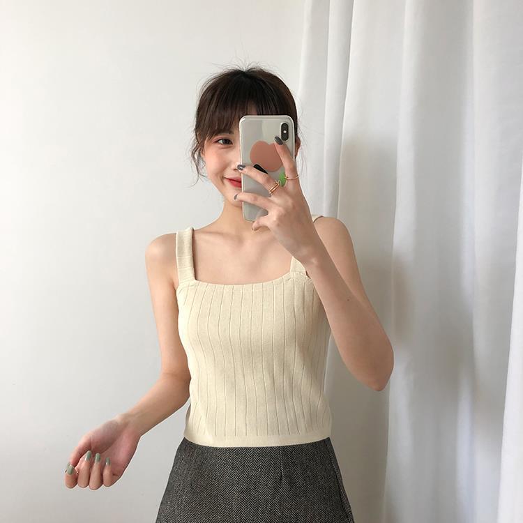 竖坑冰丝针织吊带女夏内搭打底短款平口宽松韩版无袖背心女夏外穿