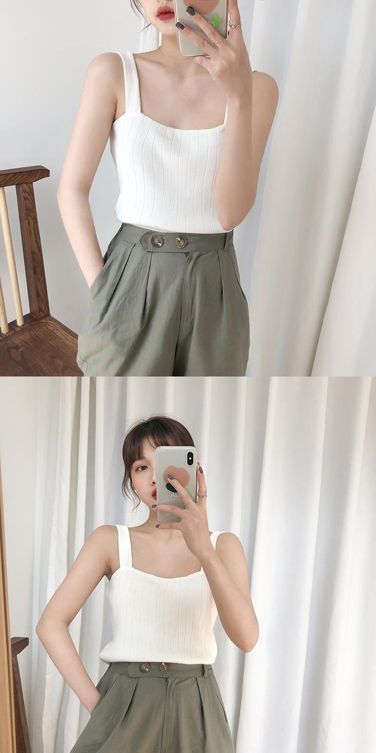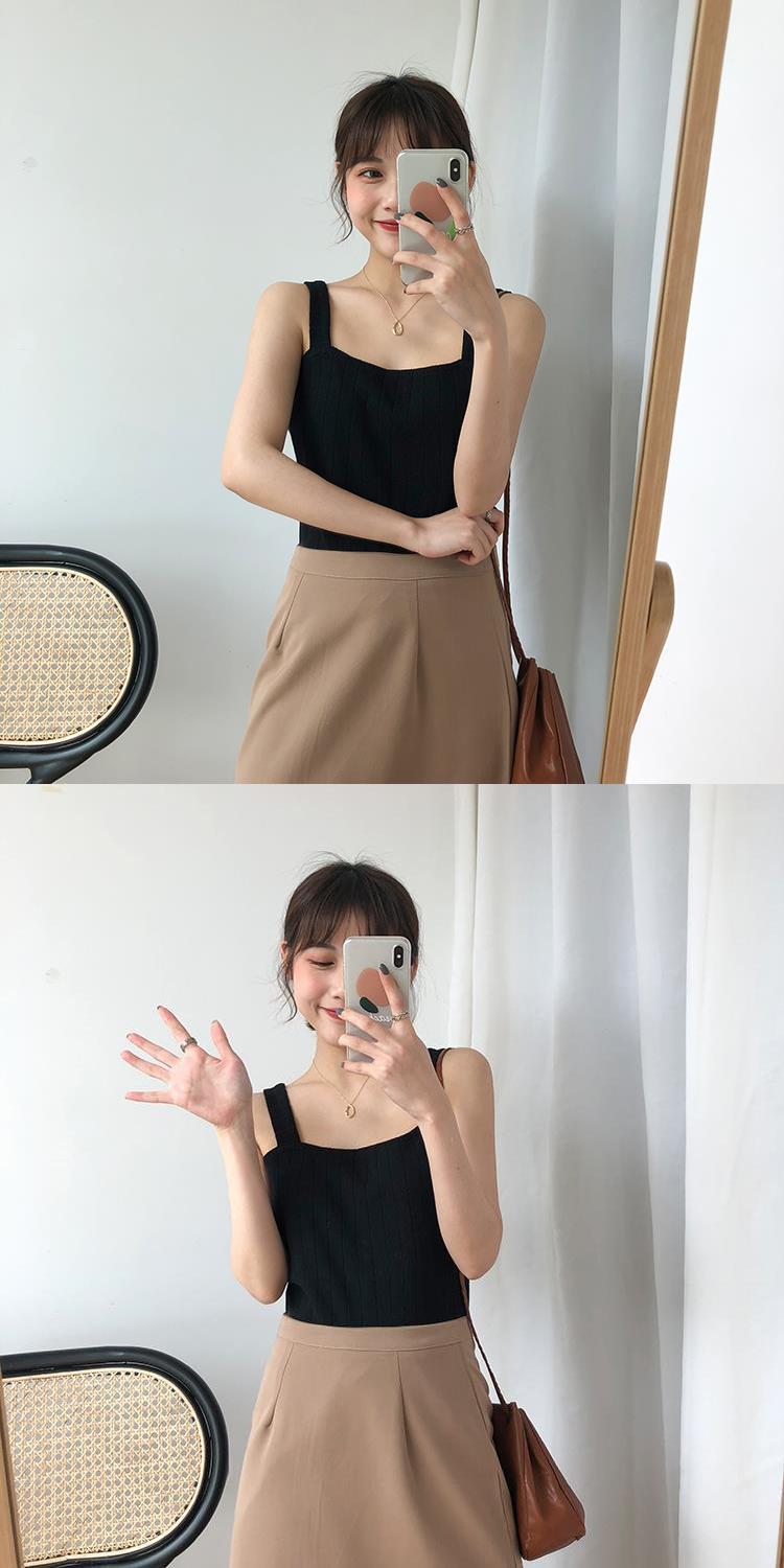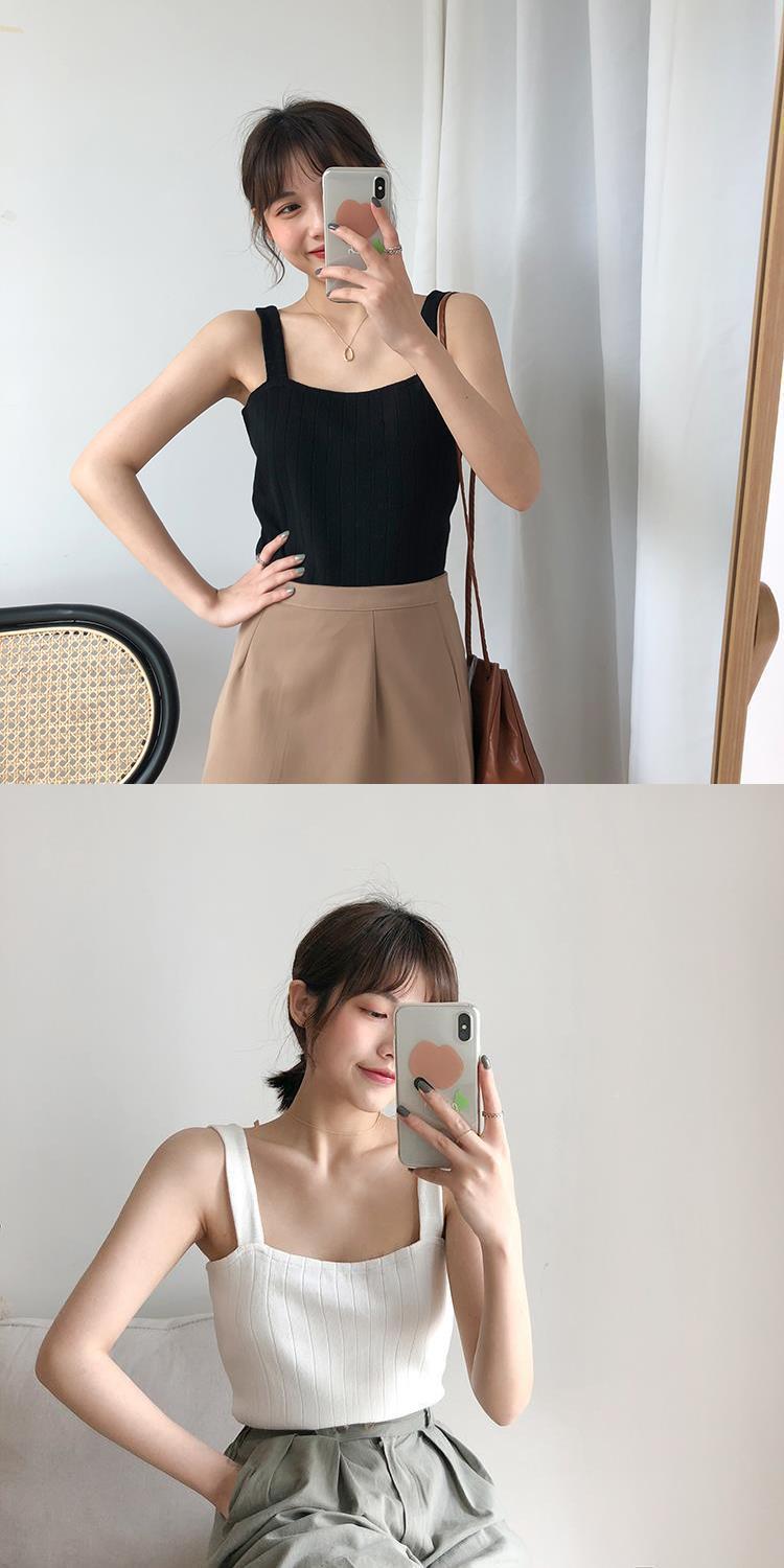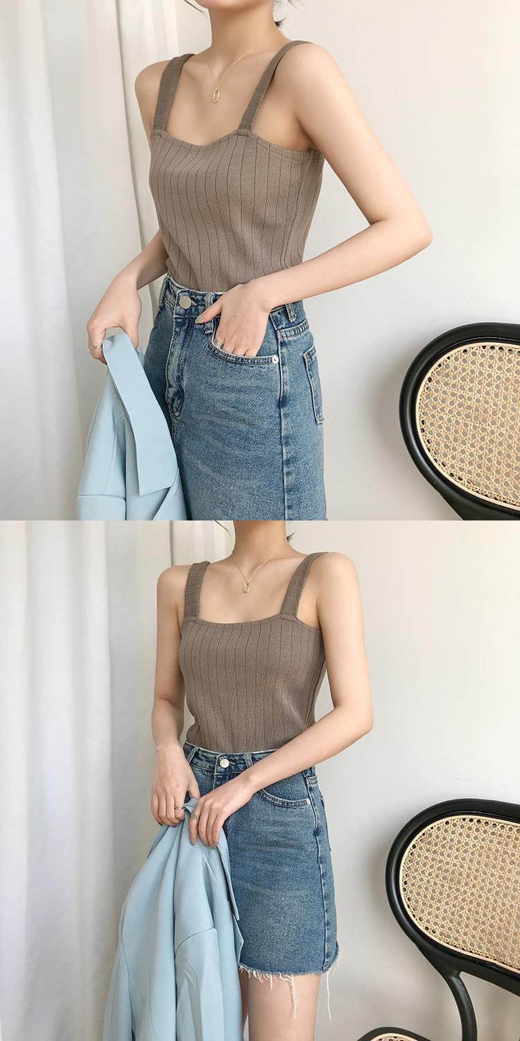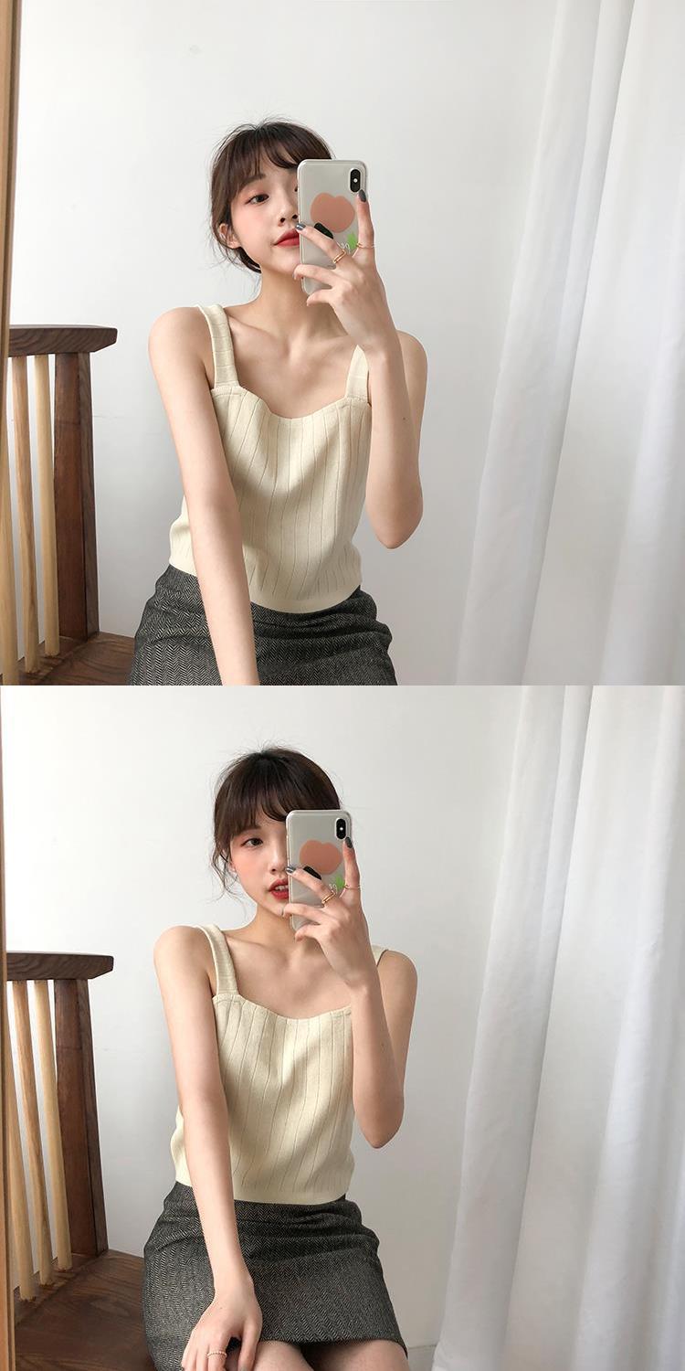 竖坑冰丝针织吊带女夏内搭打底短款平口宽松韩版无袖背心女夏外穿