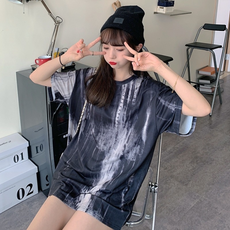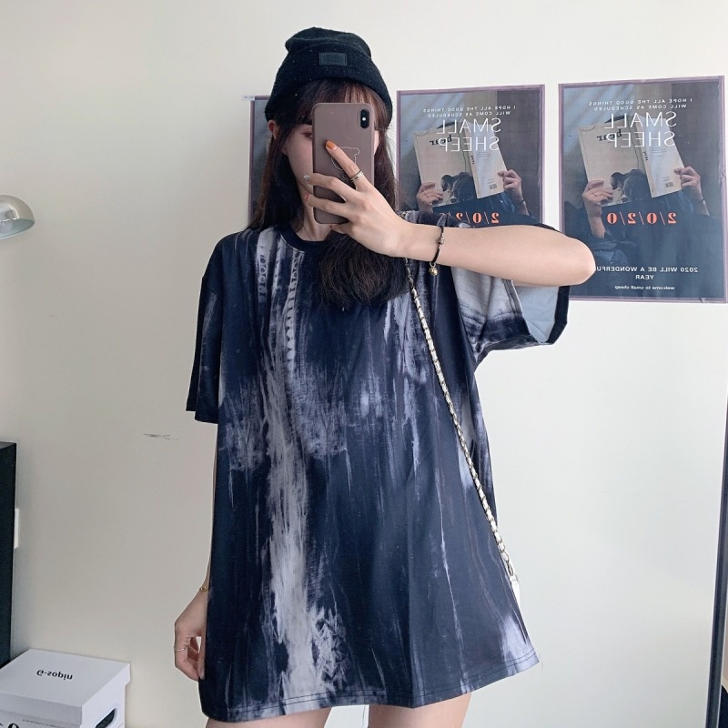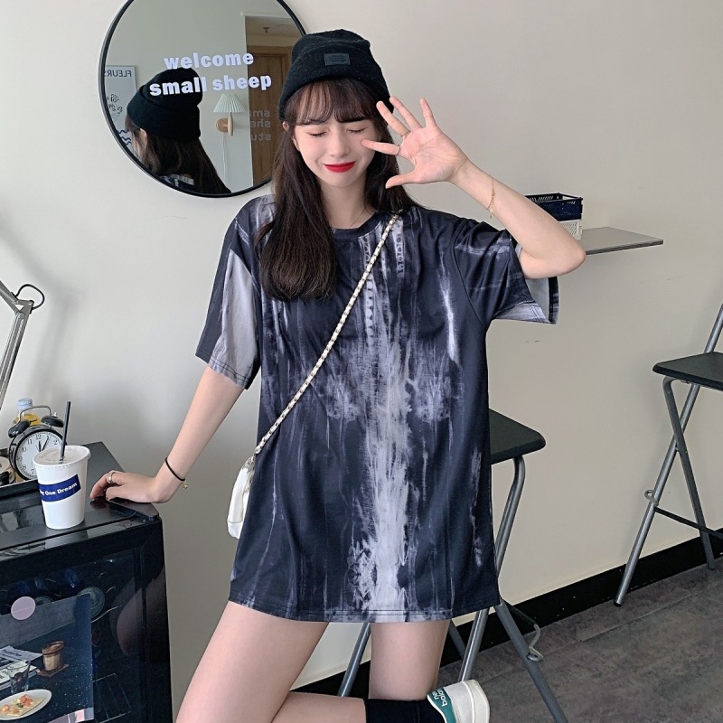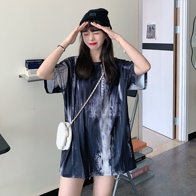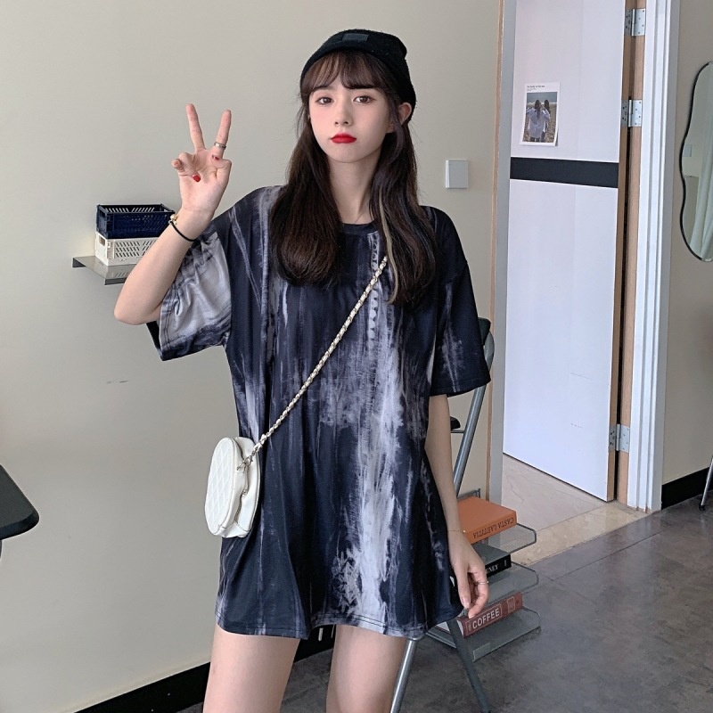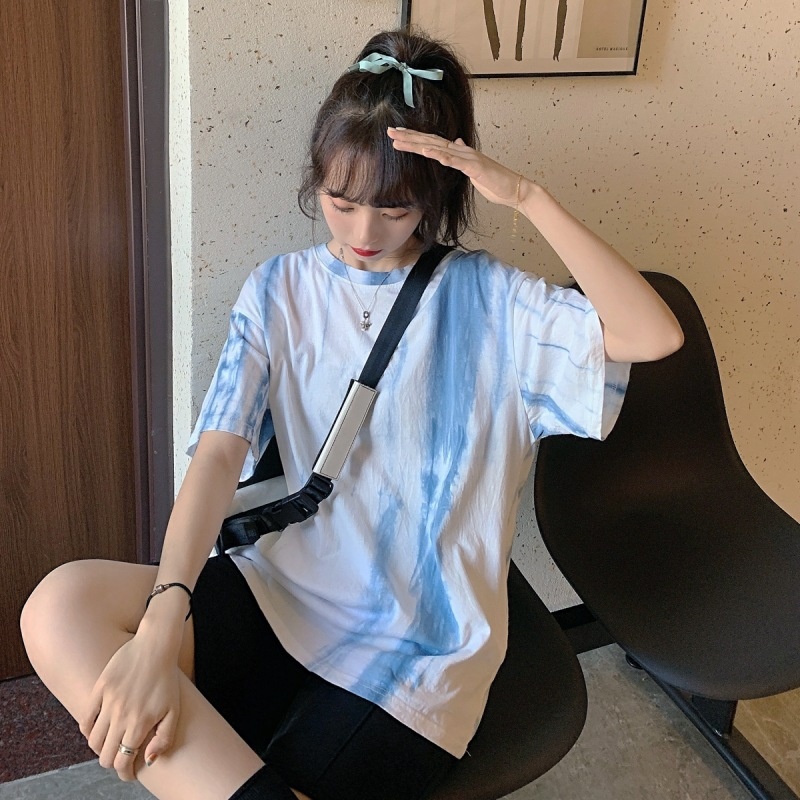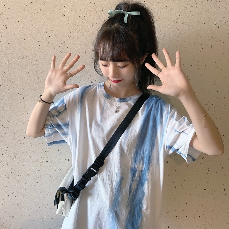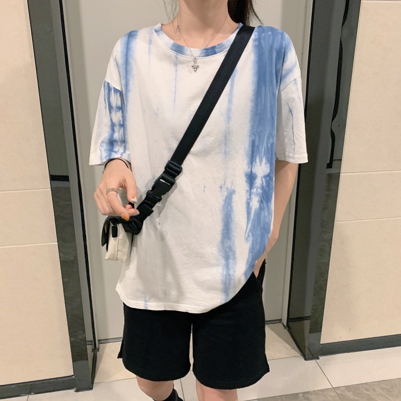 3443#闺蜜装夏季扎染短袖T恤女休闲宽松韩版上衣服潮