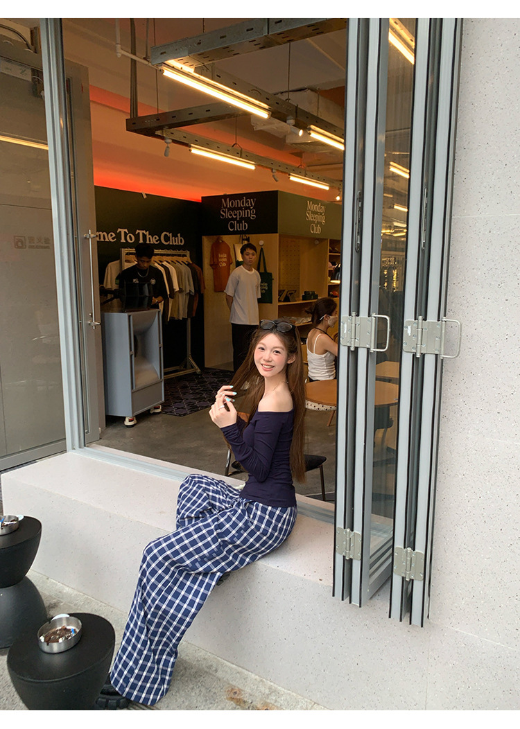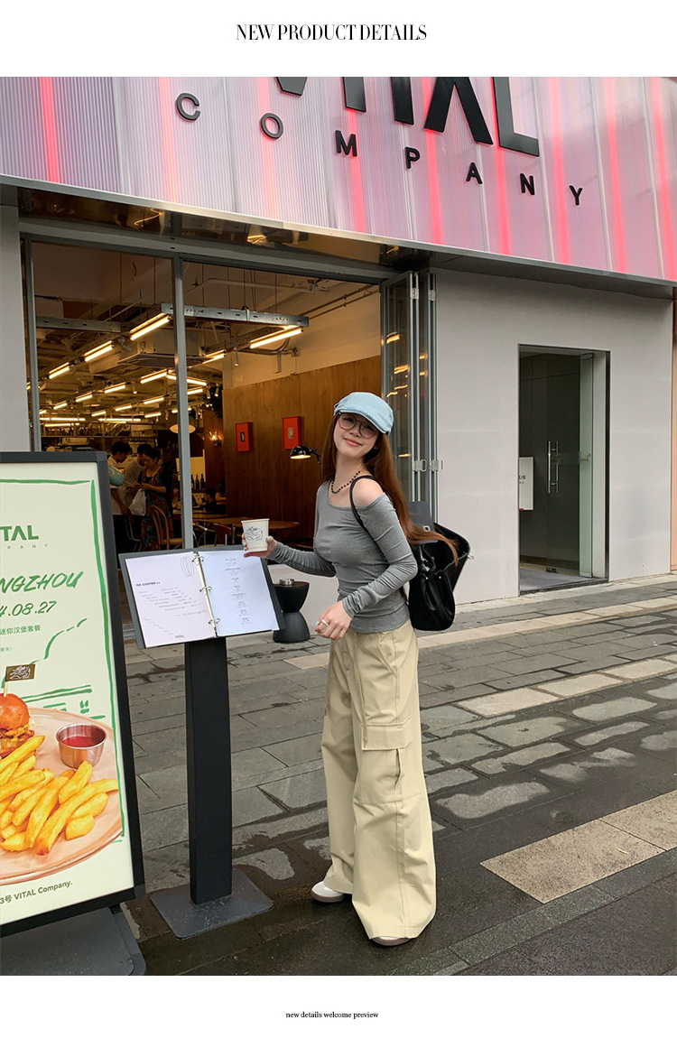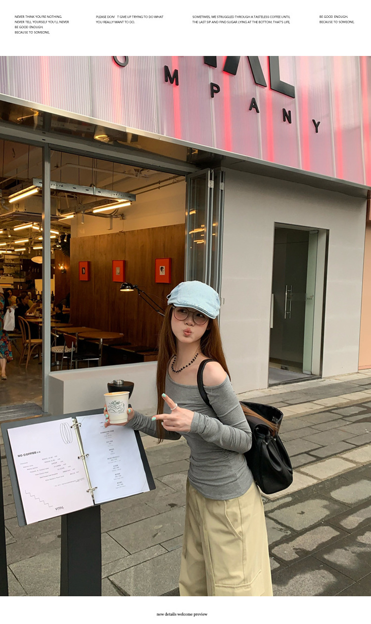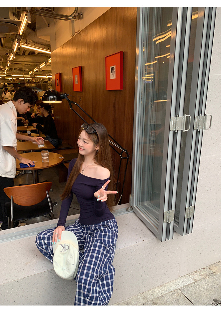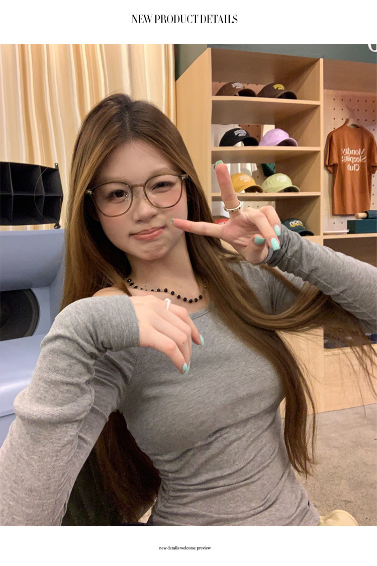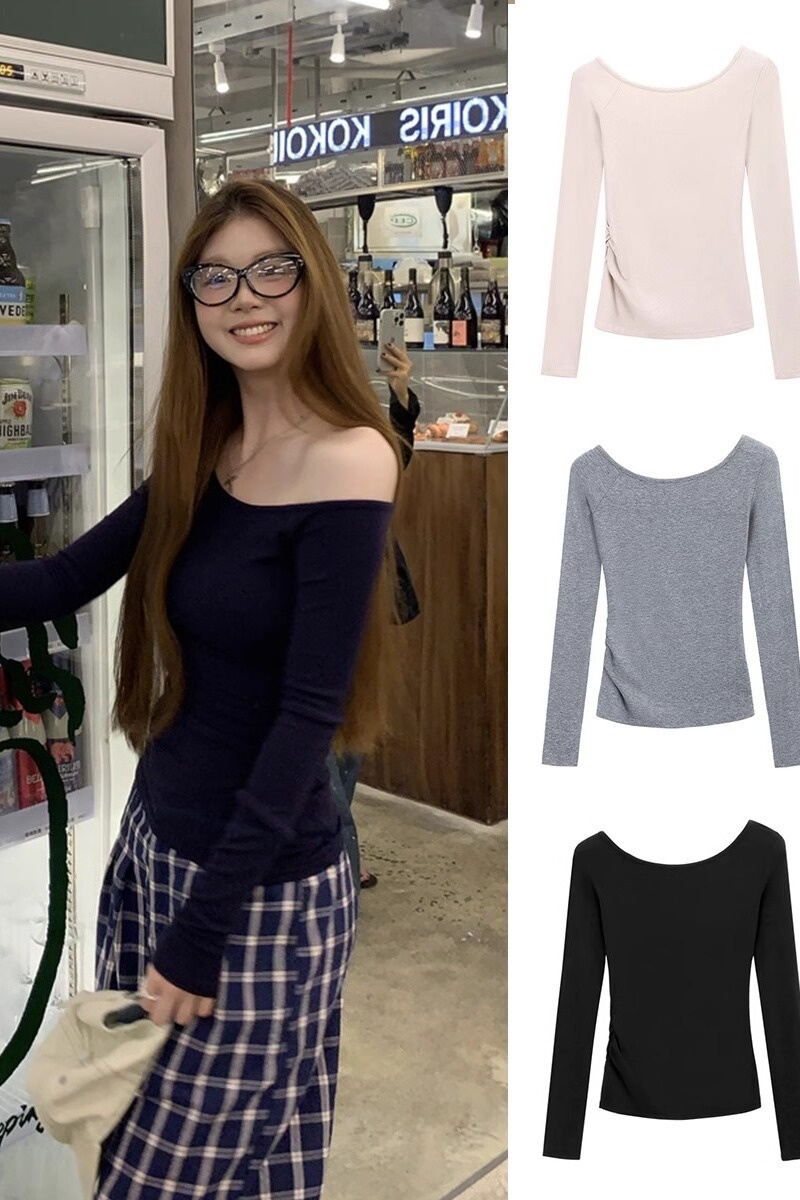 纯欲辣妹修身显瘦露肩长袖T恤女装早秋小众设计感百搭打底衫上衣