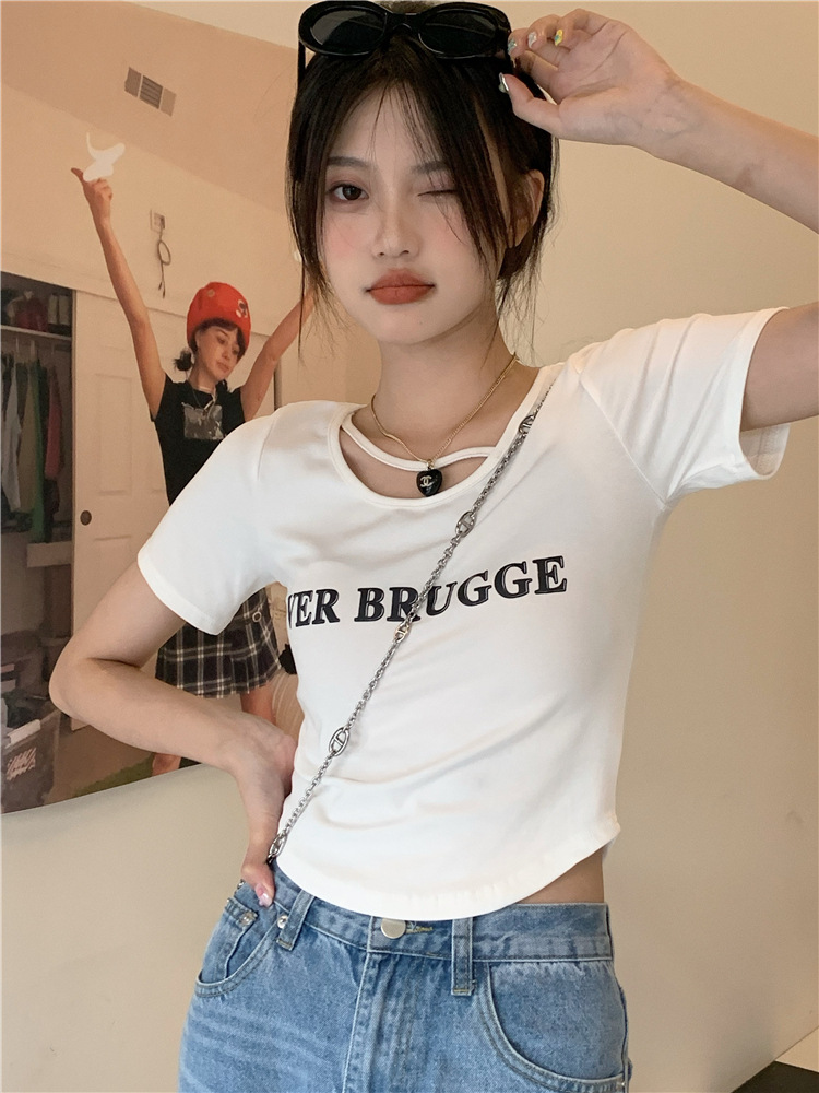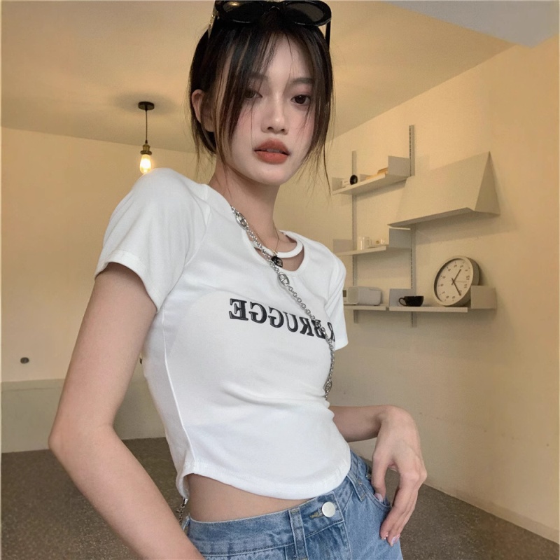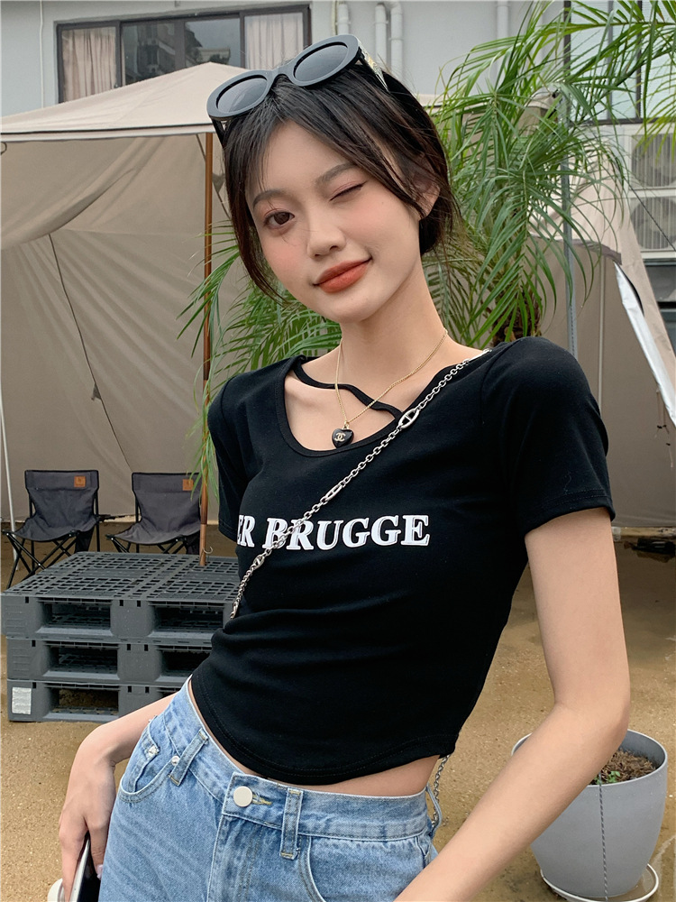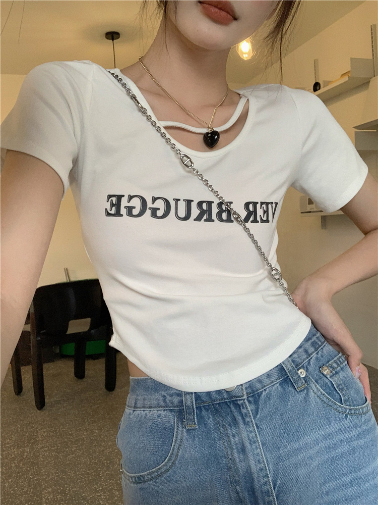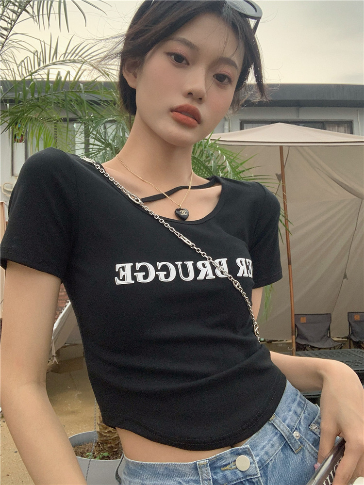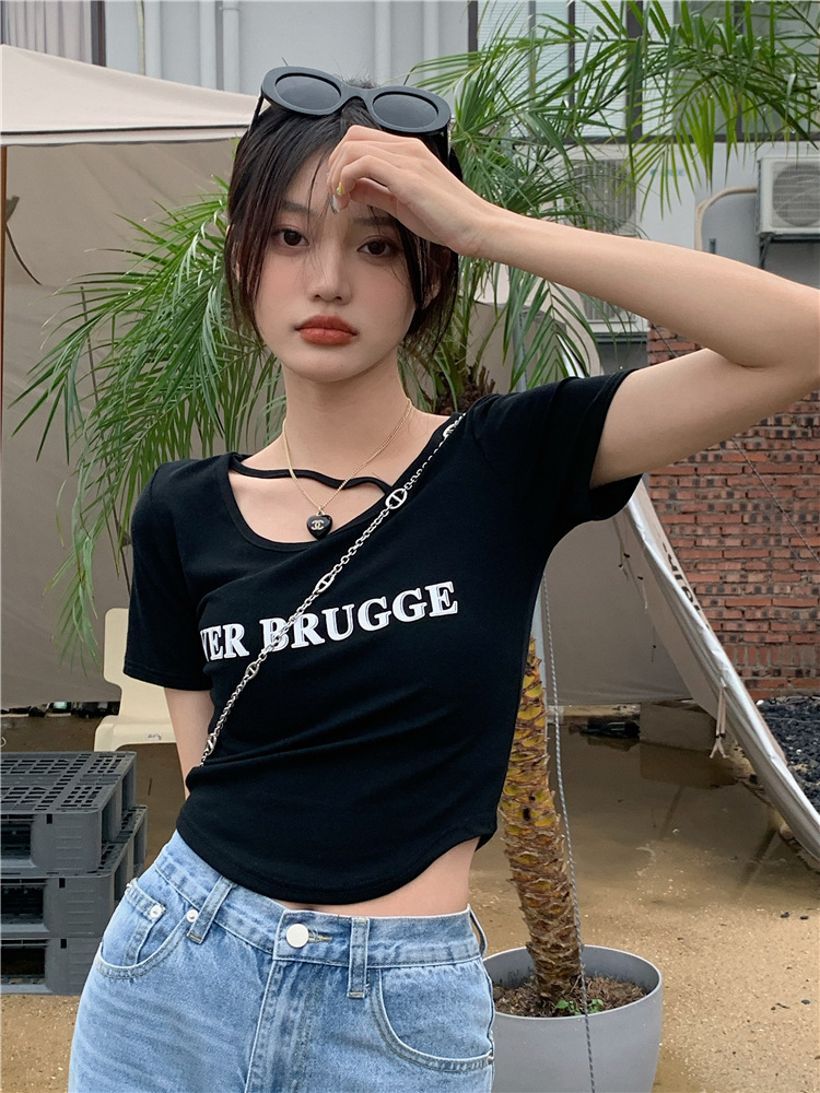辣妹不规则T恤女夏季2025新款修身显瘦ins潮短款短袖学生上衣ins
