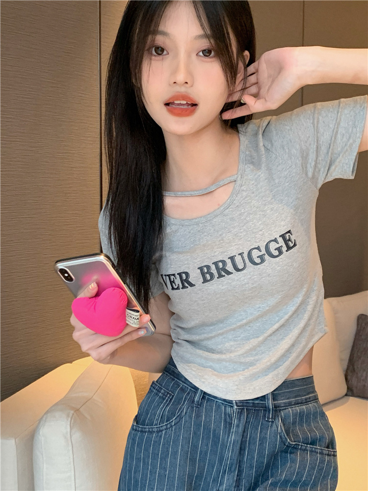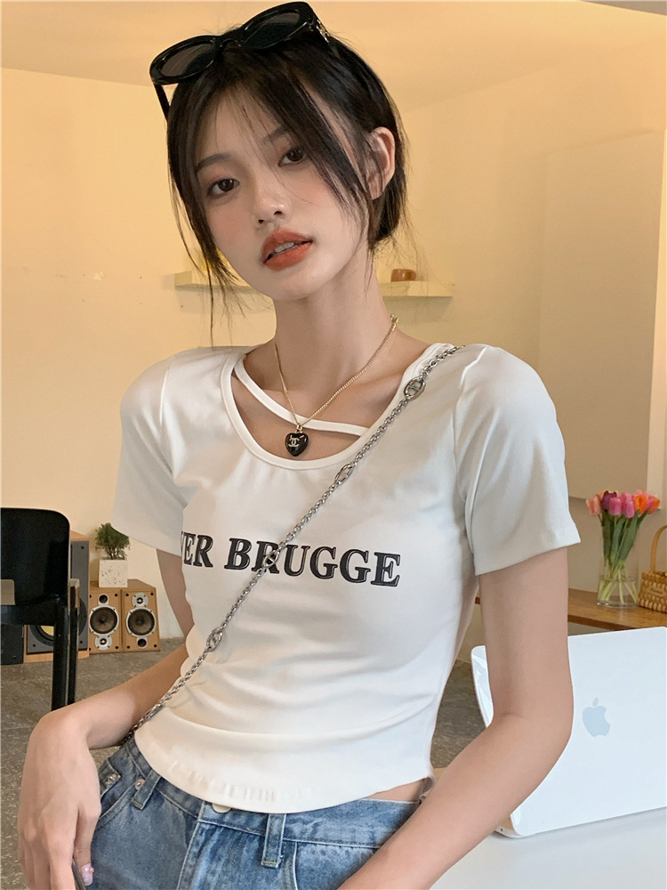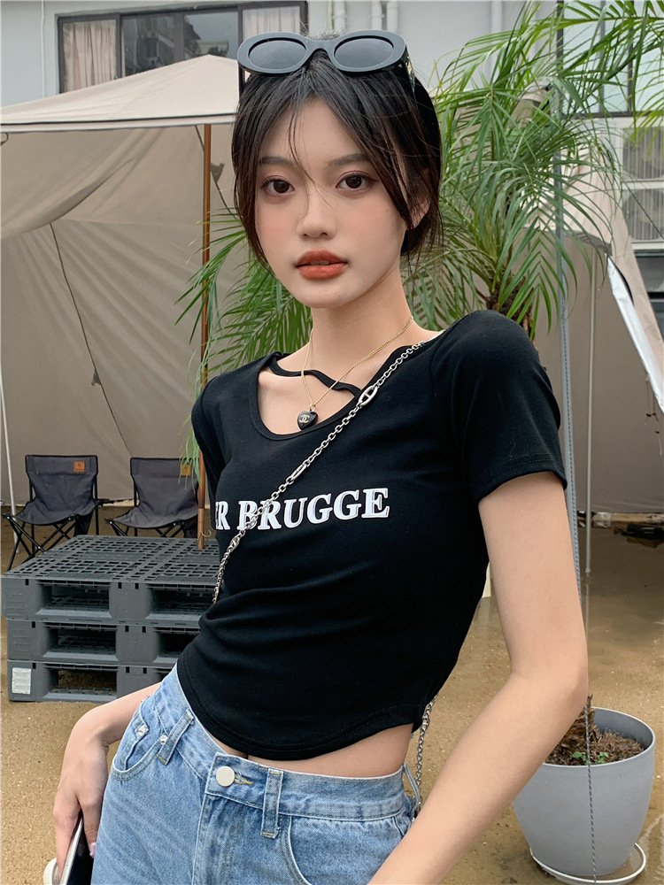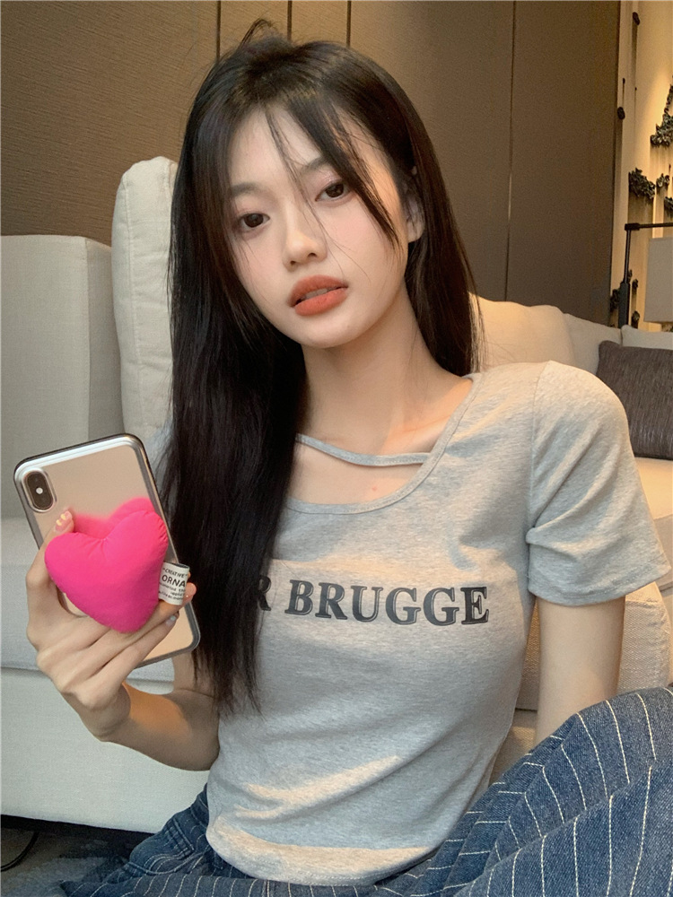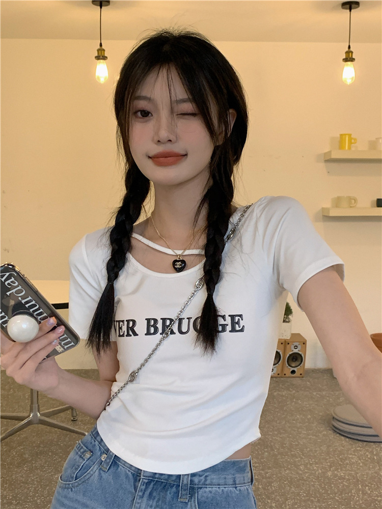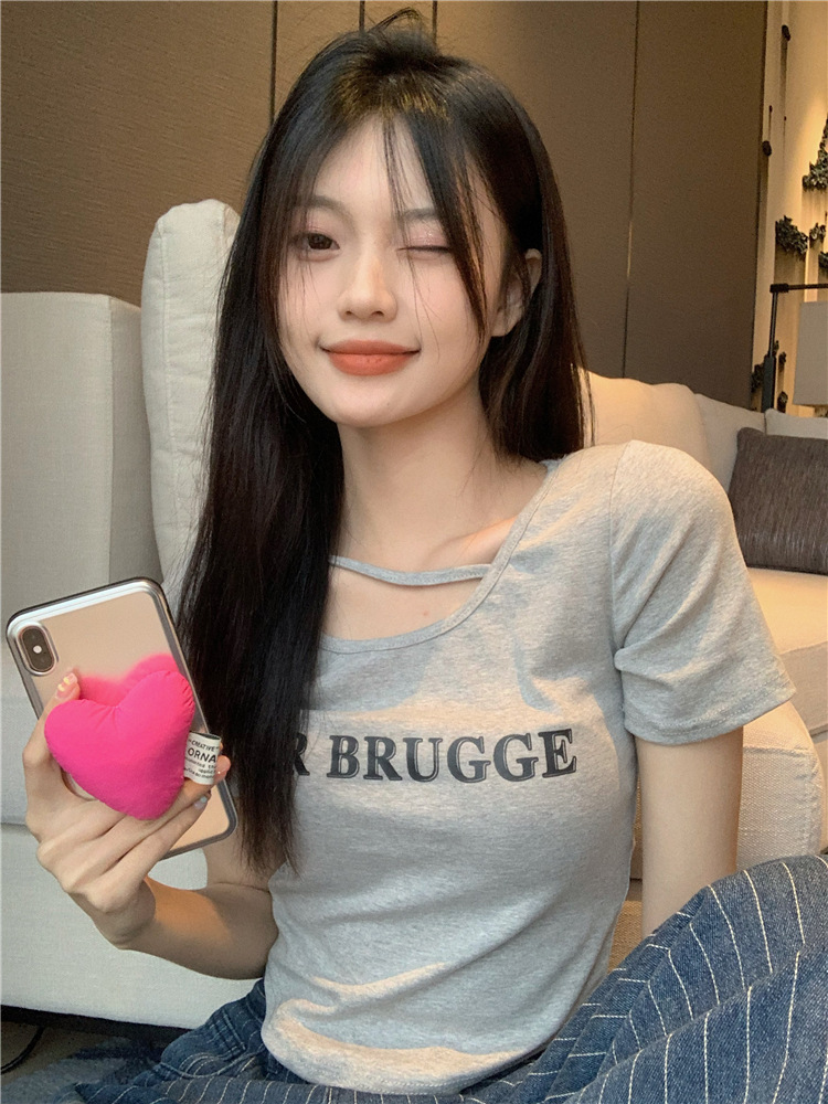 辣妹不规则T恤女夏季2025新款修身显瘦ins潮短款短袖学生上衣ins