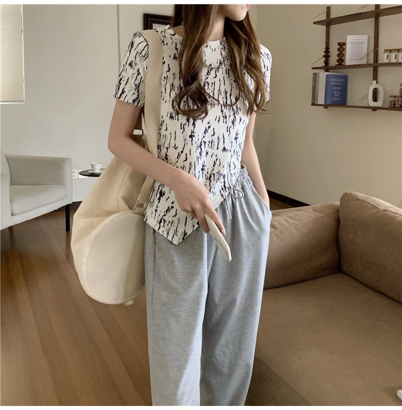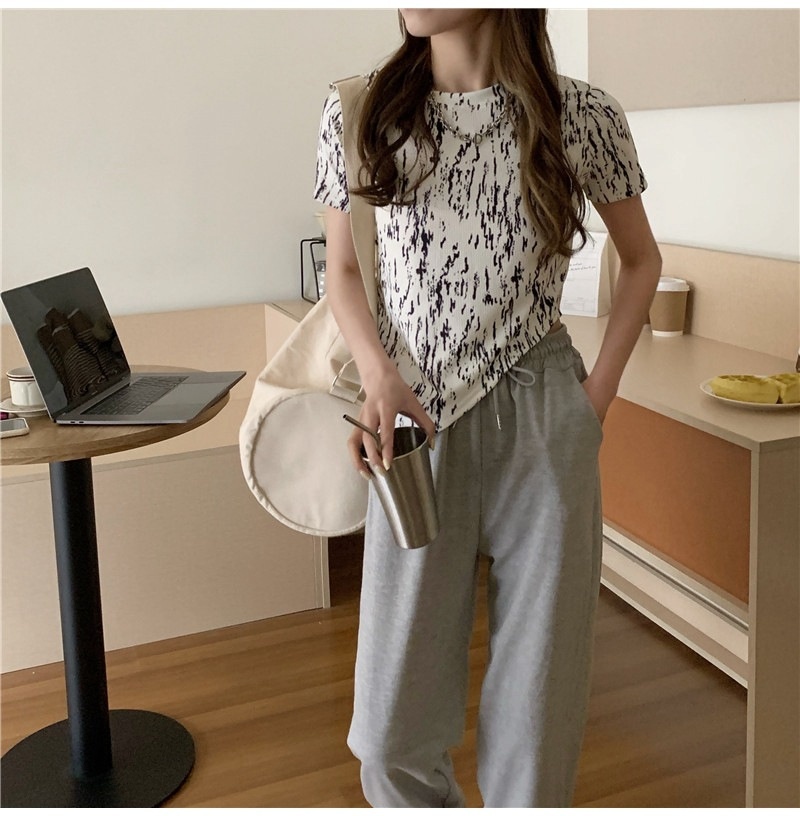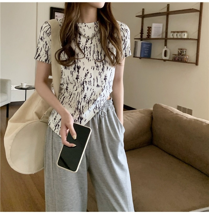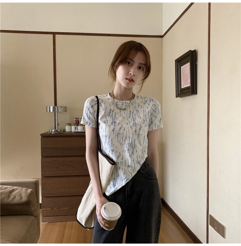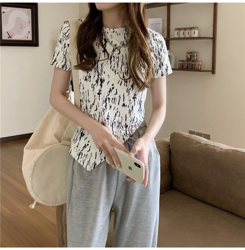 夏季2025年新款韩版修身显瘦扎染上衣不规则斜叉短袖T恤女装ins潮