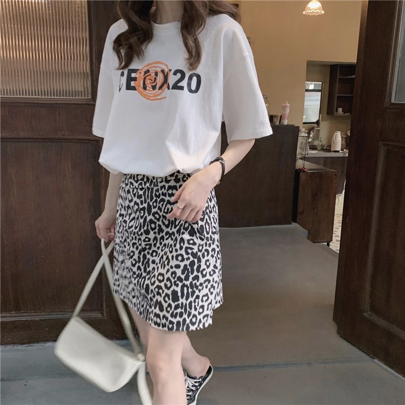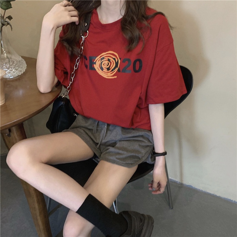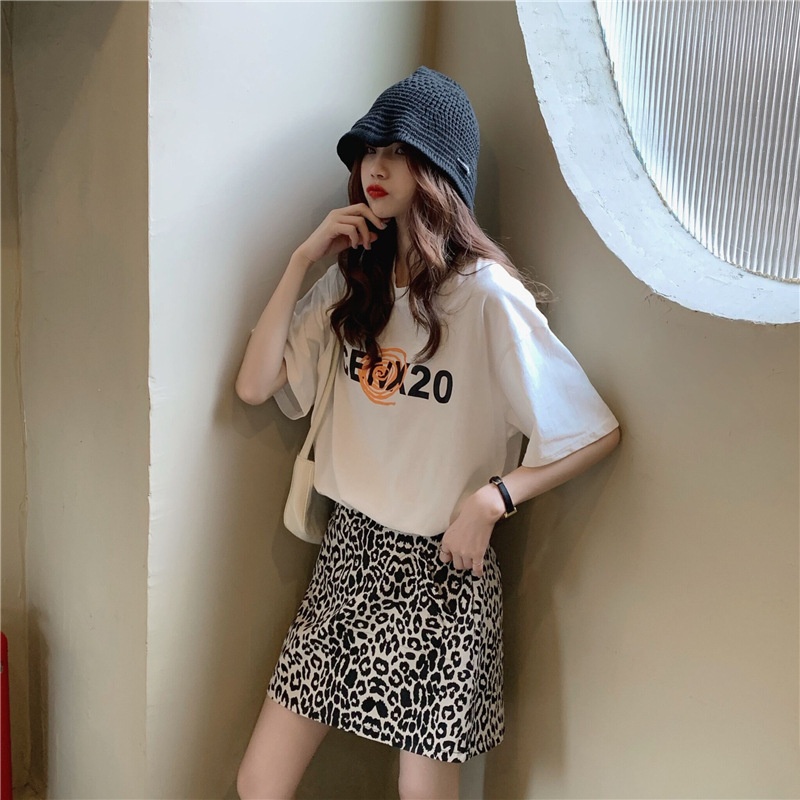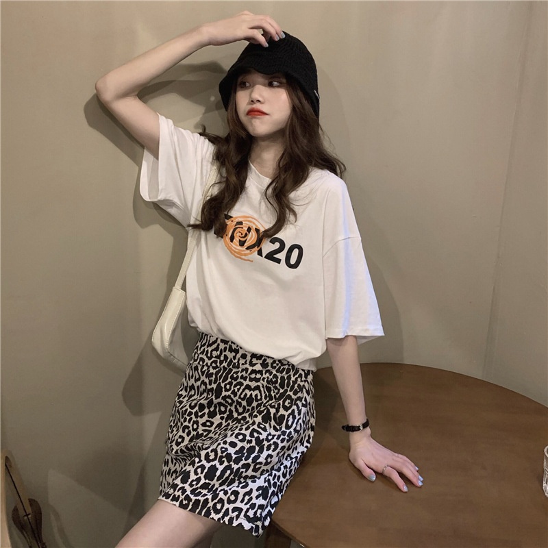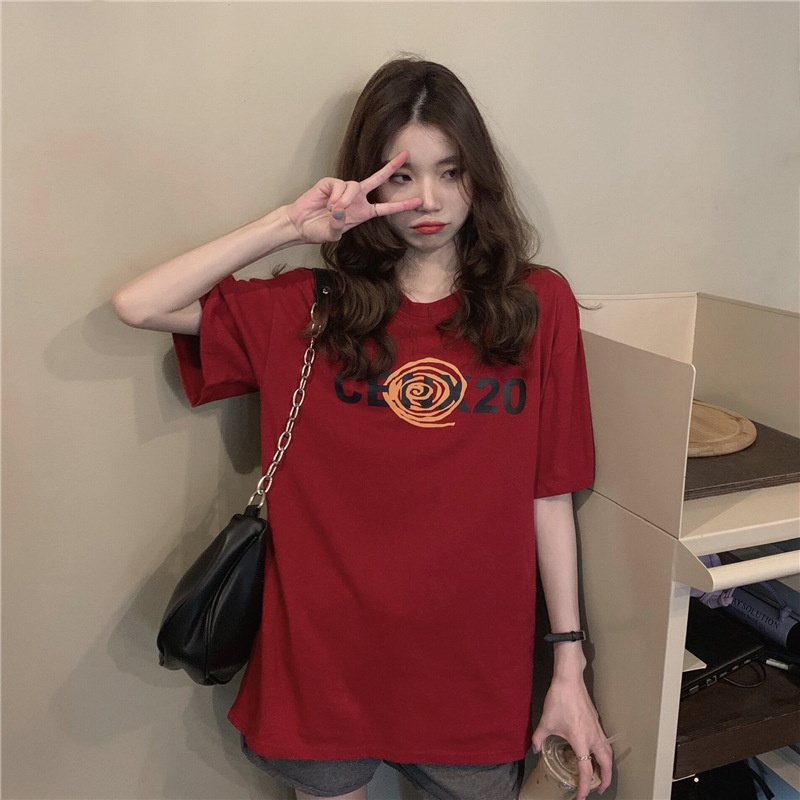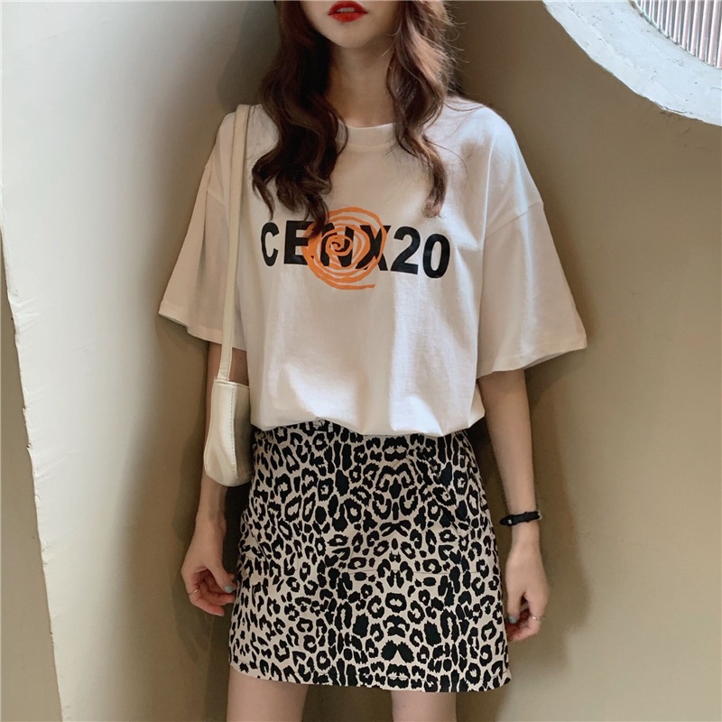 2025夏季韩版新款宽松圆领字母印花中长款休闲百搭短袖T恤女上衣