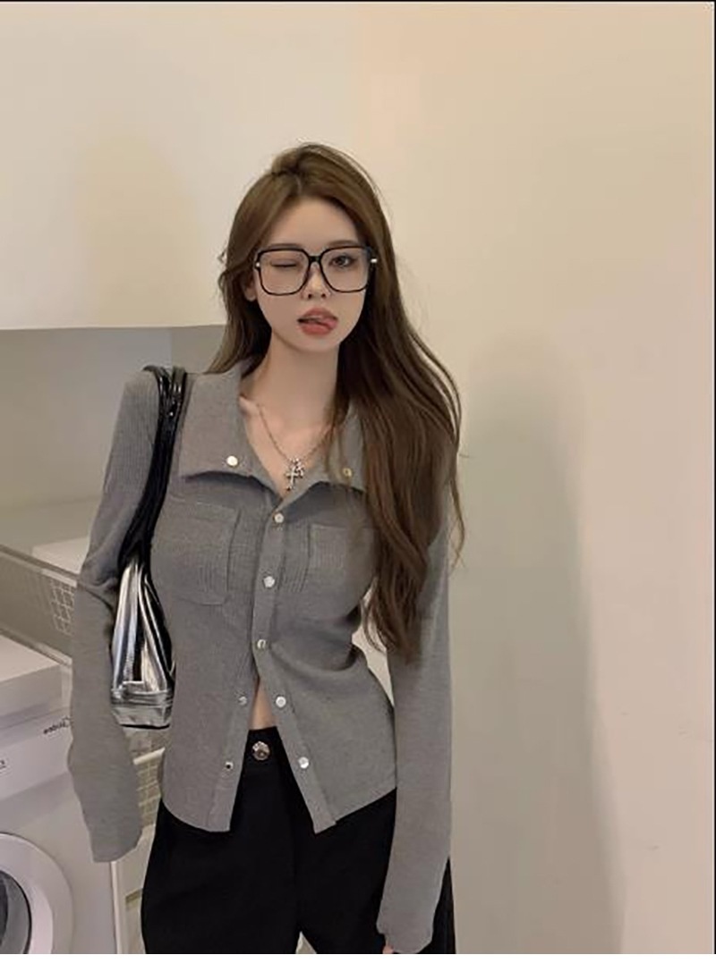 纯欲polo领长袖T恤女秋季2025新款设计感辣妹修身内搭打底衫上衣