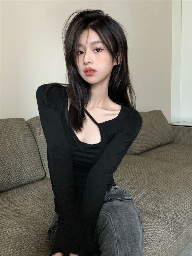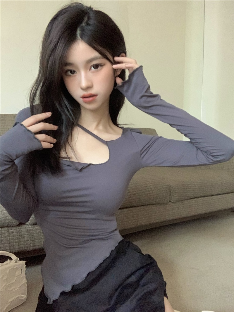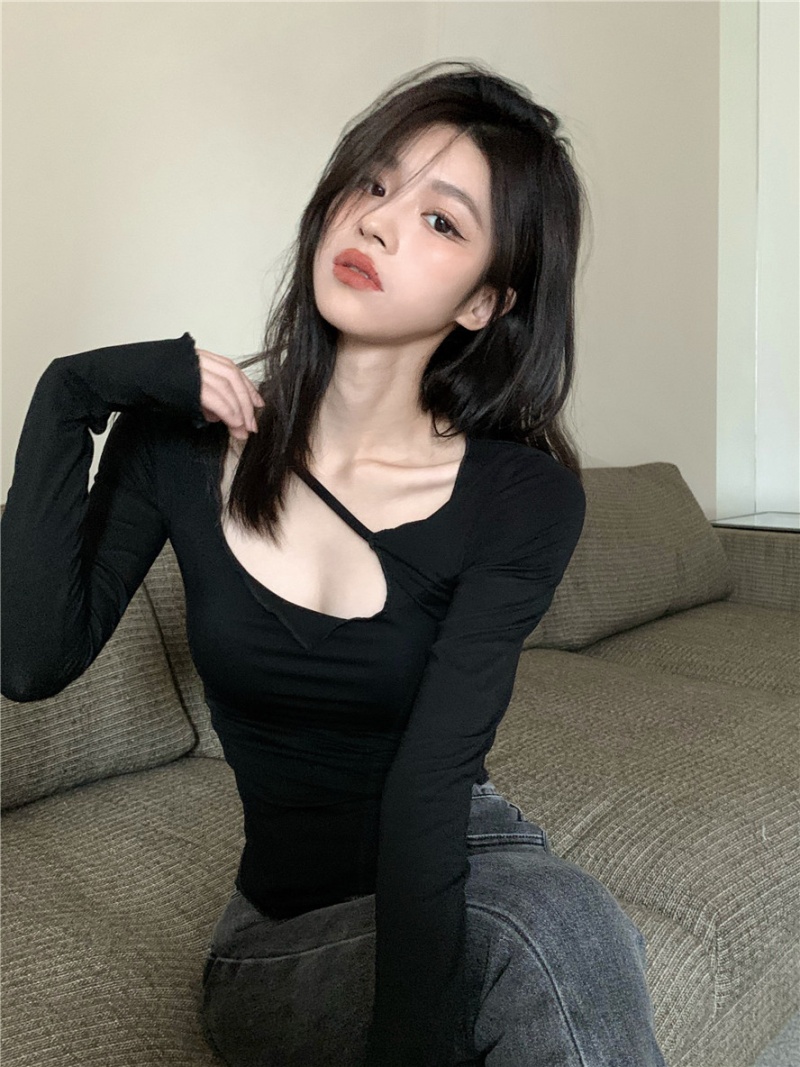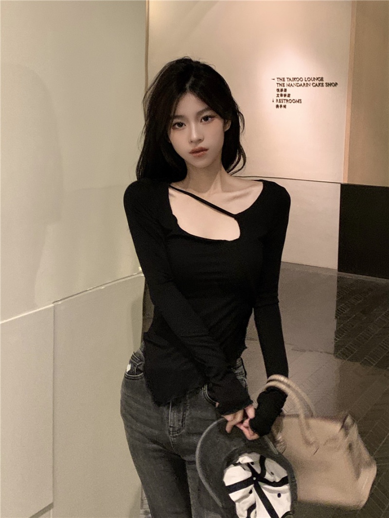 T恤女不规则修身长袖内搭打底衫2025秋季新款设计感女装学生上衣