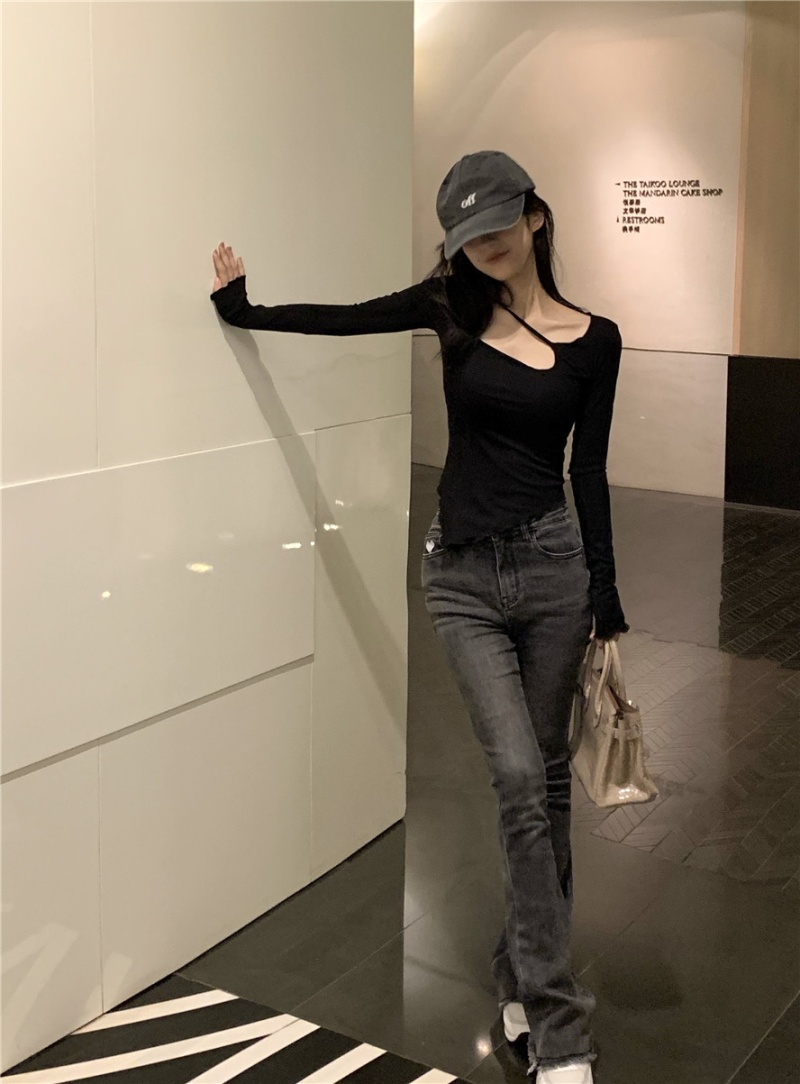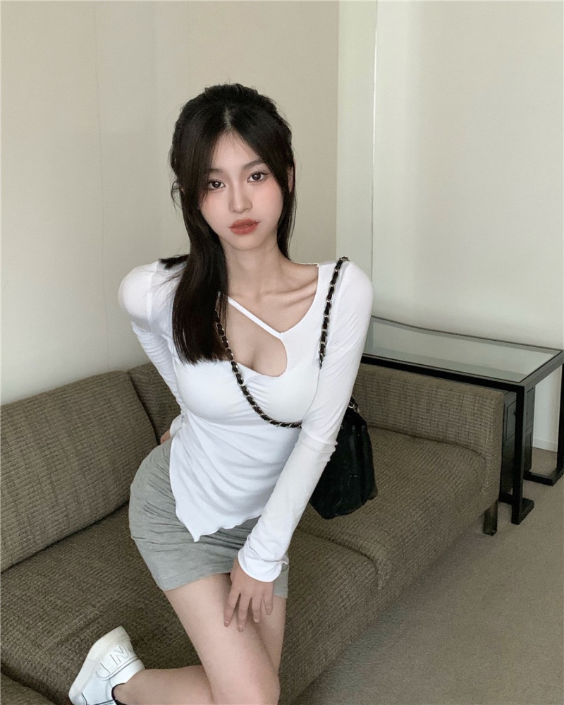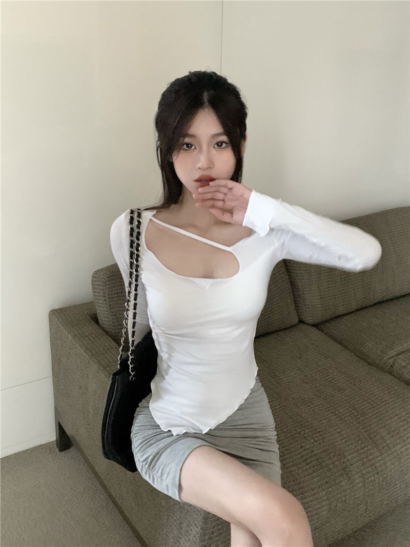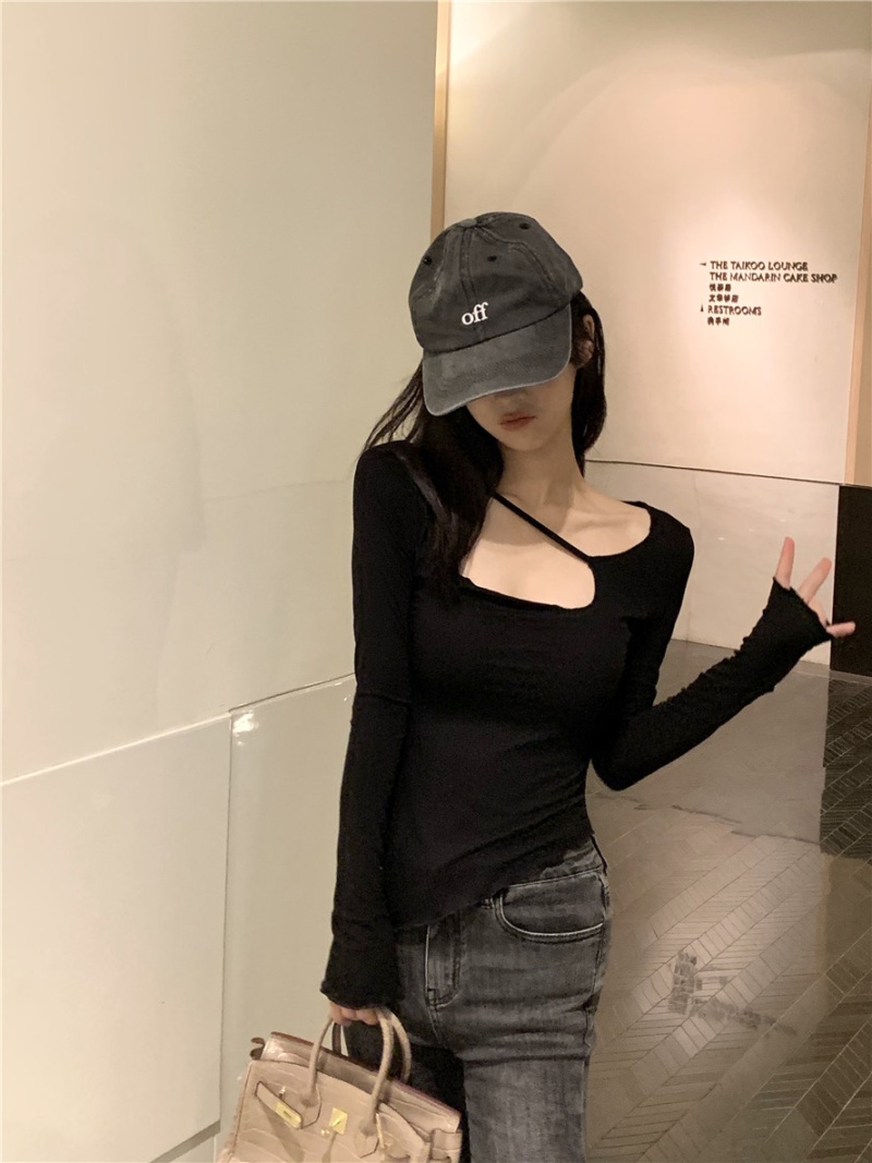 T恤女不规则修身长袖内搭打底衫2025秋季新款设计感女装学生上衣