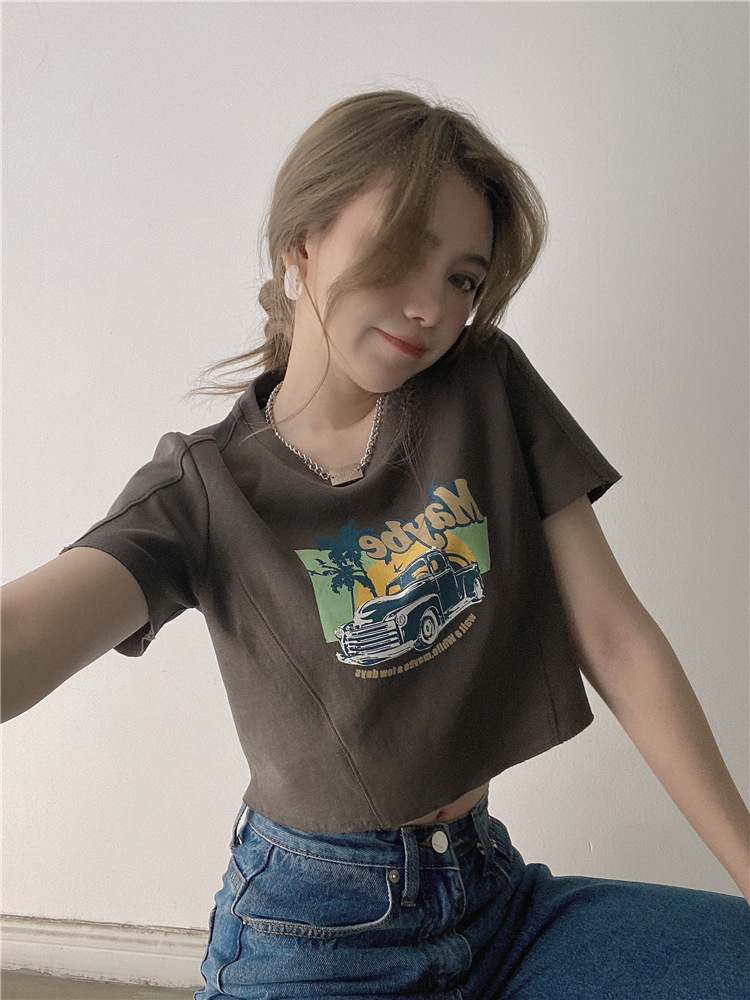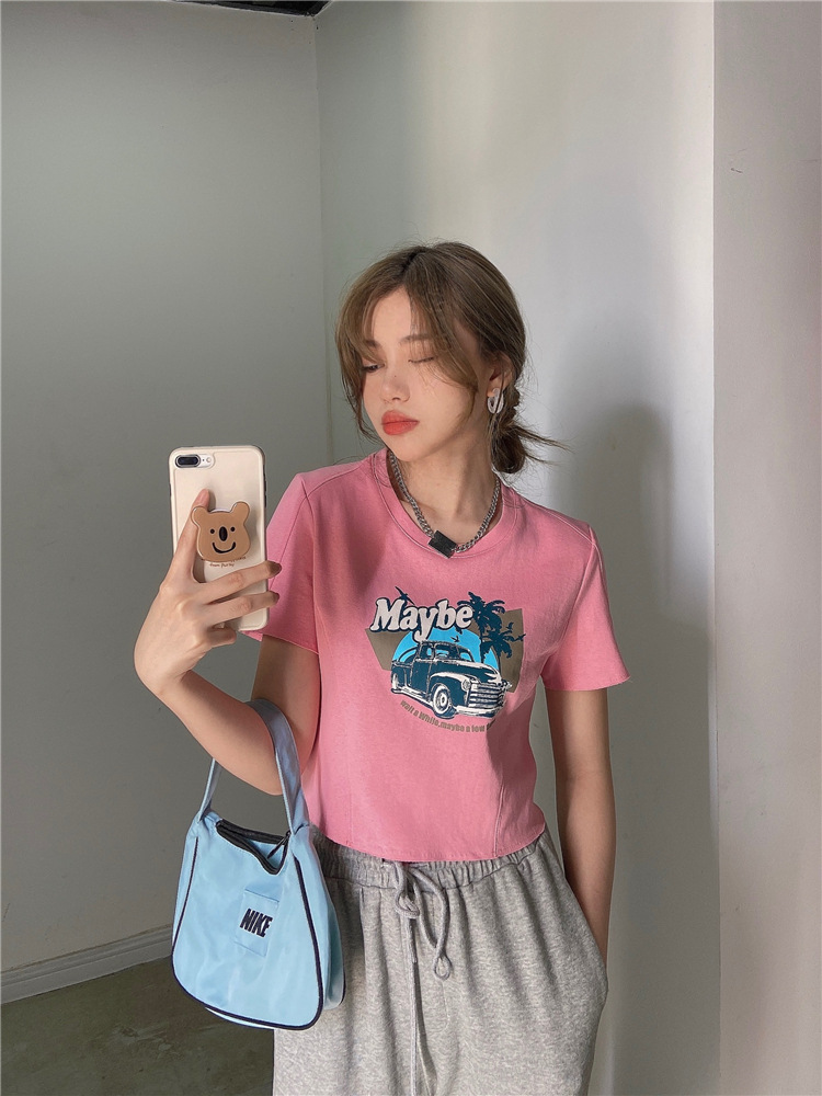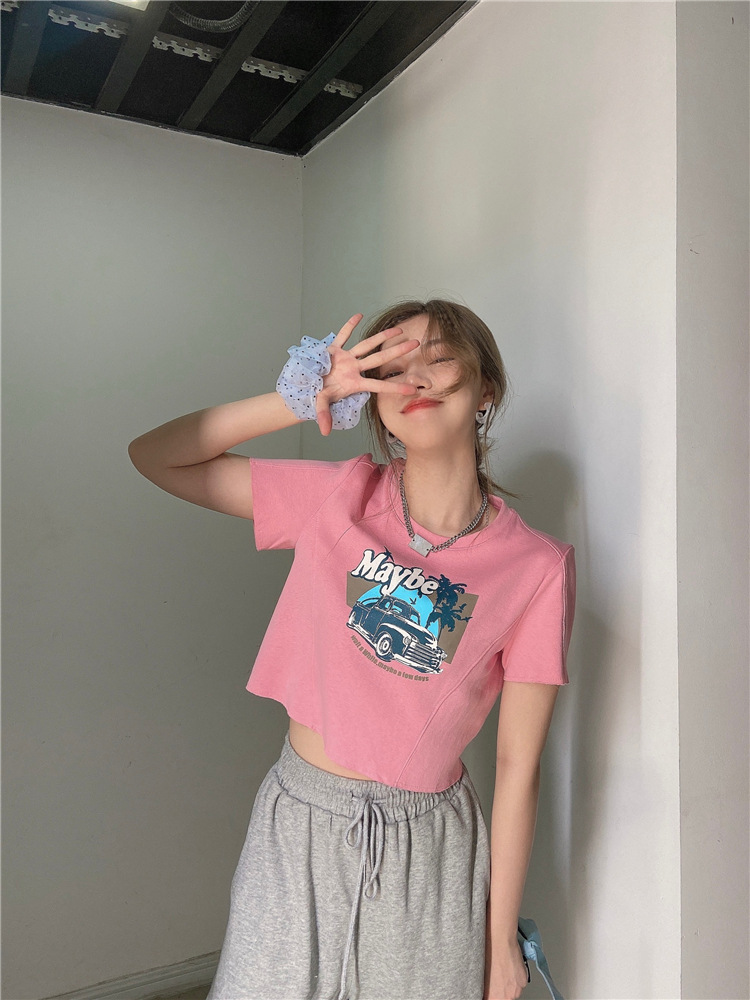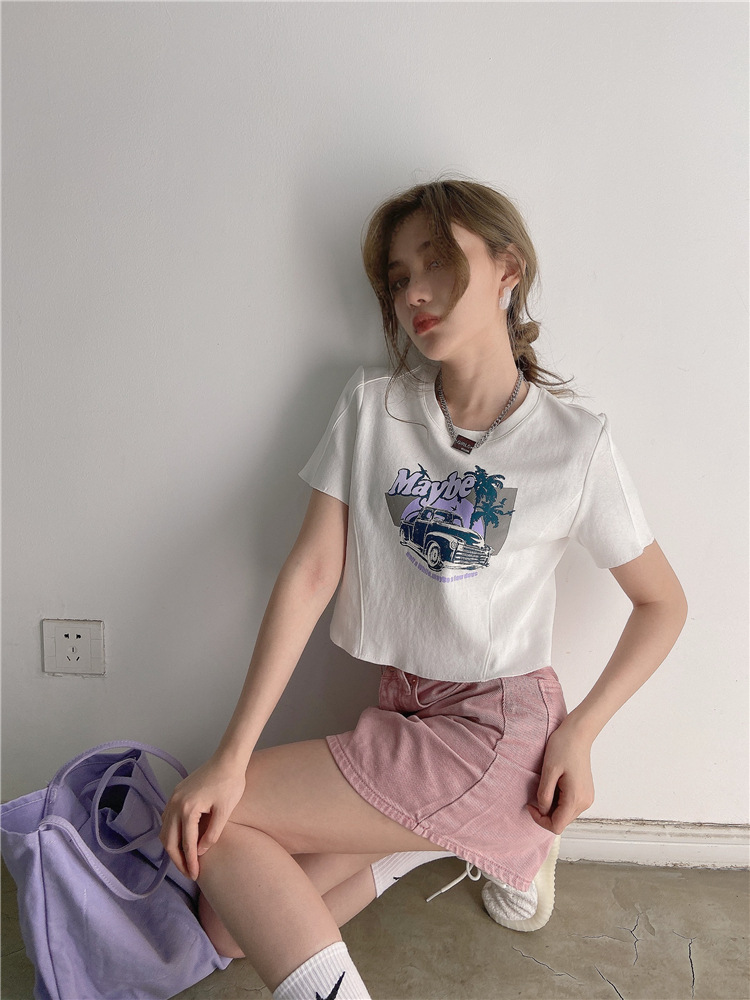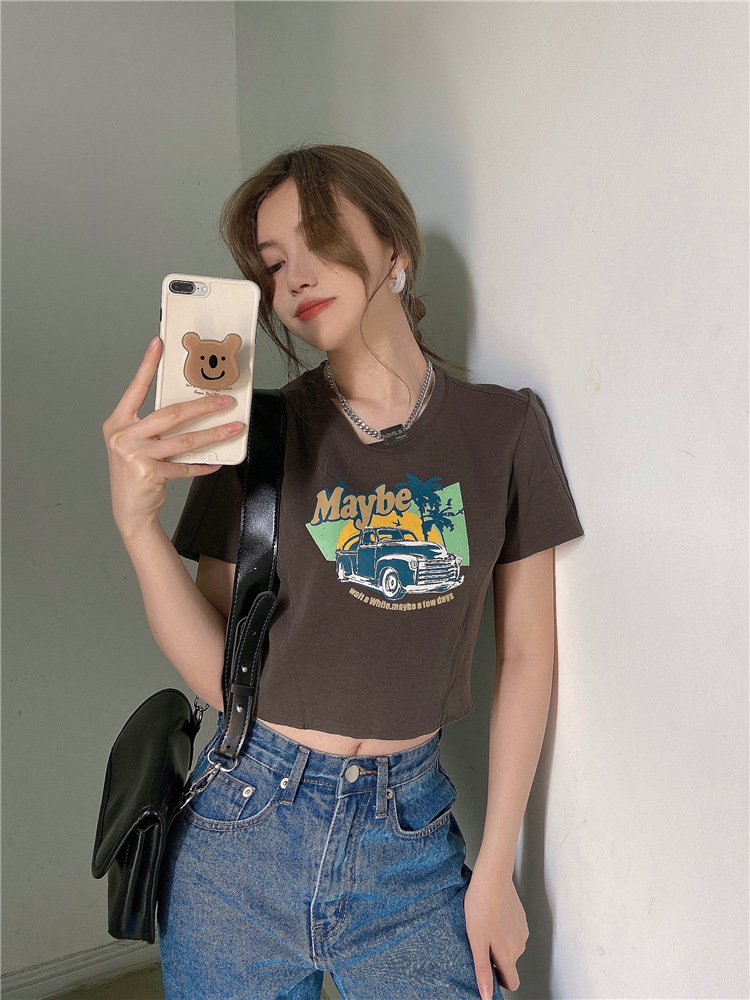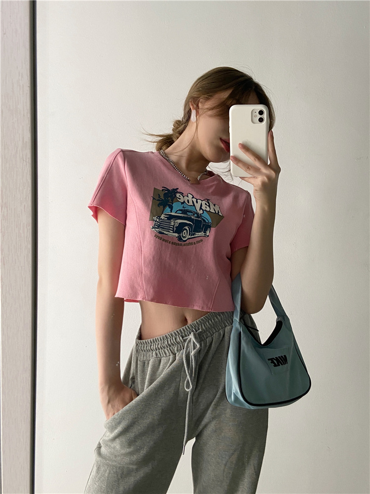 韩版ins印花T恤女夏季宽松短款露脐chic港味2025年新款短袖上衣潮