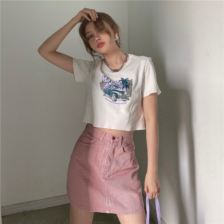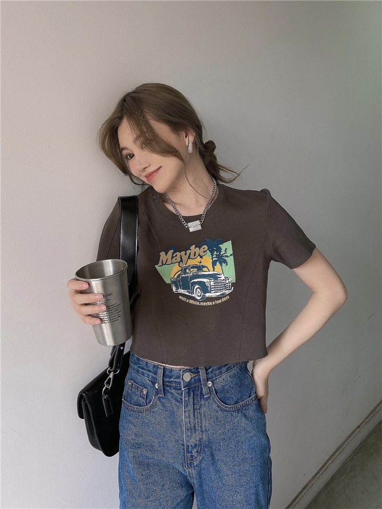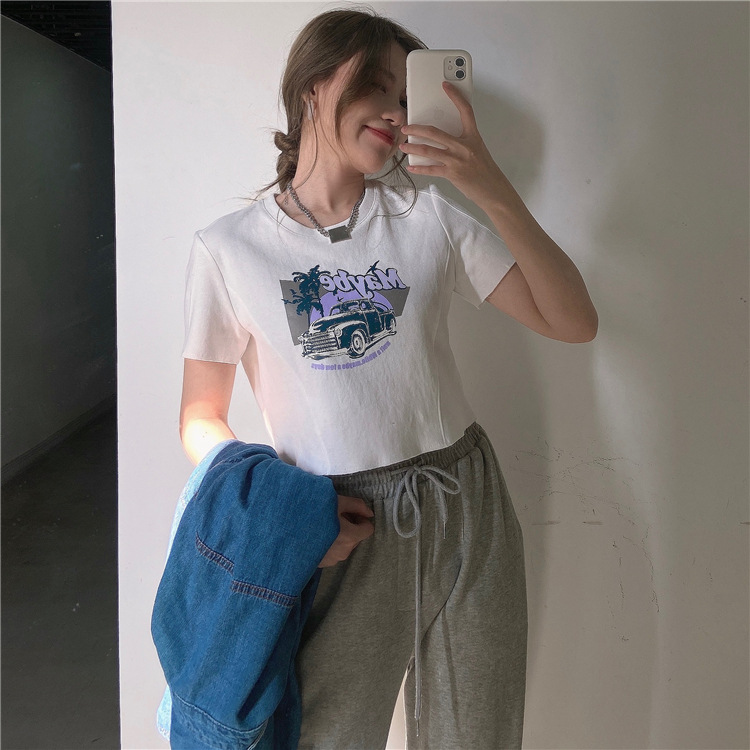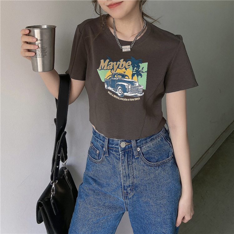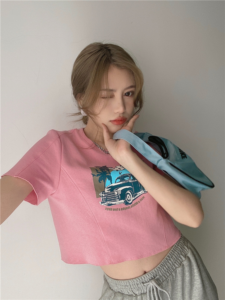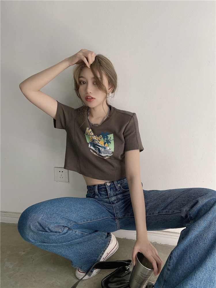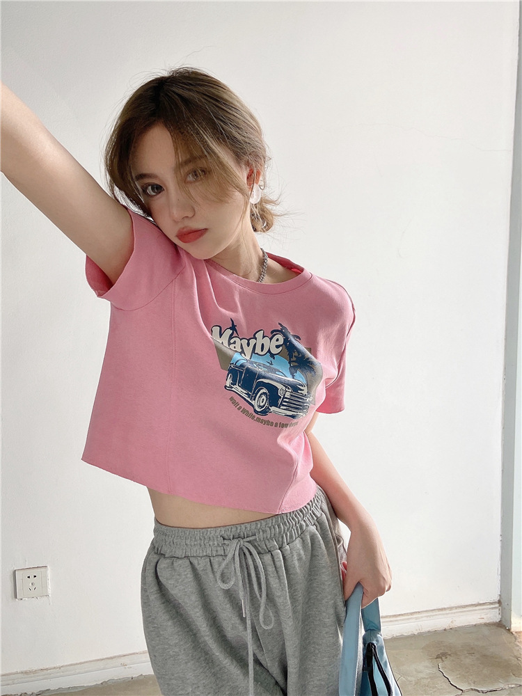 韩版ins印花T恤女夏季宽松短款露脐chic港味2025年新款短袖上衣潮